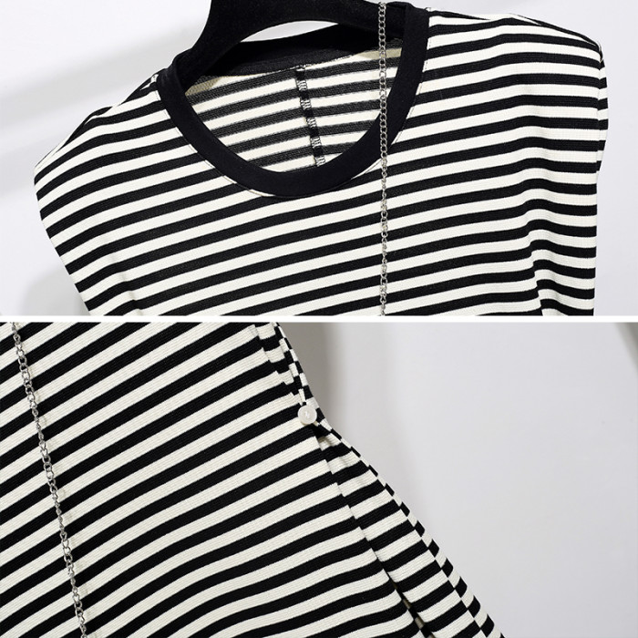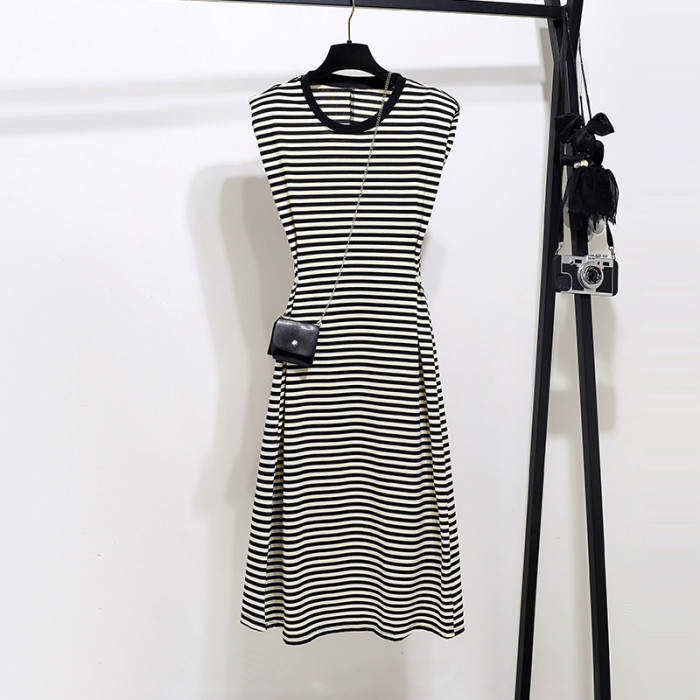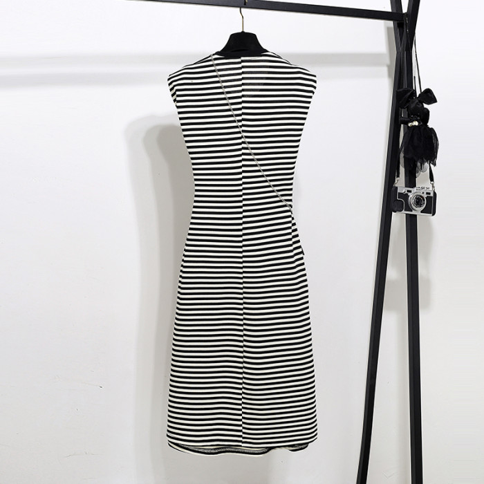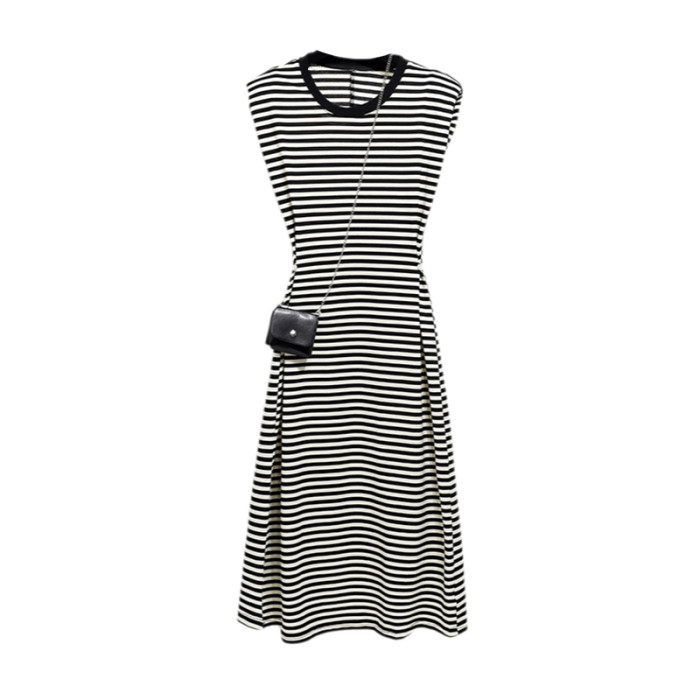 背心連衣裙女2025年新款夏季減齡黑白條紋無袖小個子收腰顯瘦裙子