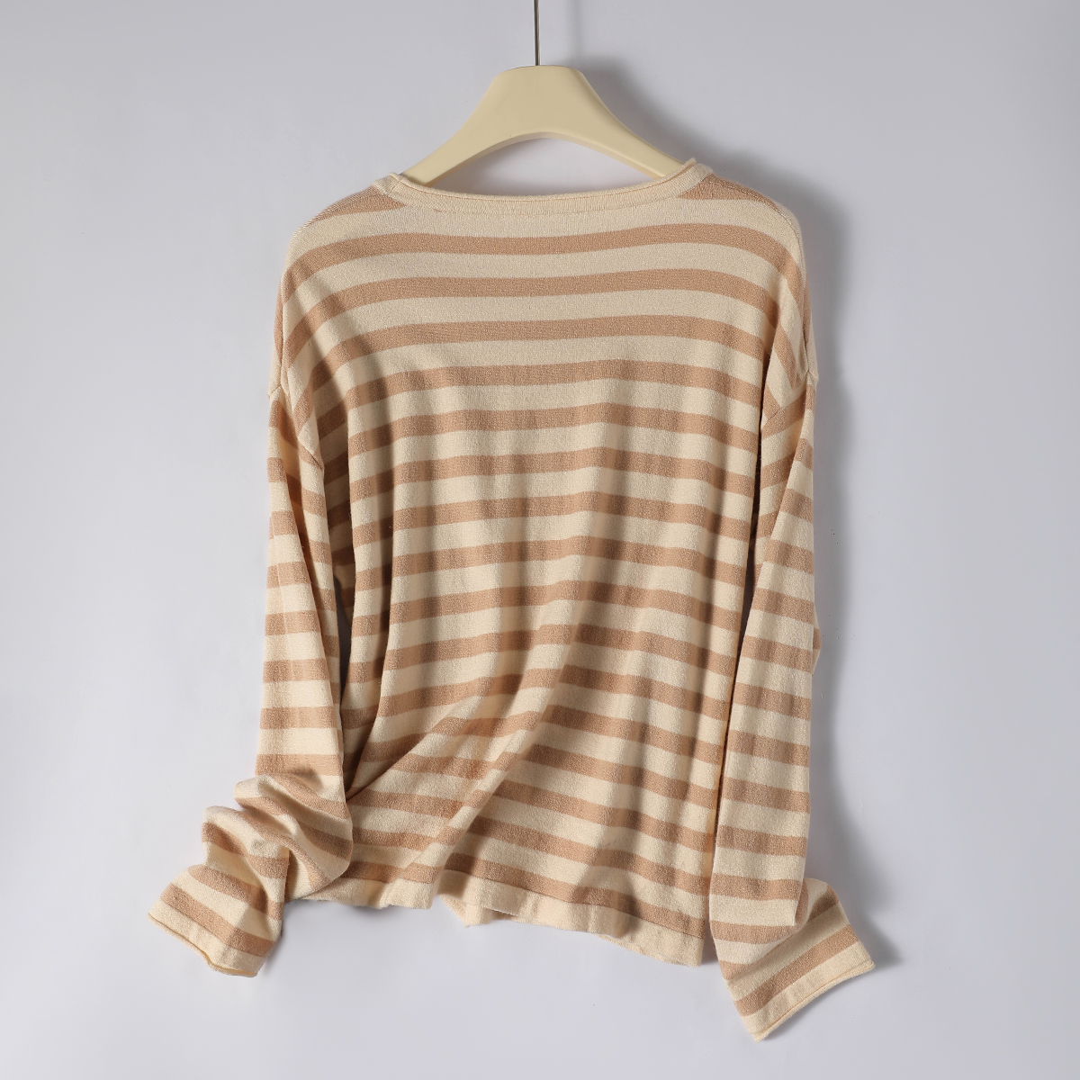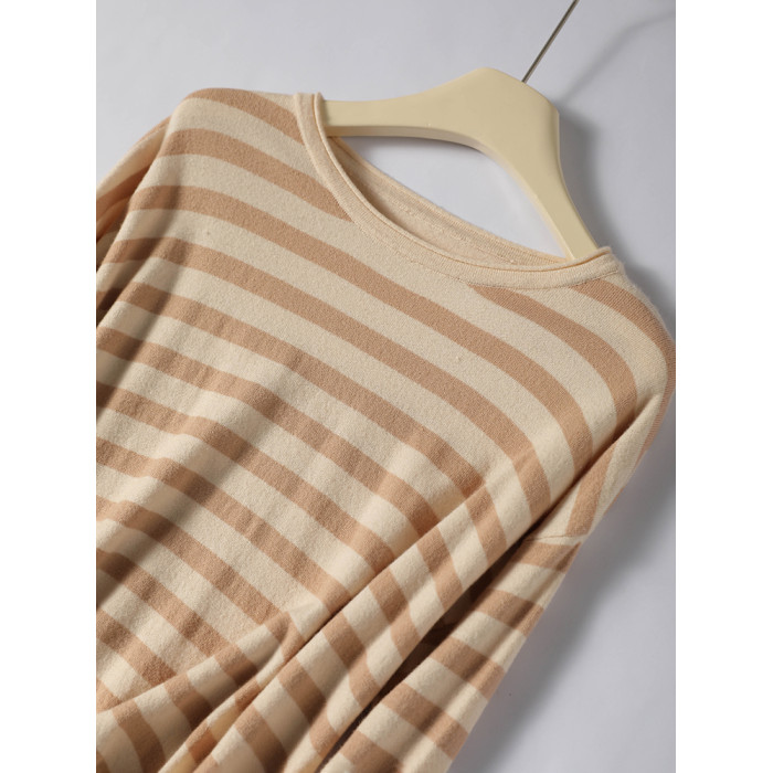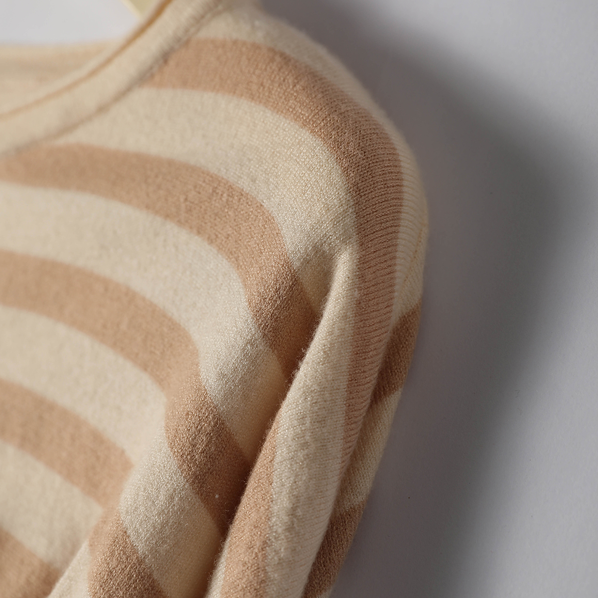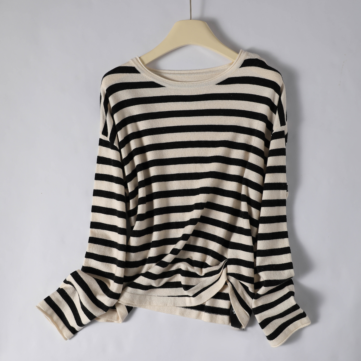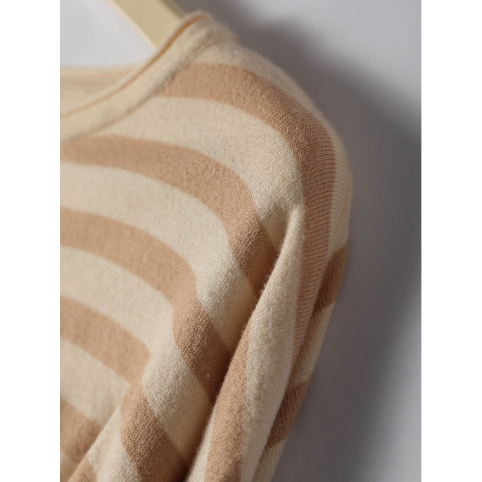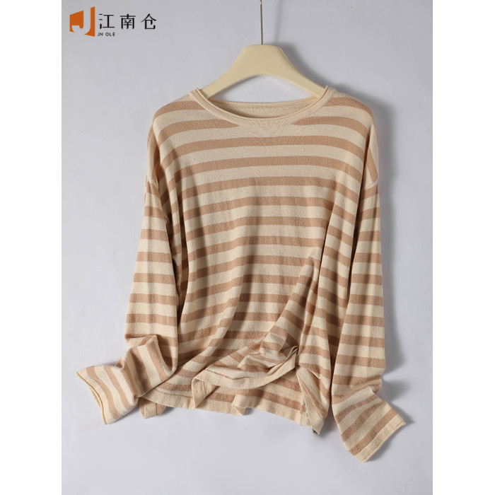 江南倉||品牌折釦經典條紋圓領針織衫女秋冬款長袖軟糯羊毛打底衫