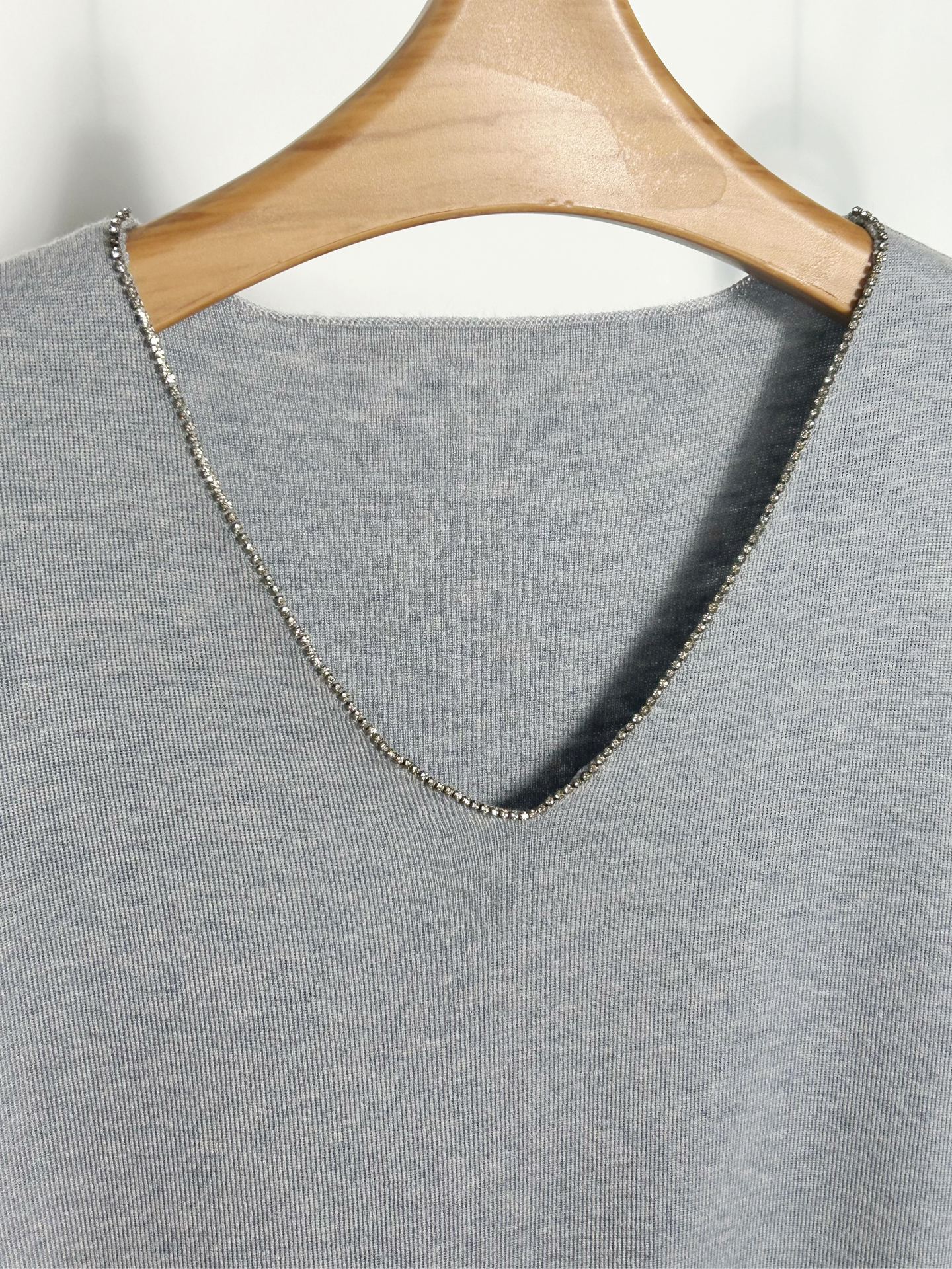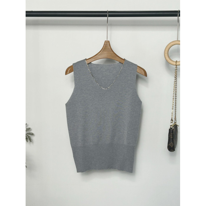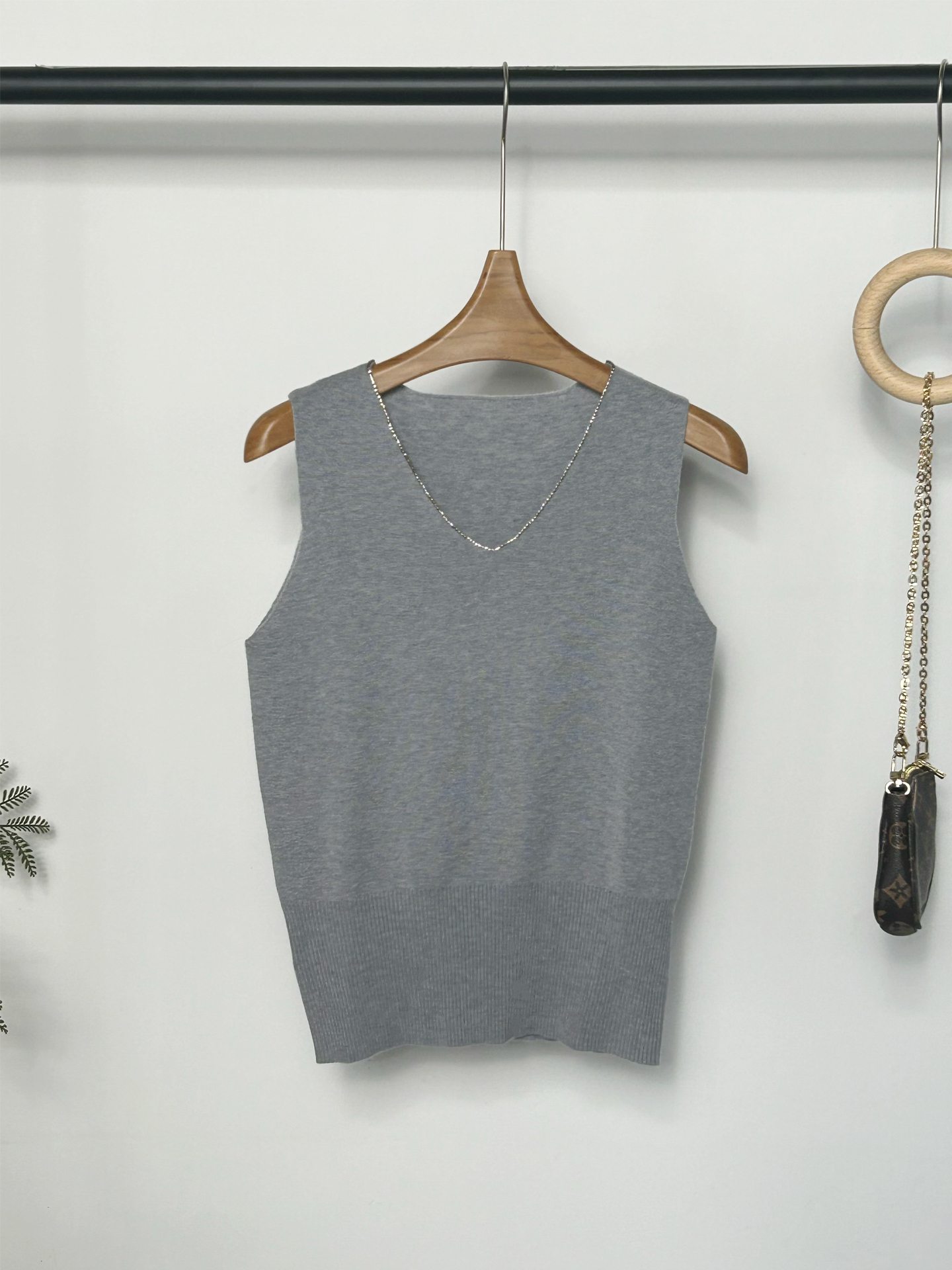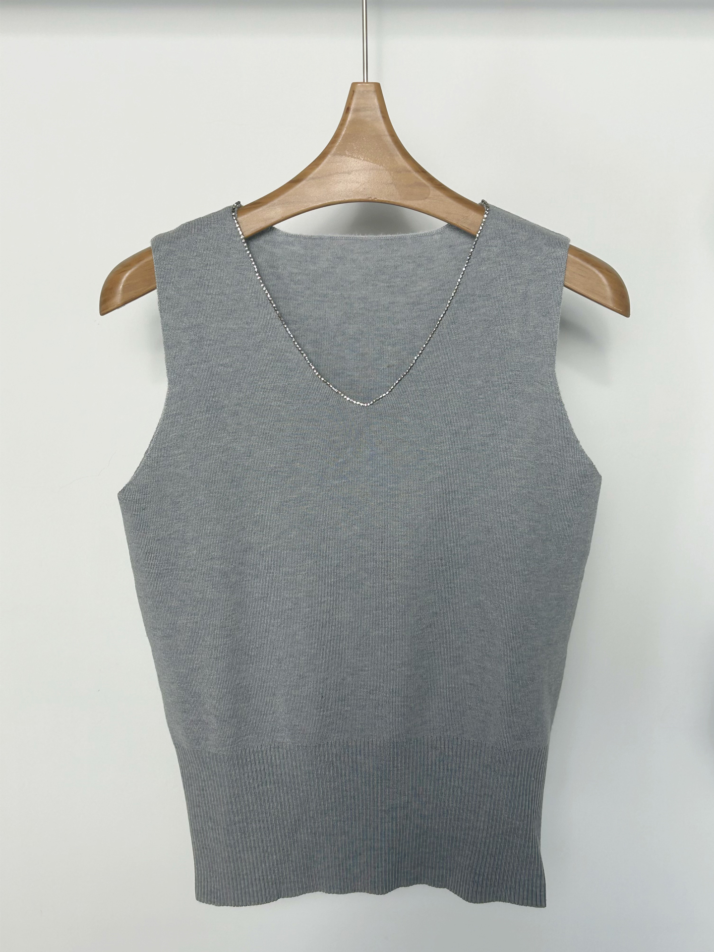 羊毛針織背心女2025早秋新款套頭V領高級感鑽飾內搭打底衫上衣