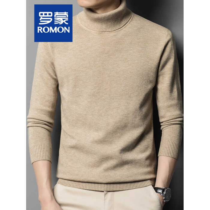 羅矇毛線衣男士寬松修身半高領長袖打底衫針織衫休閒潮流百搭