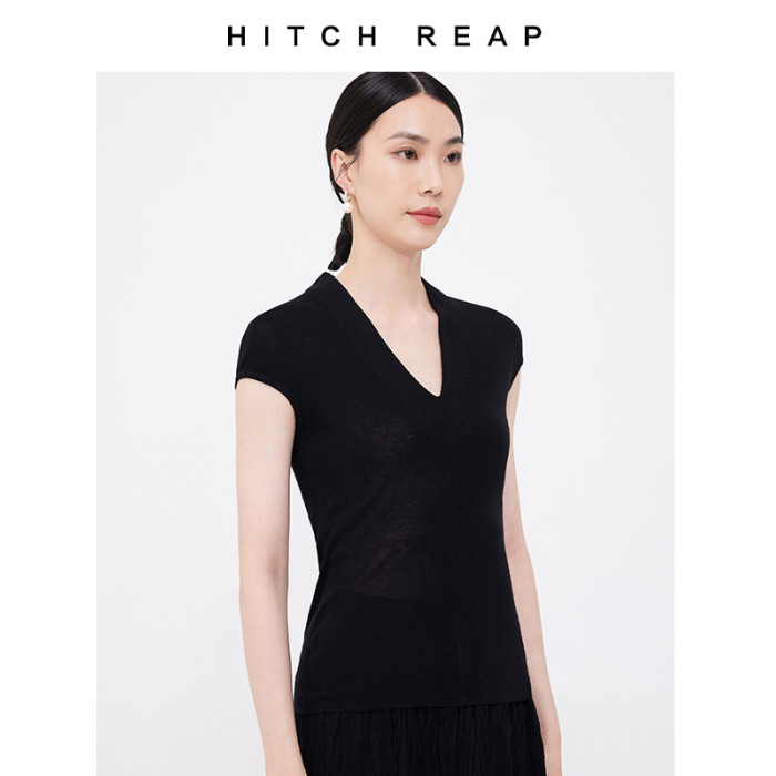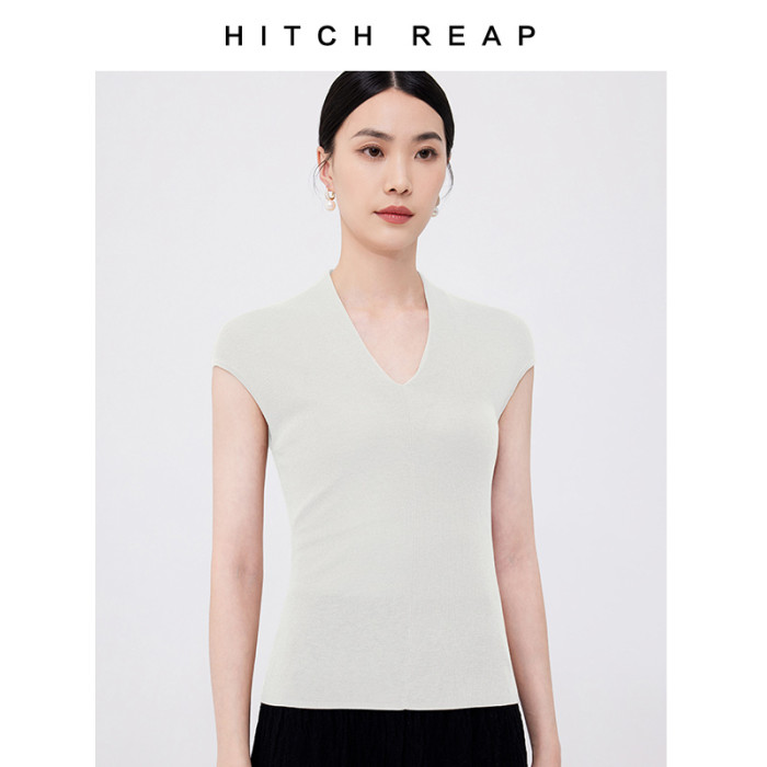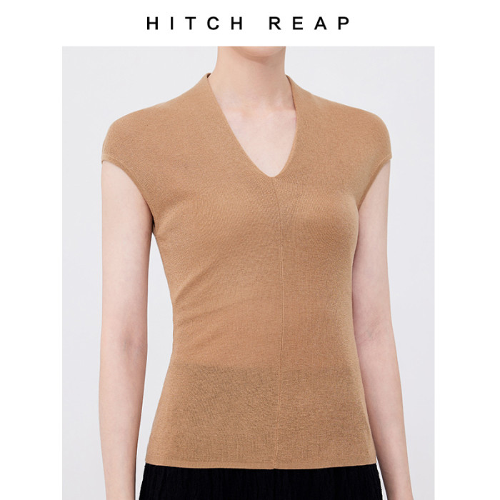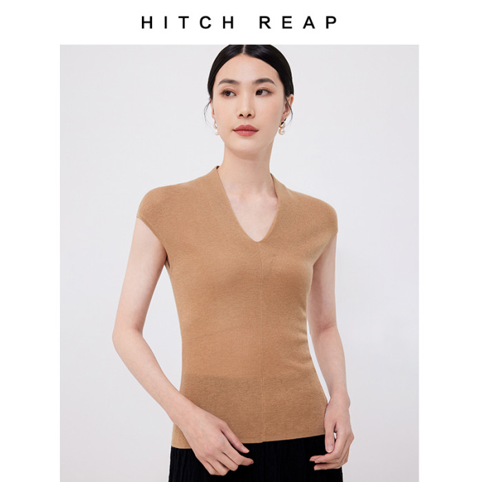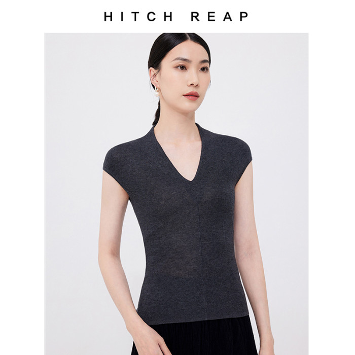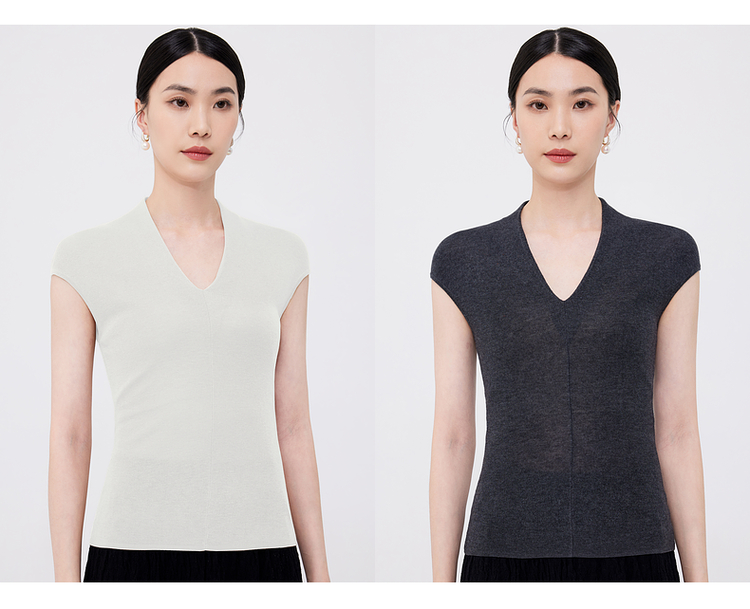 【希區瑞普特賣】美麗諾細羊毛百搭針織衫V領無袖短袖毛衣打底衫