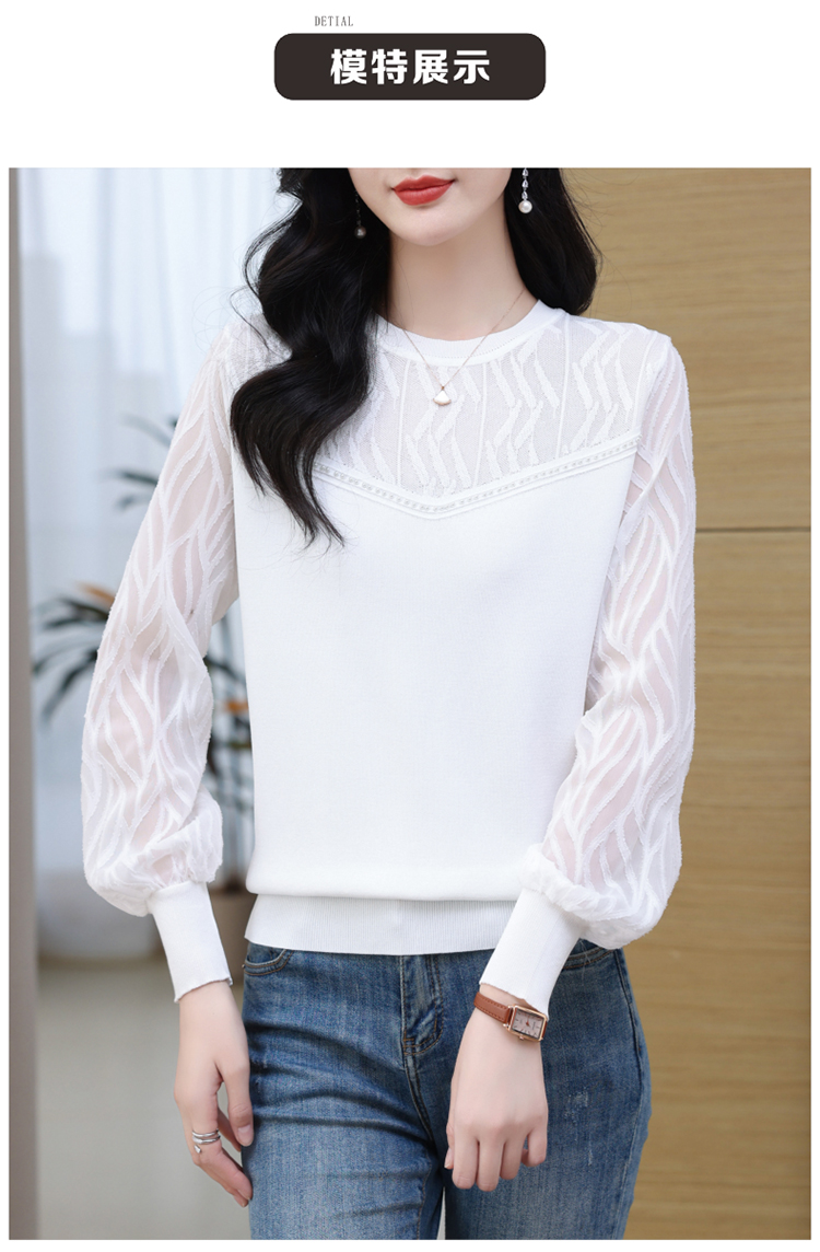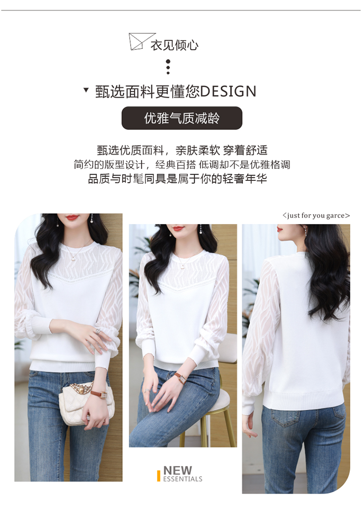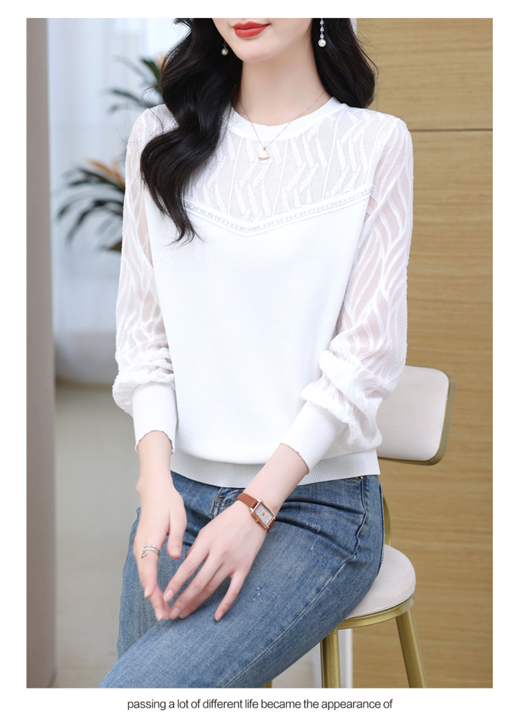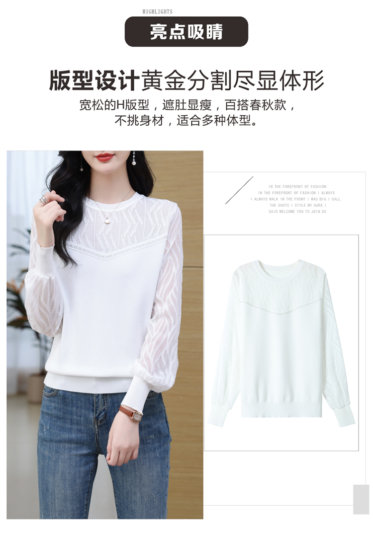 冰絲針織衫女長袖上衣2025新款薄款蕾絲紗紗袖桑蠶絲打底衫春秋季