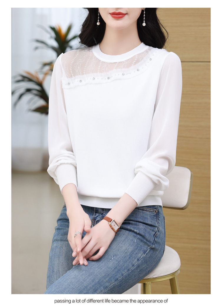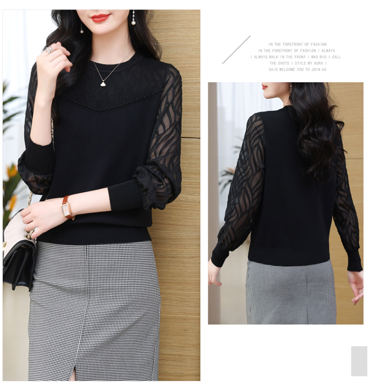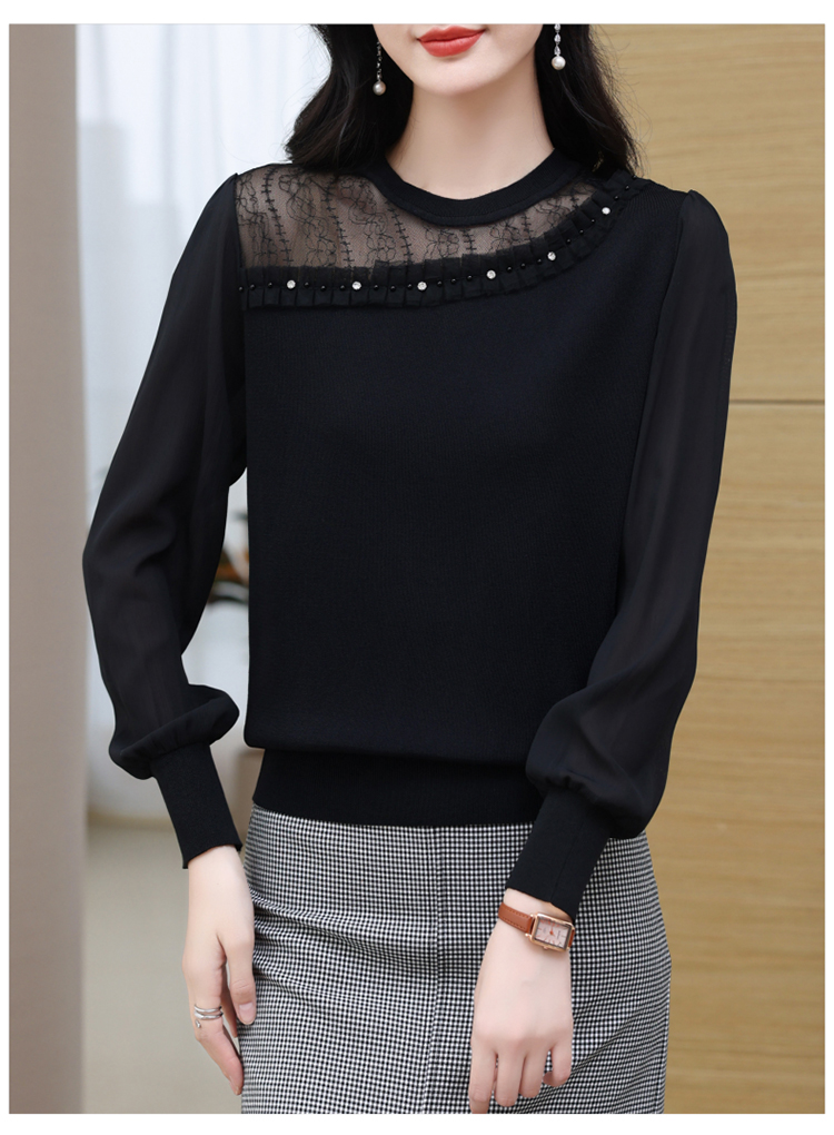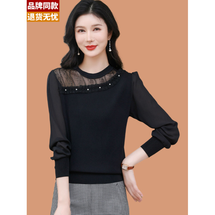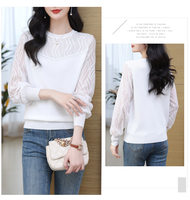 冰絲針織衫女長袖上衣2025新款薄款蕾絲紗紗袖桑蠶絲打底衫春秋季