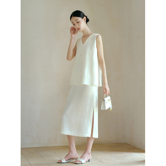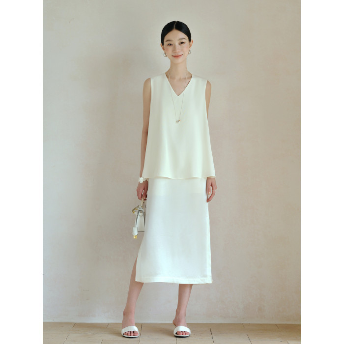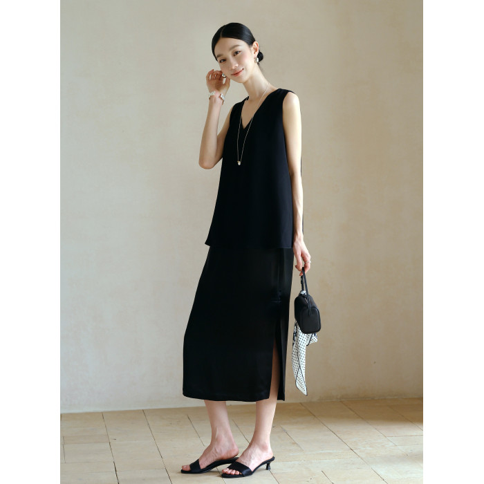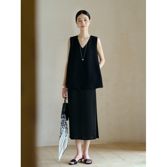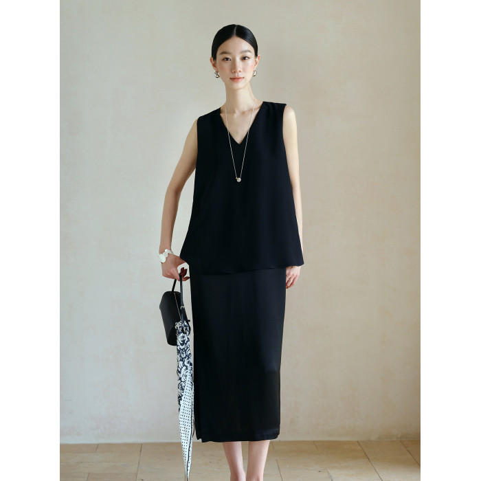 重磅醋酸+V領優雅高智通勤極簡無袖背心連衣裙
