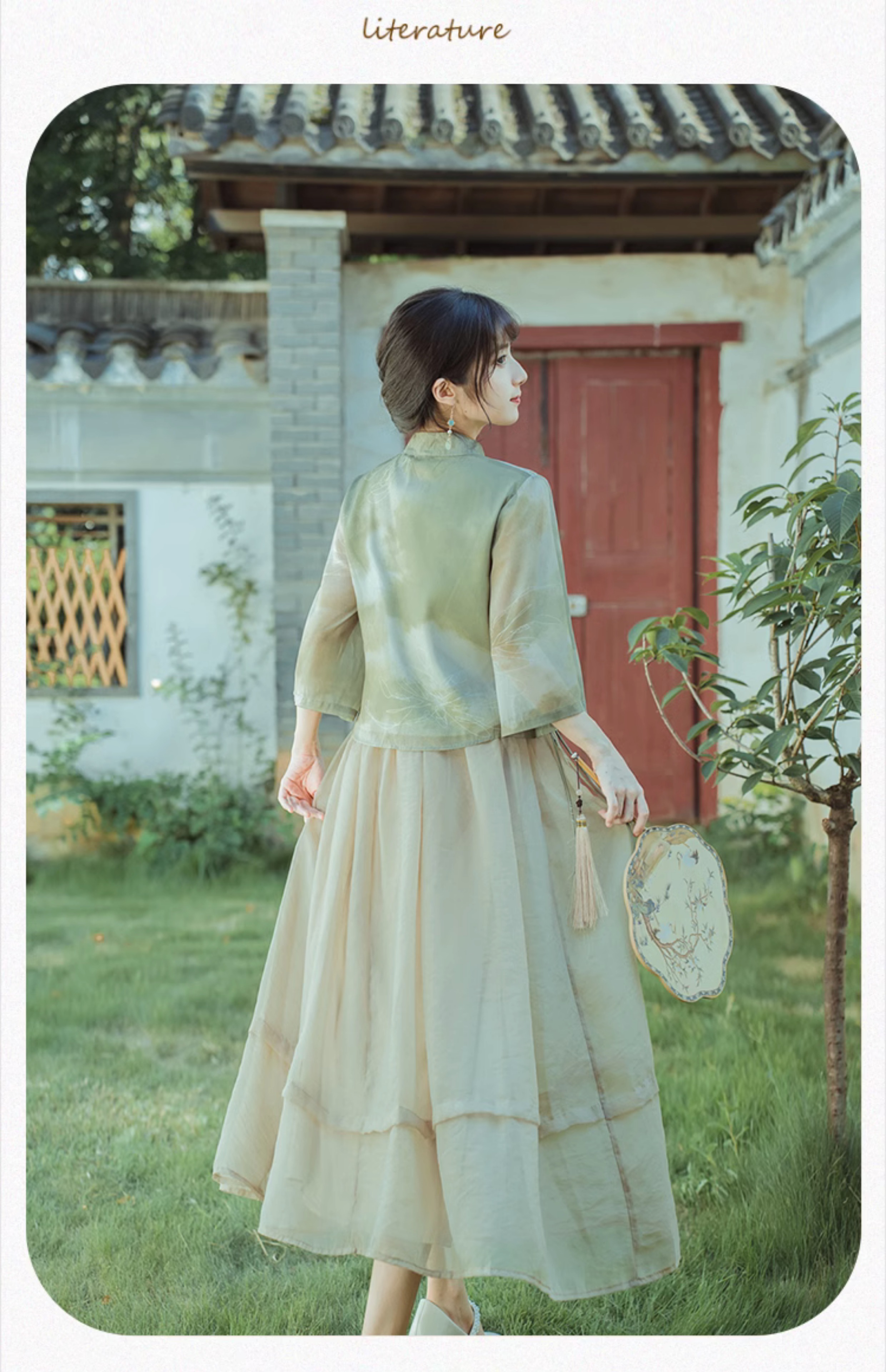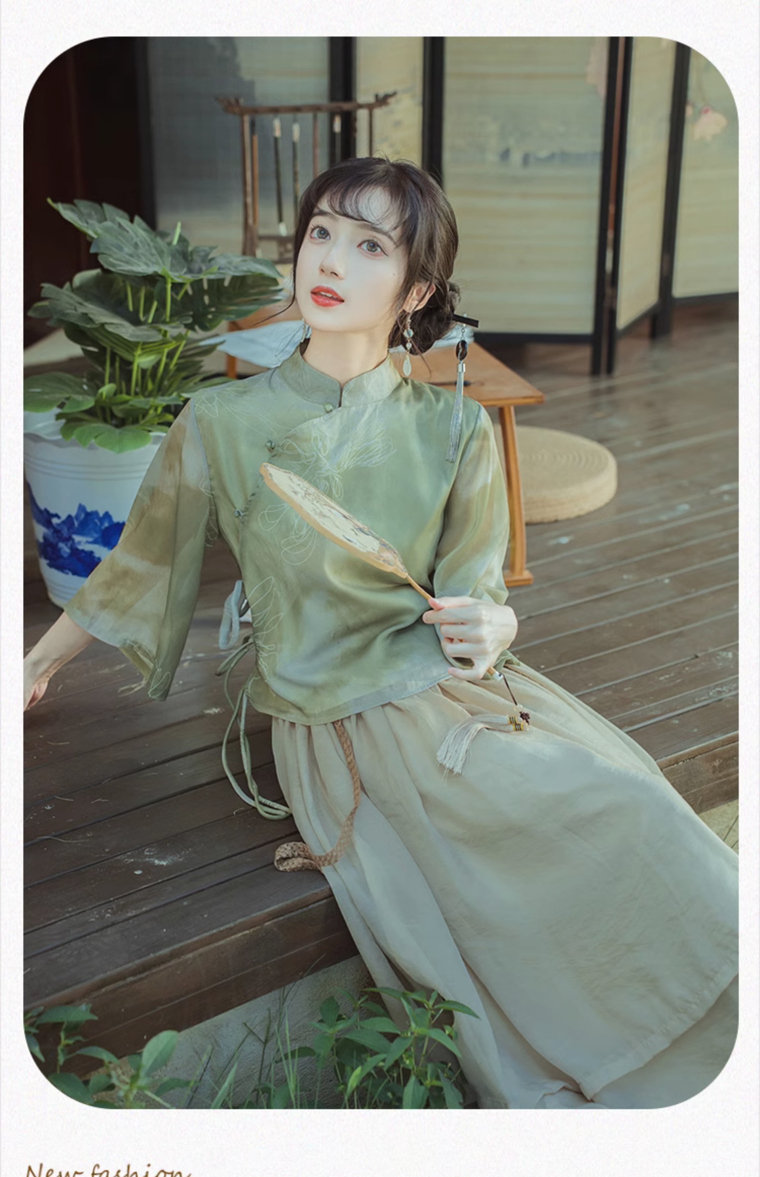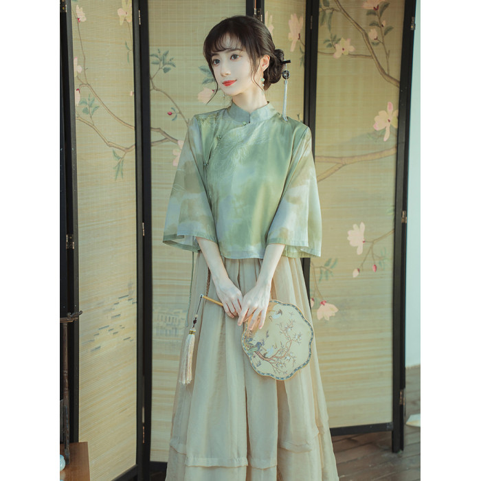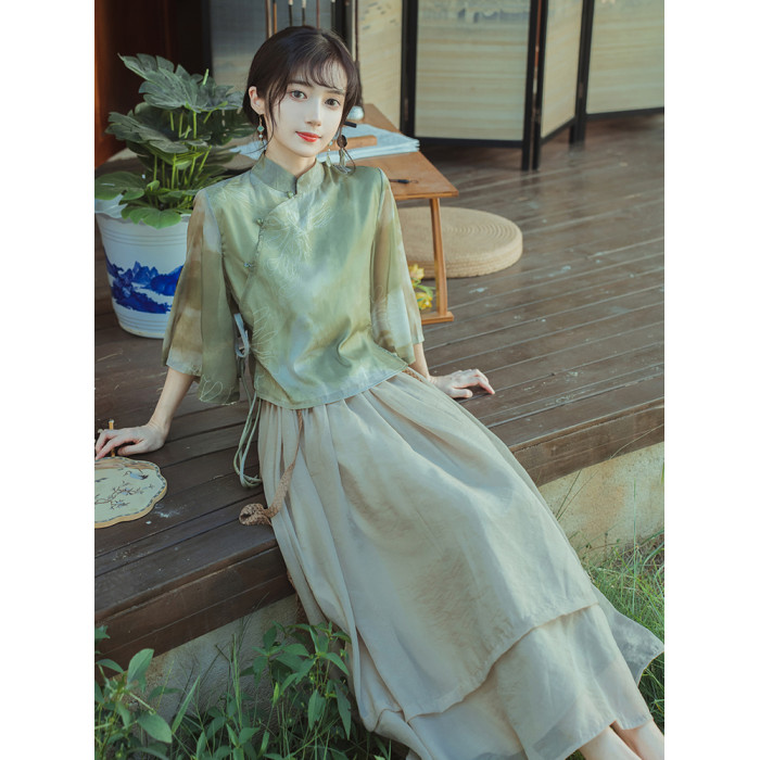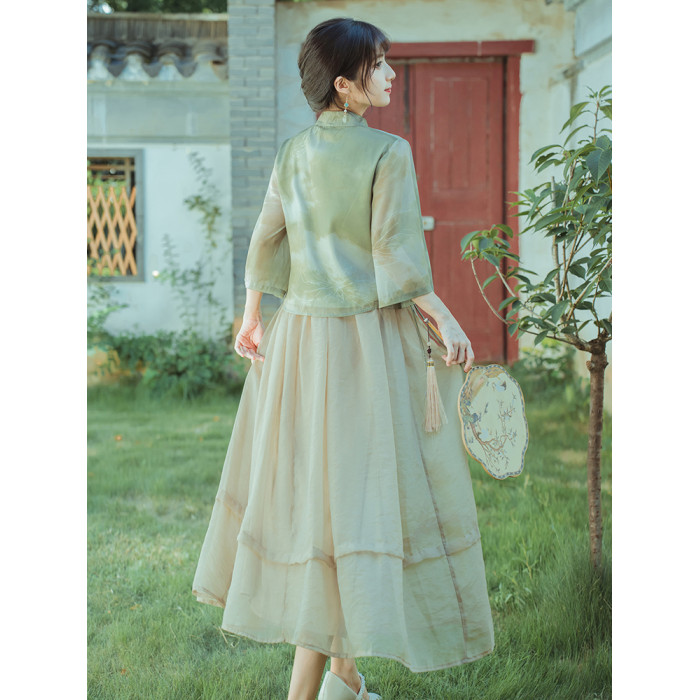 新中式禪意茶服旗袍兩件套日常改良漢服文藝國風顯瘦溫柔連衣裙夏