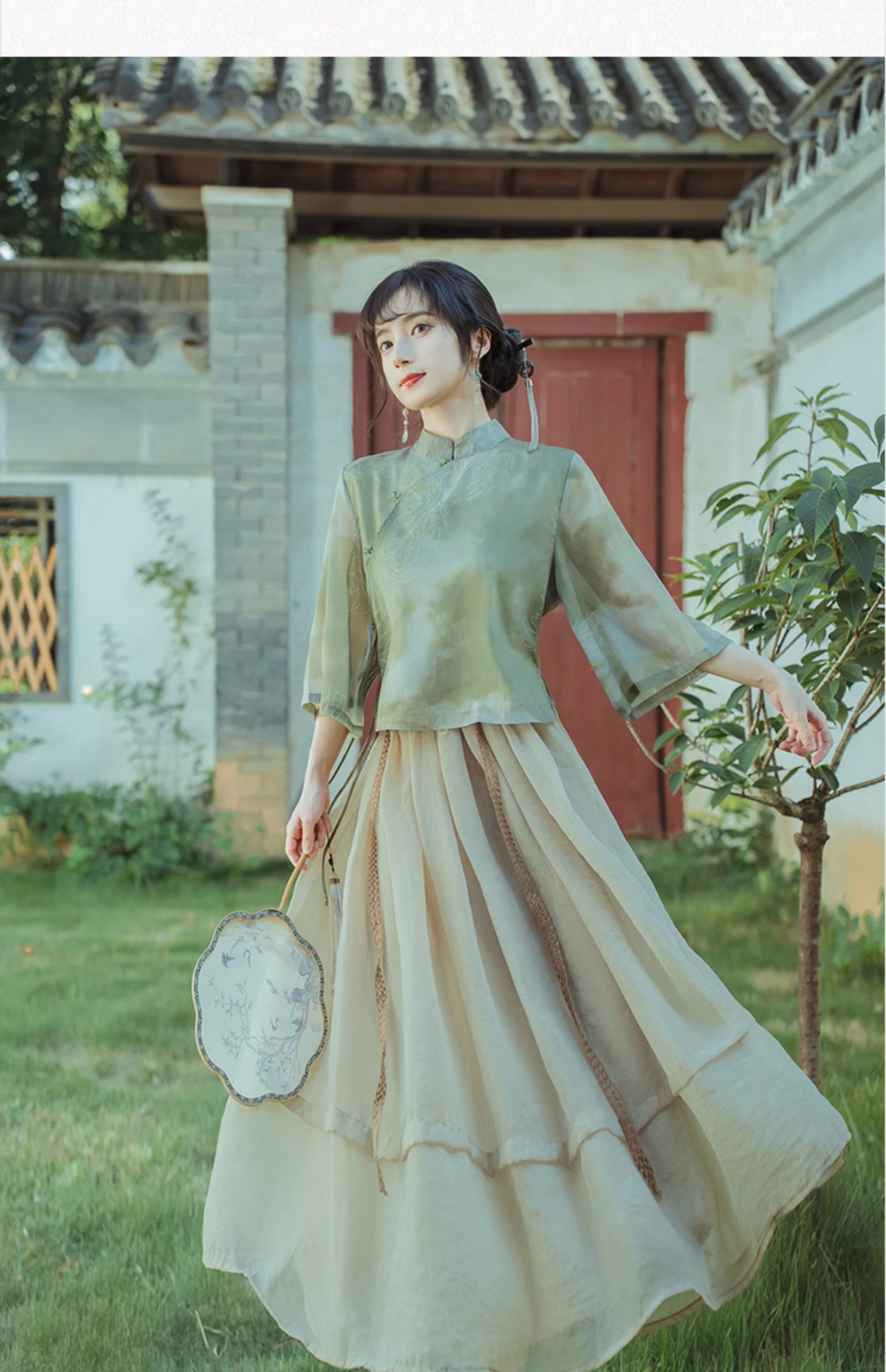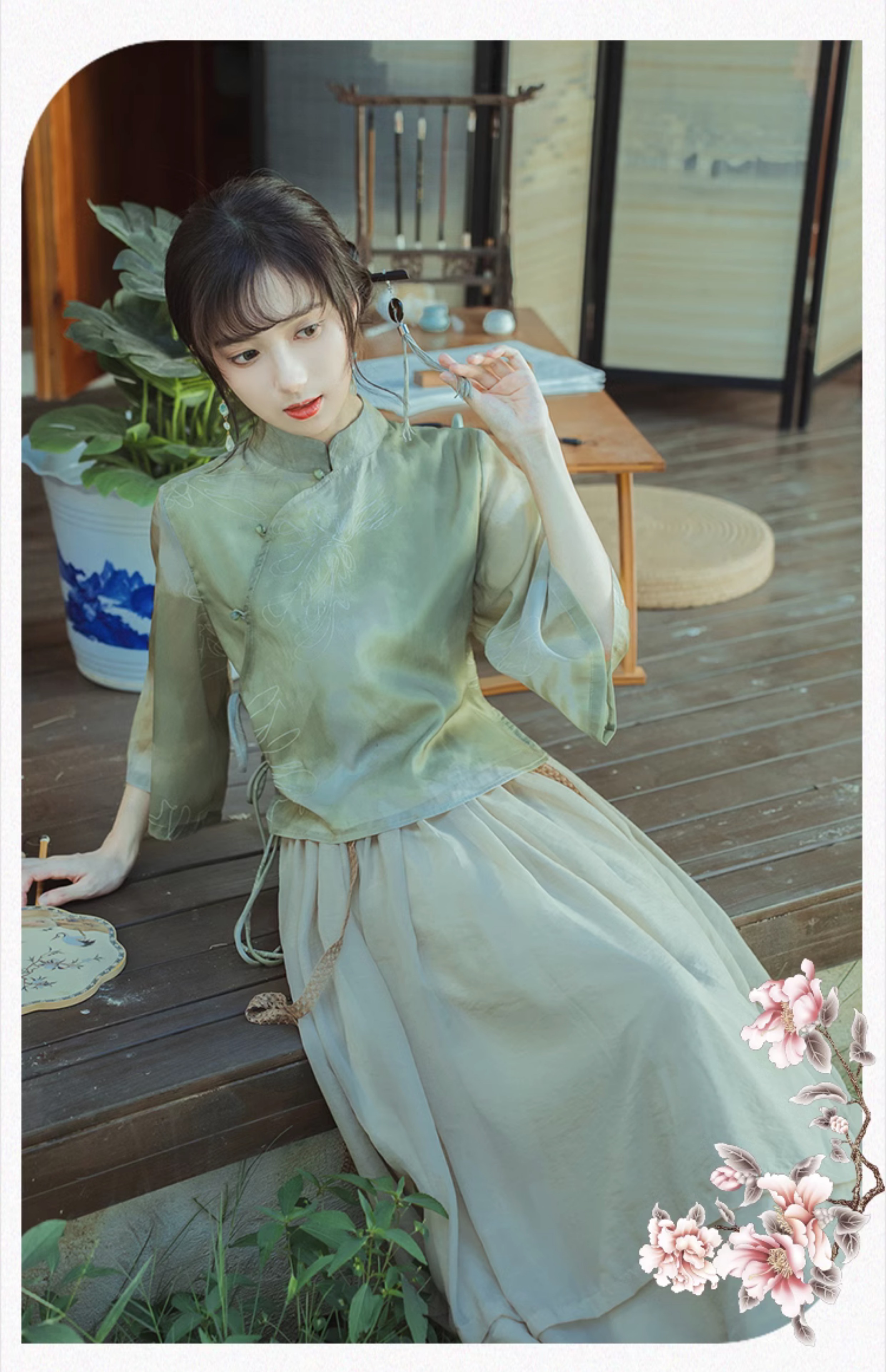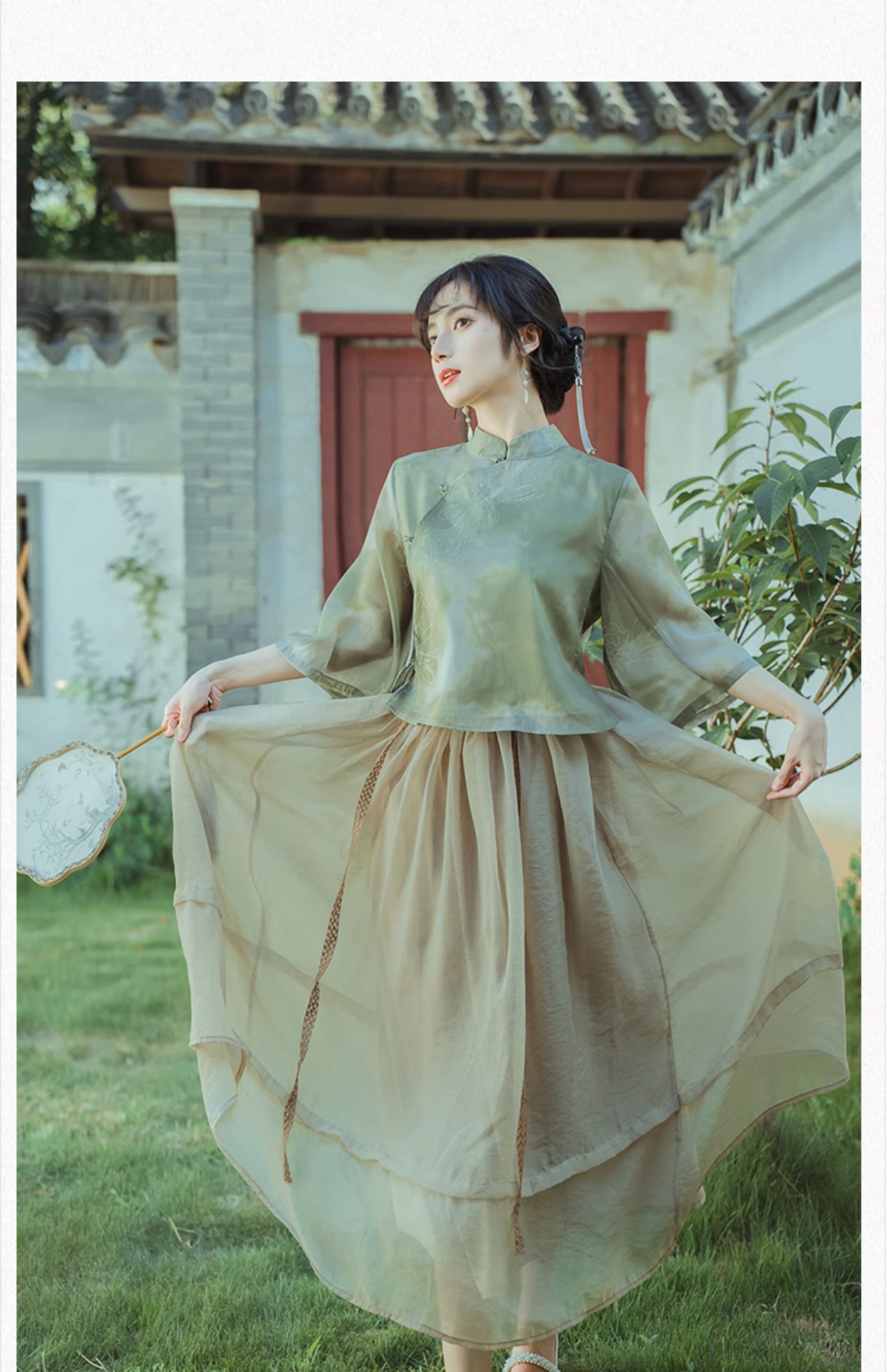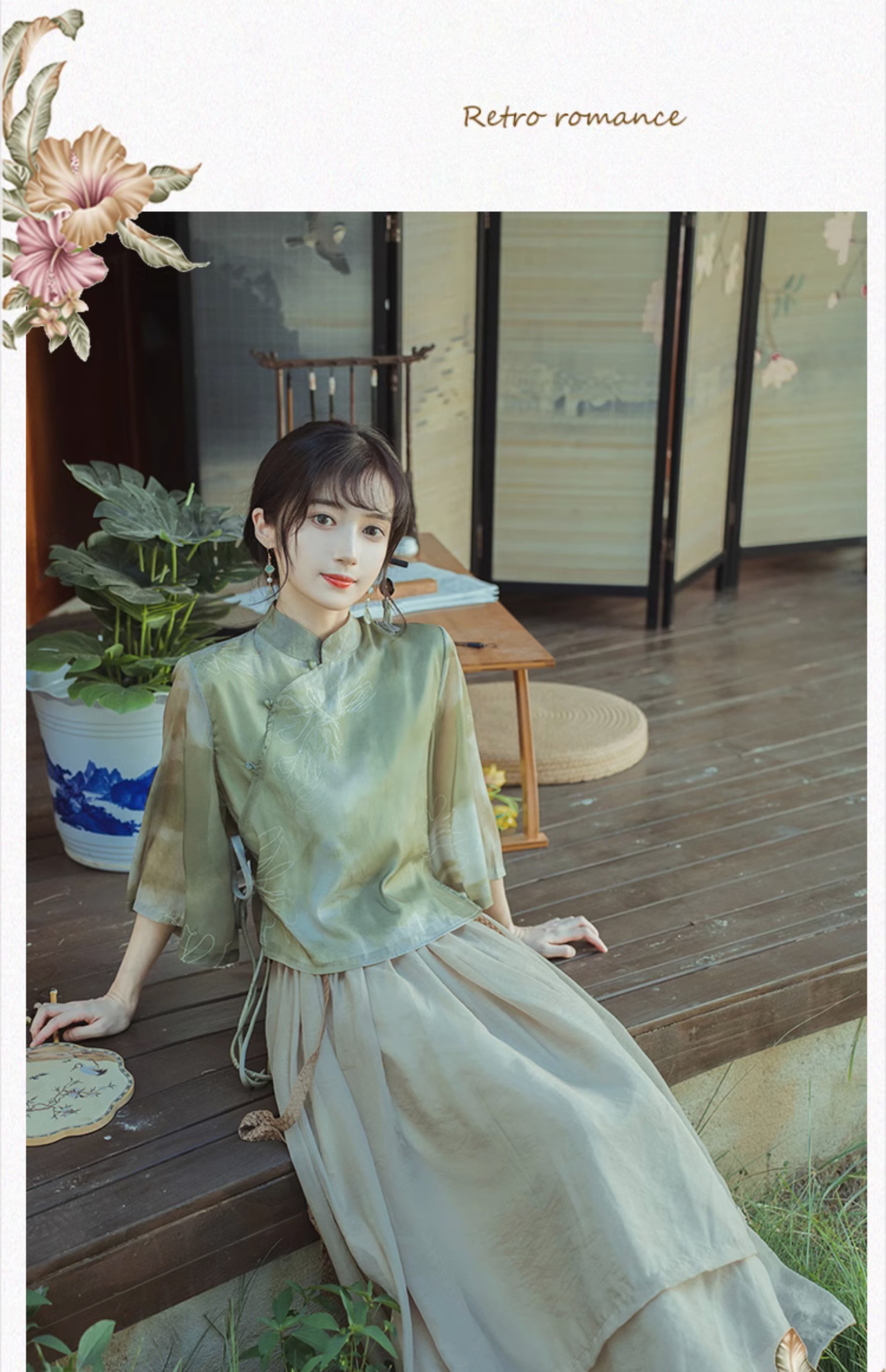 新中式禪意茶服旗袍兩件套日常改良漢服文藝國風顯瘦溫柔連衣裙夏