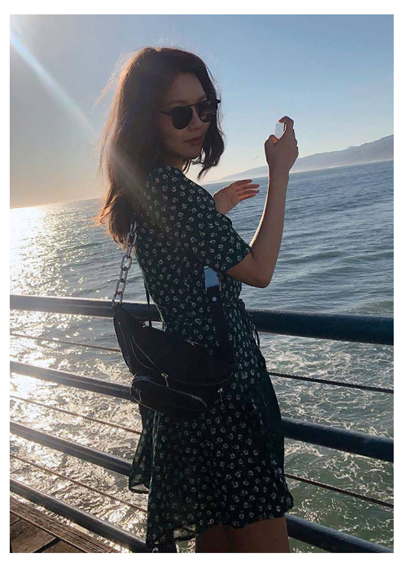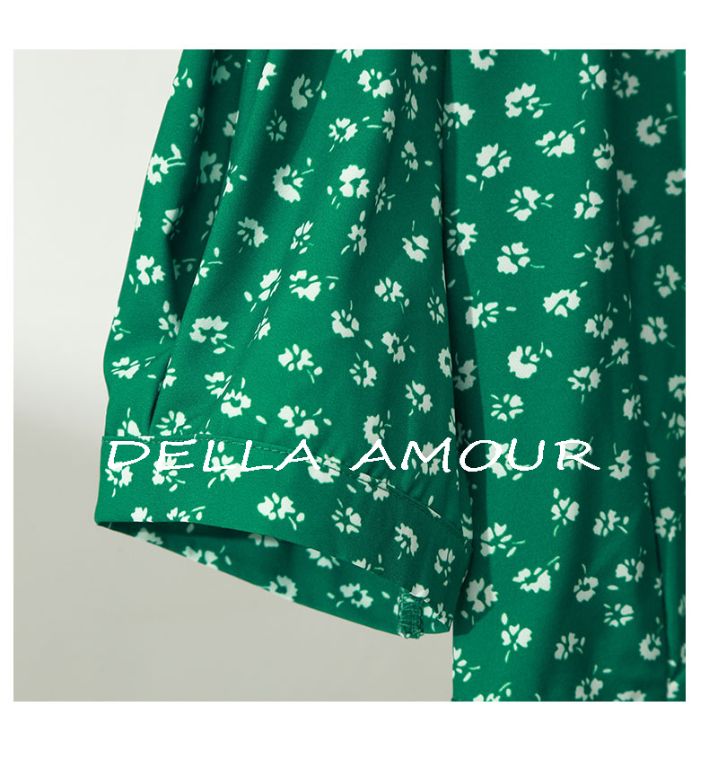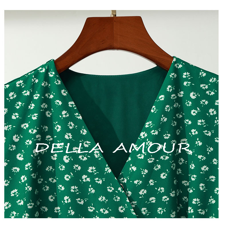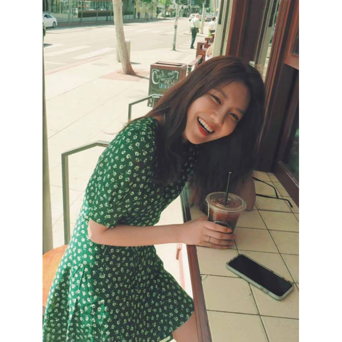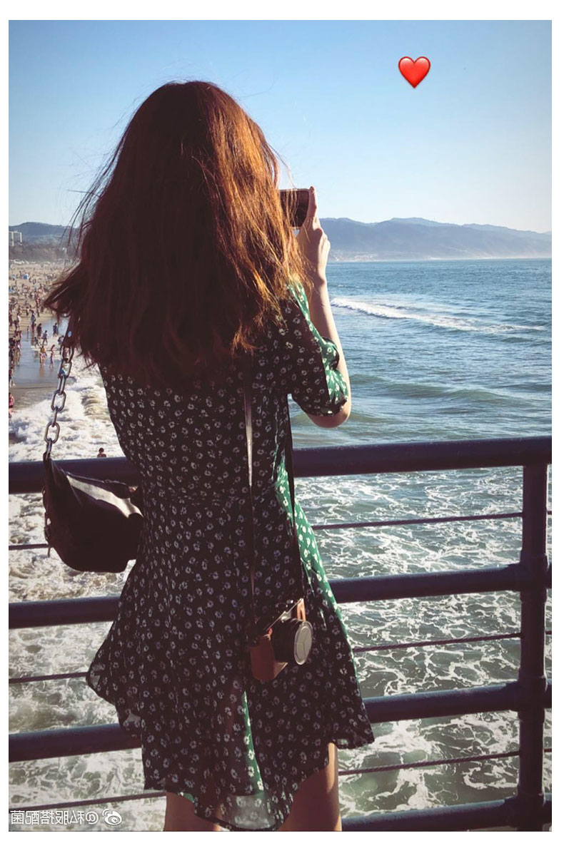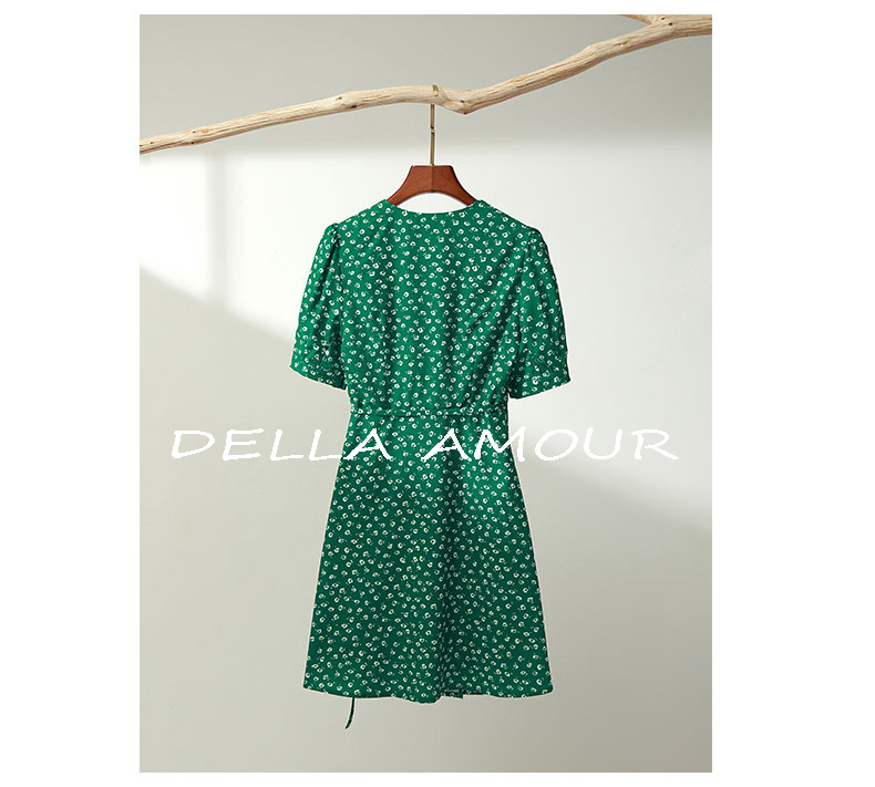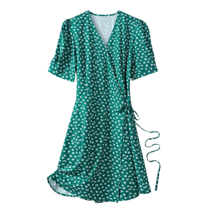 崔秀英同款綠色一片式法式碎花連衣裙V領茶歇桔梗海邊沙灘度假裙