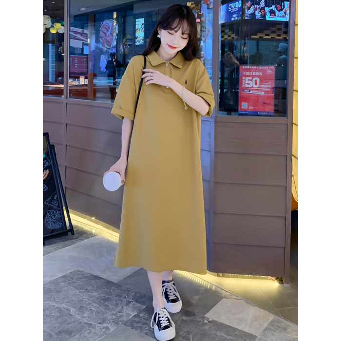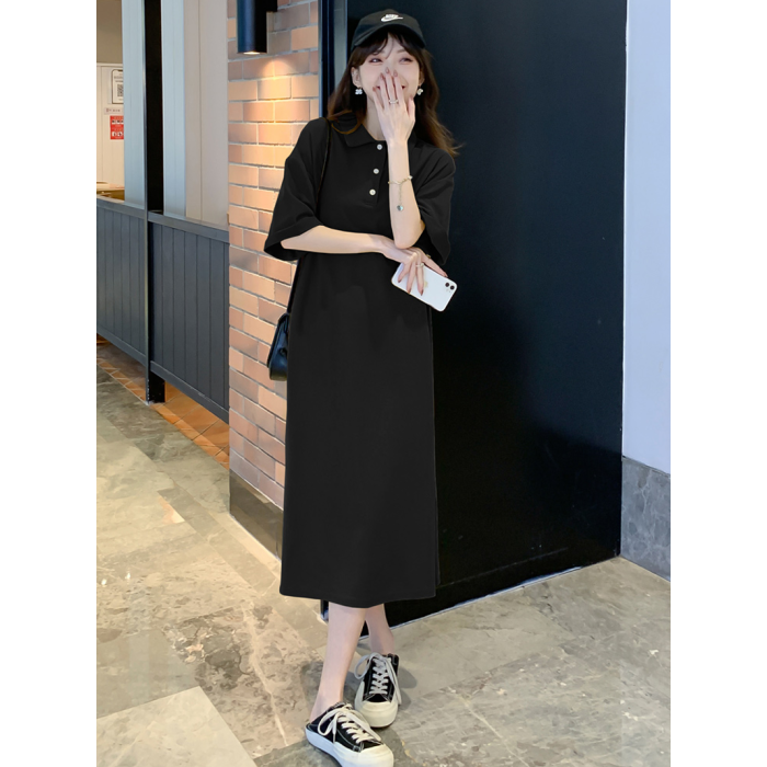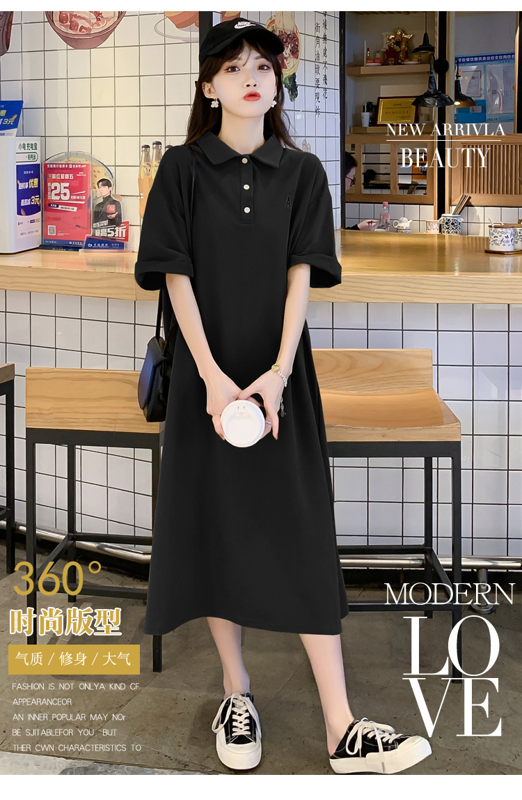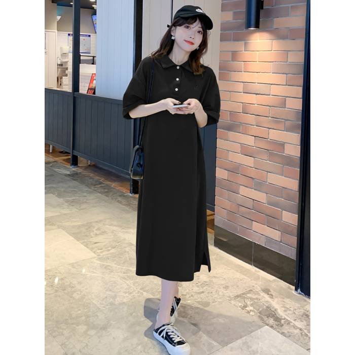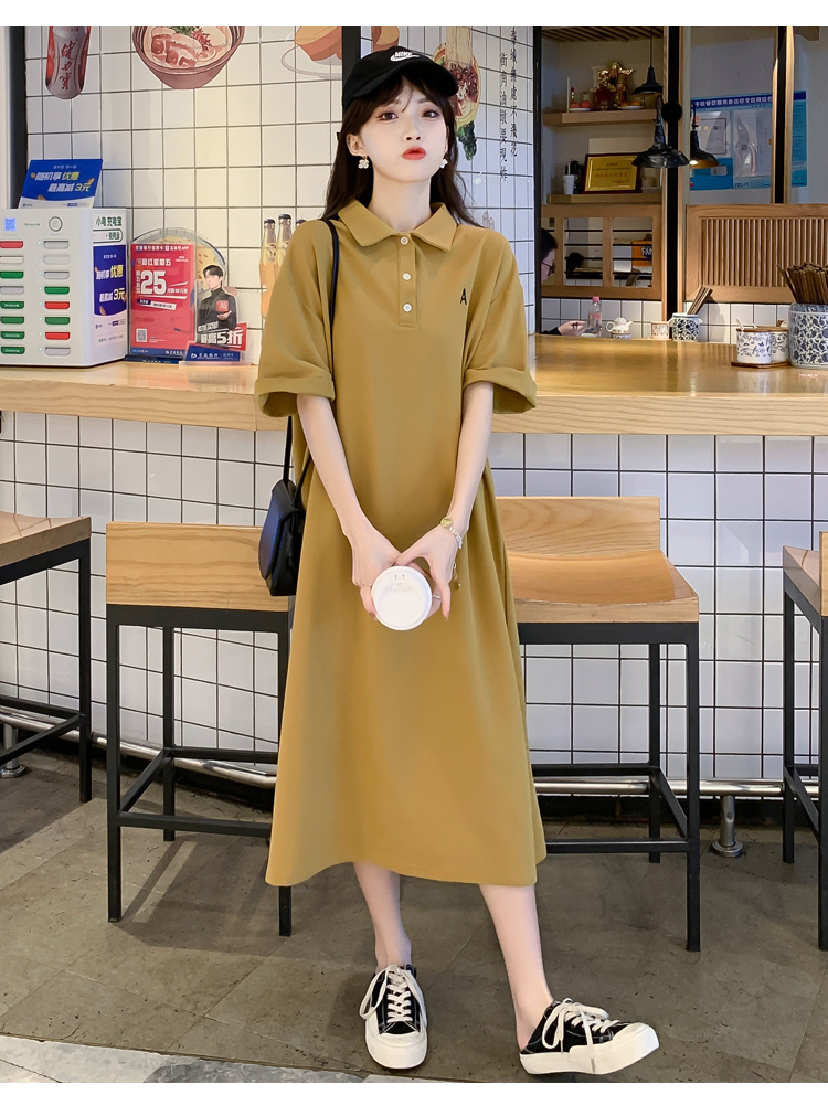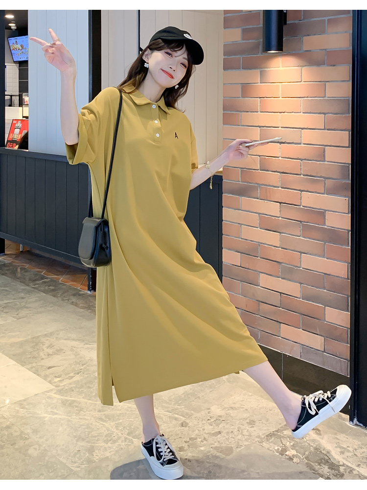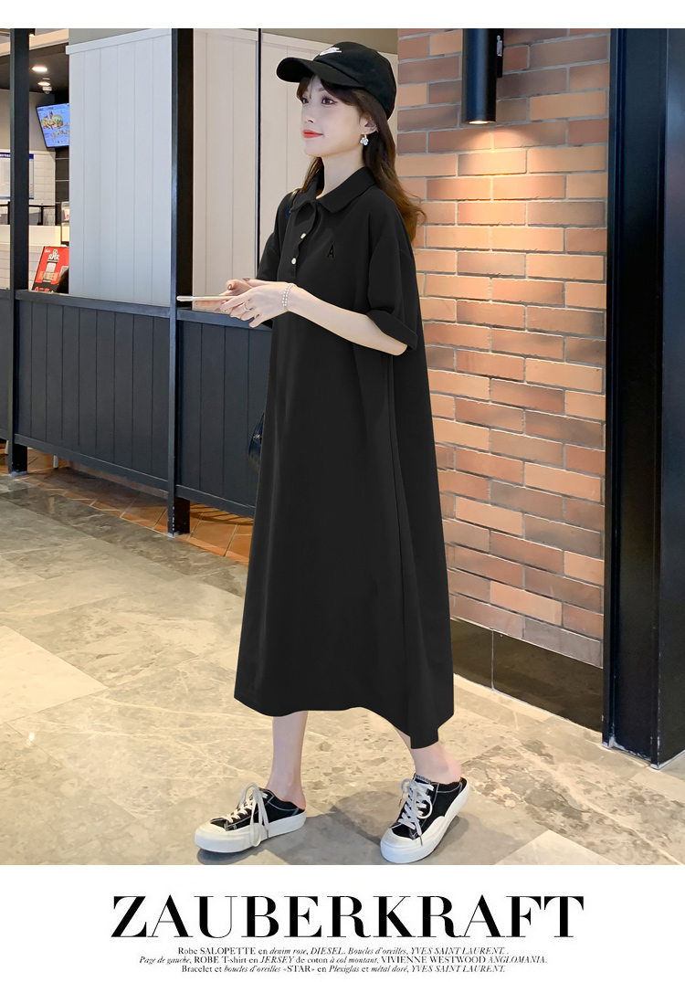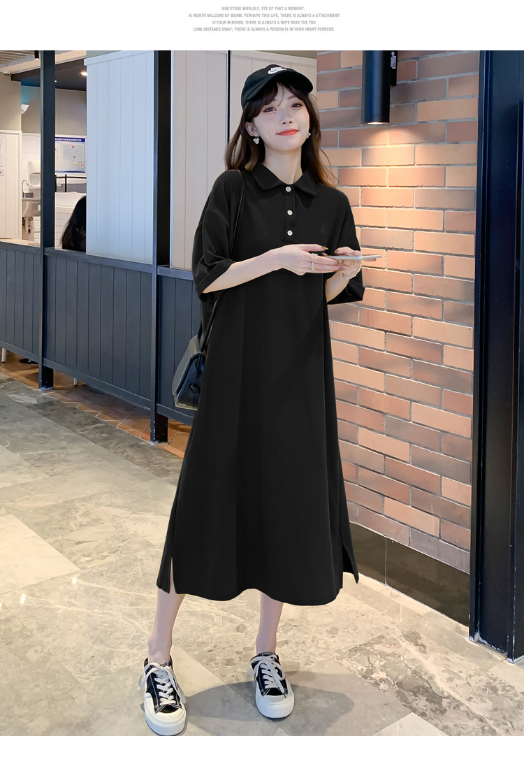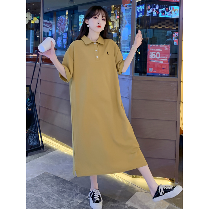 休閒純棉T恤裙子女2025夏季新款短袖大碼寬松顯瘦直筒polo連衣裙