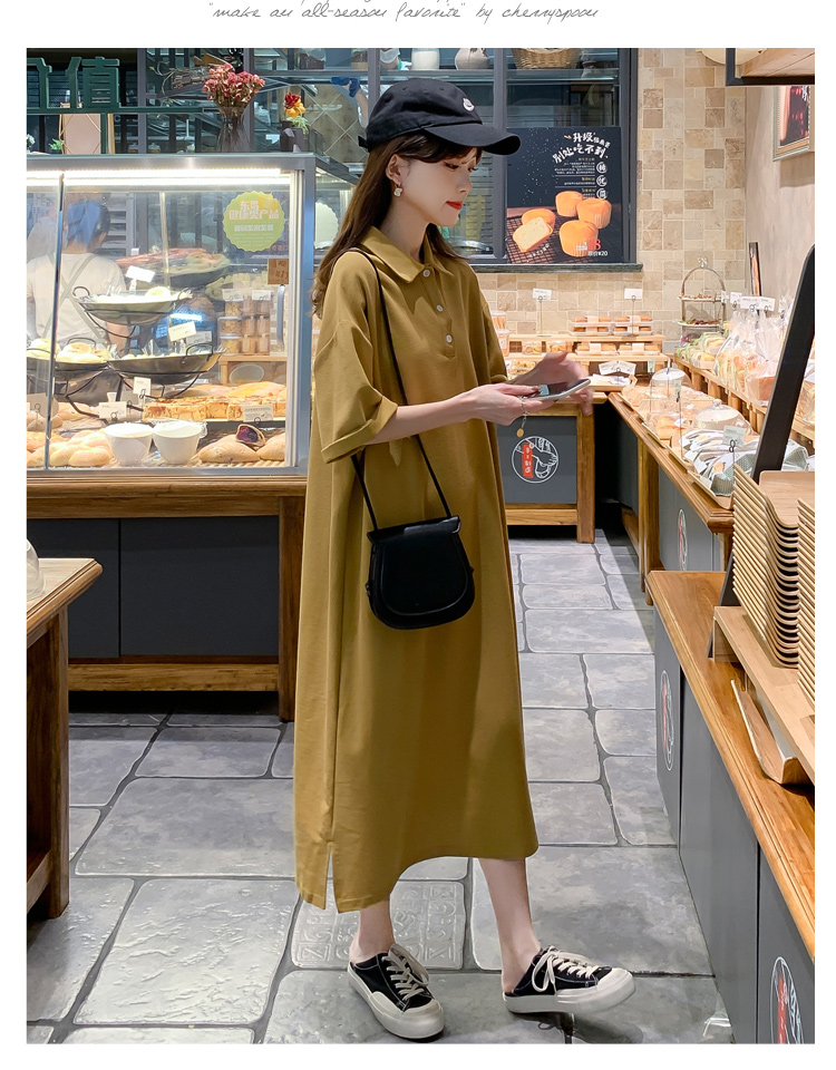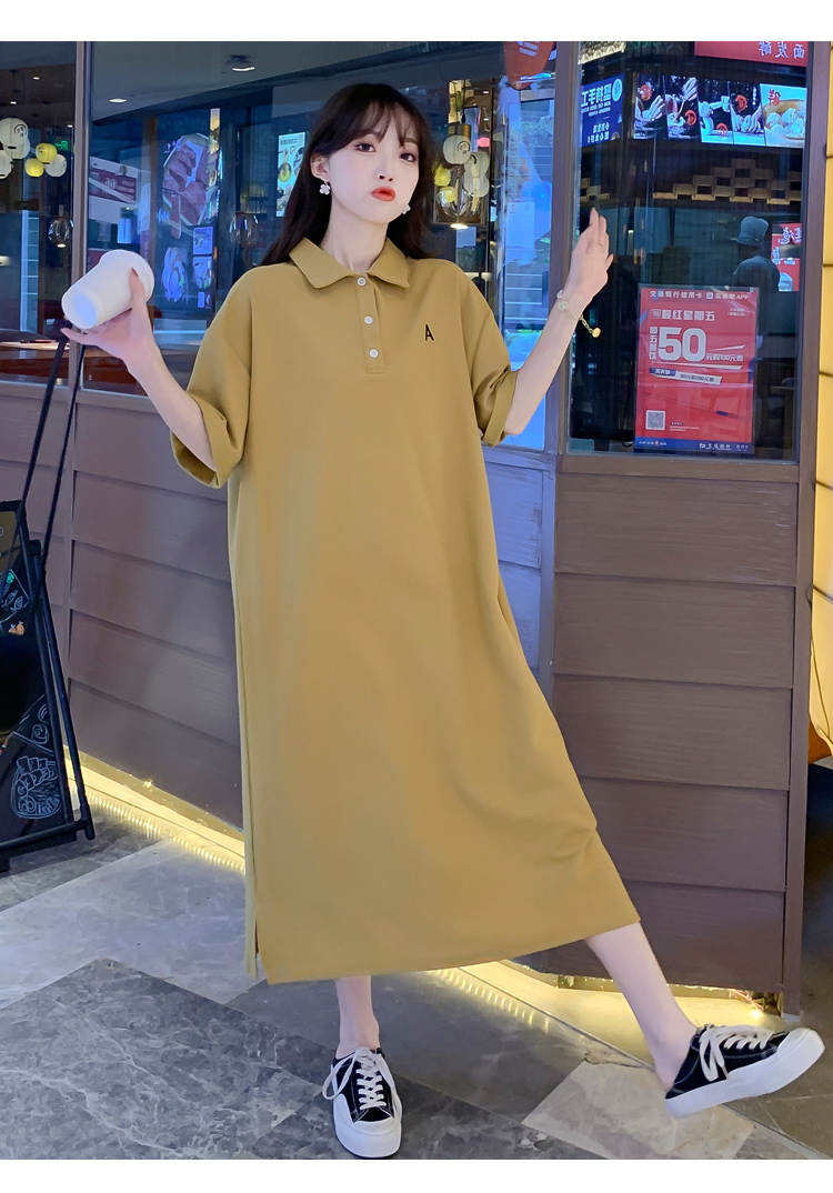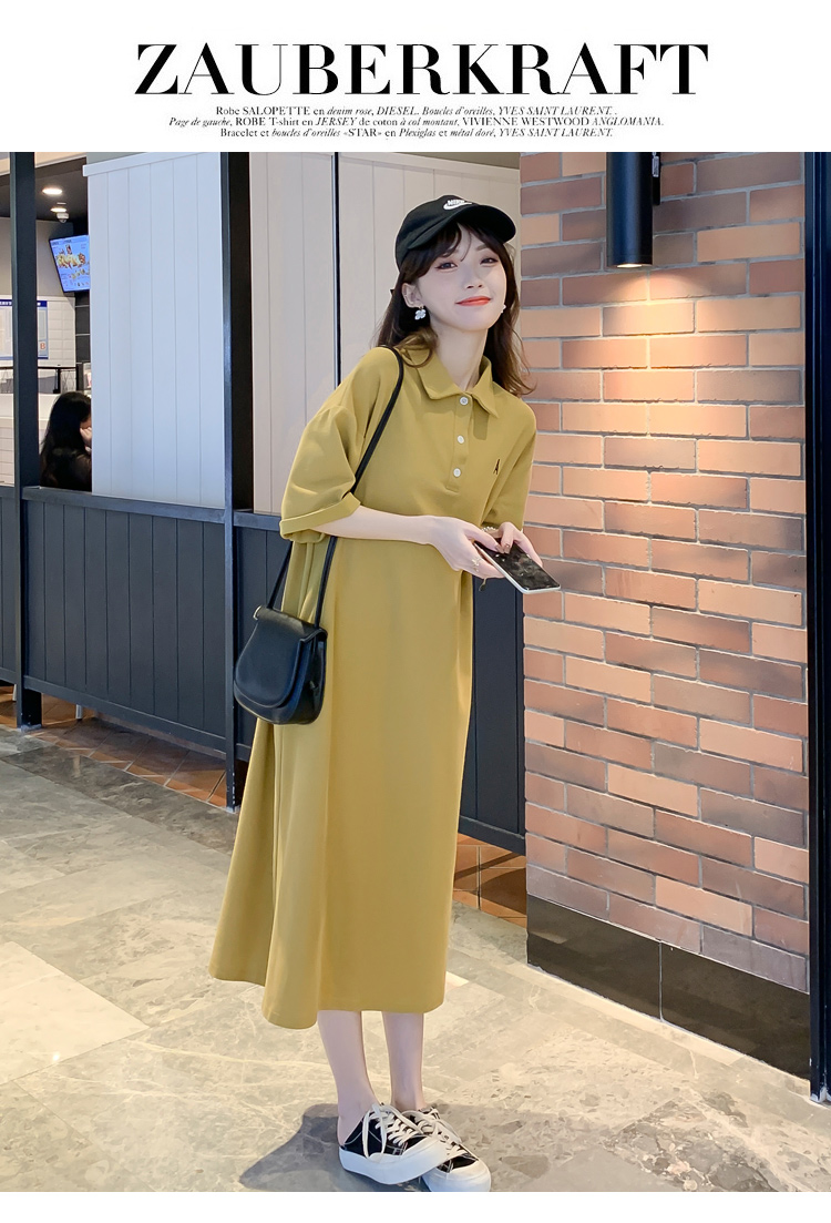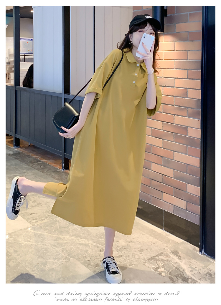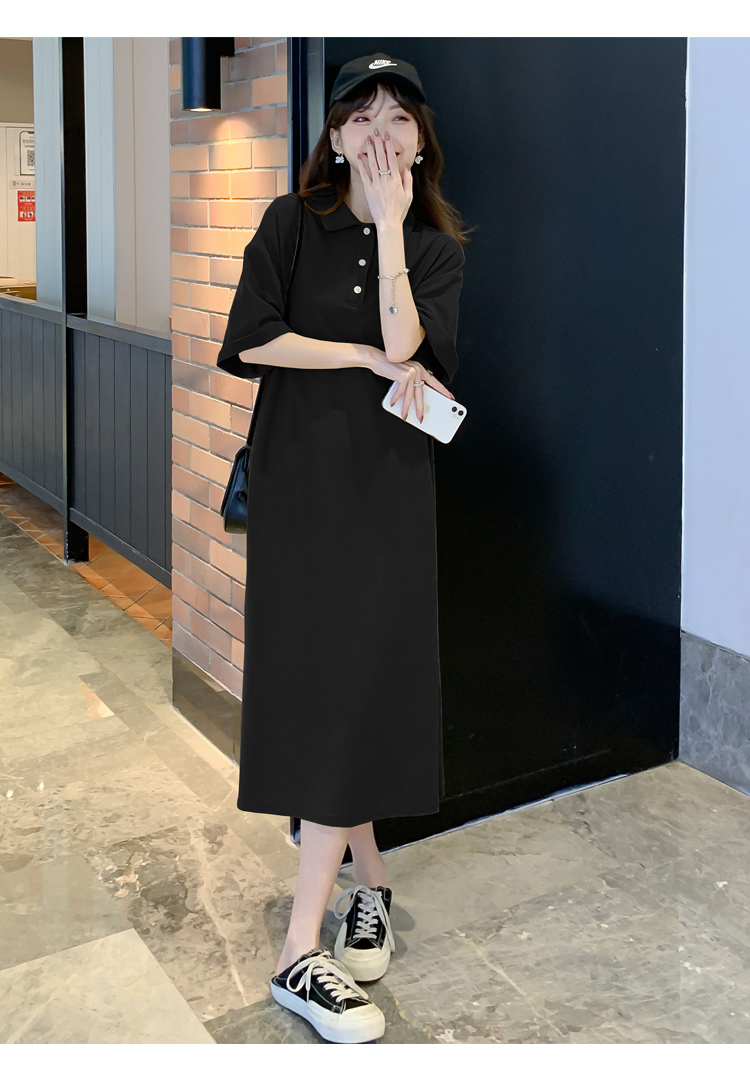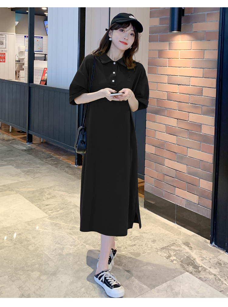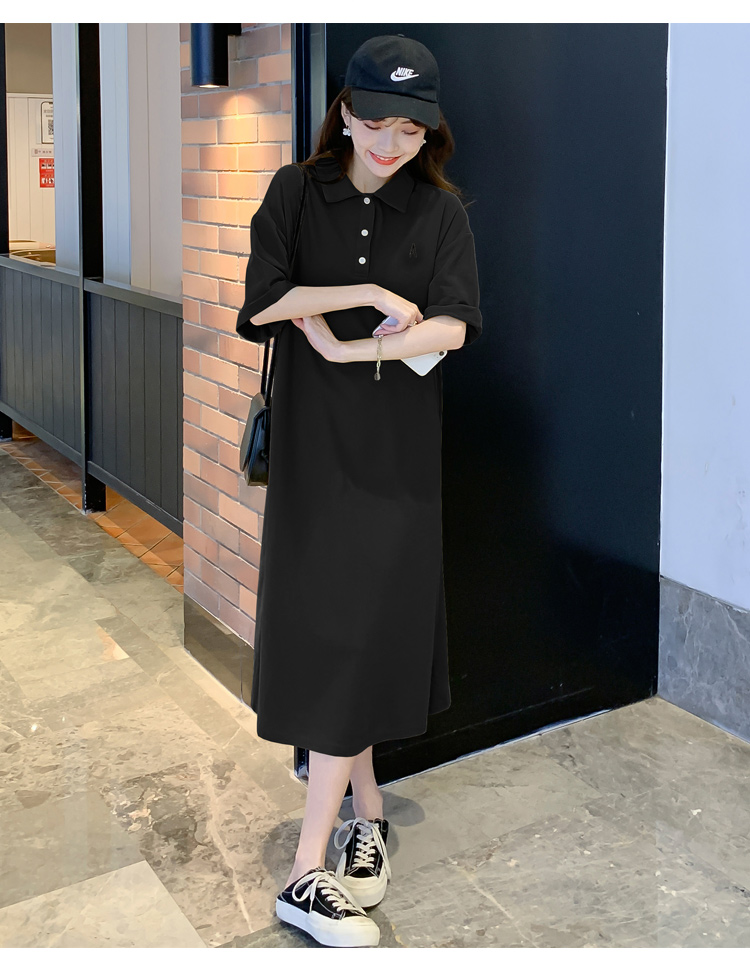 休閒純棉T恤裙子女2025夏季新款短袖大碼寬松顯瘦直筒polo連衣裙