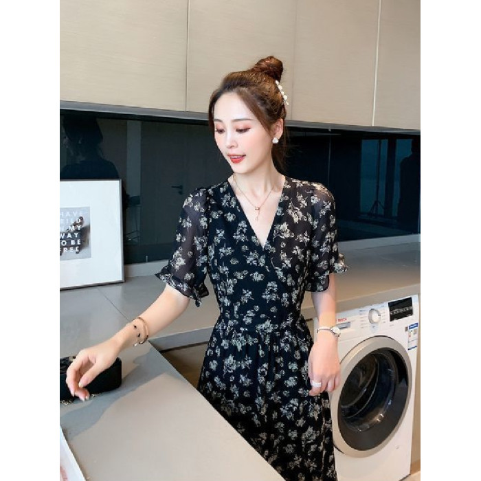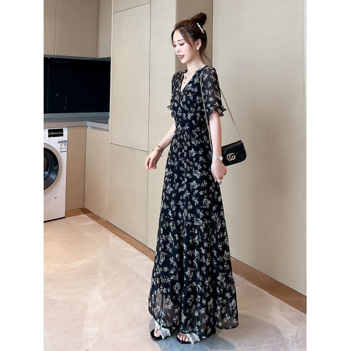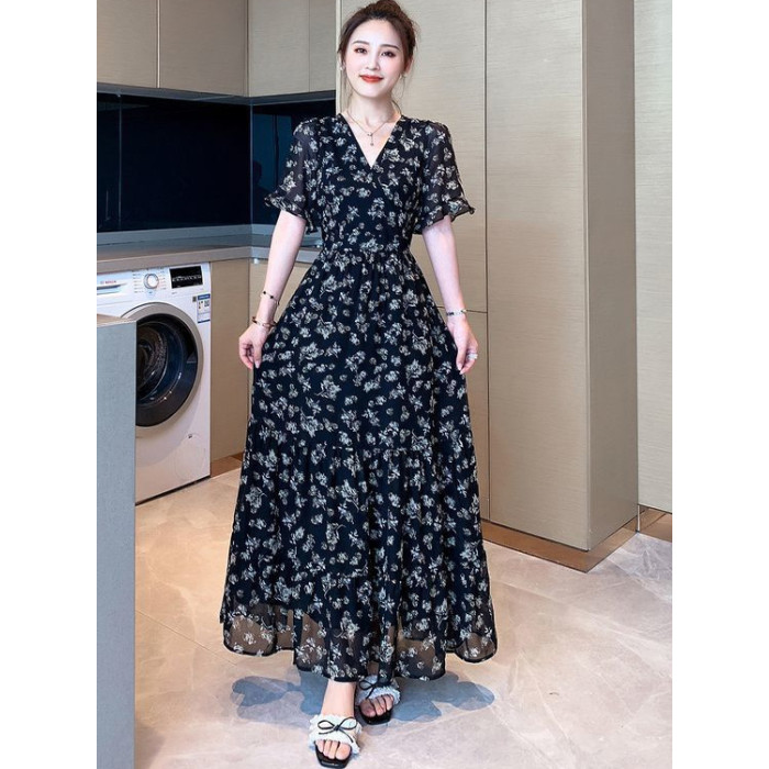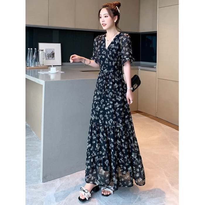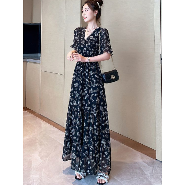 連衣裙女2025新款今年流行爆款碎花雪紡拖地長裙到腳踝超長款夏季