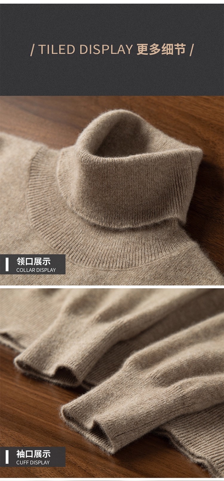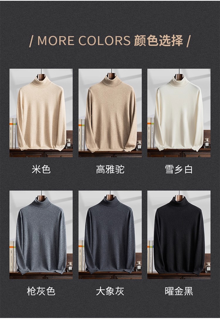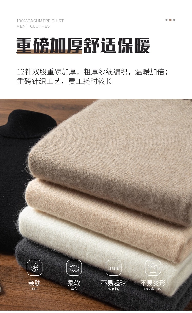 新款純絨男士可翻高領毛衣時尚保暖純山羊絨衫商務休閒針織打底衫