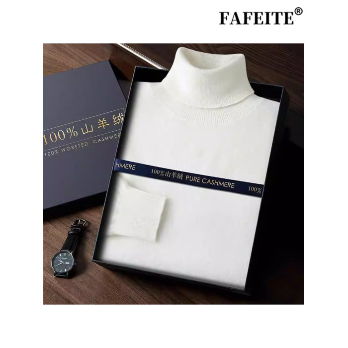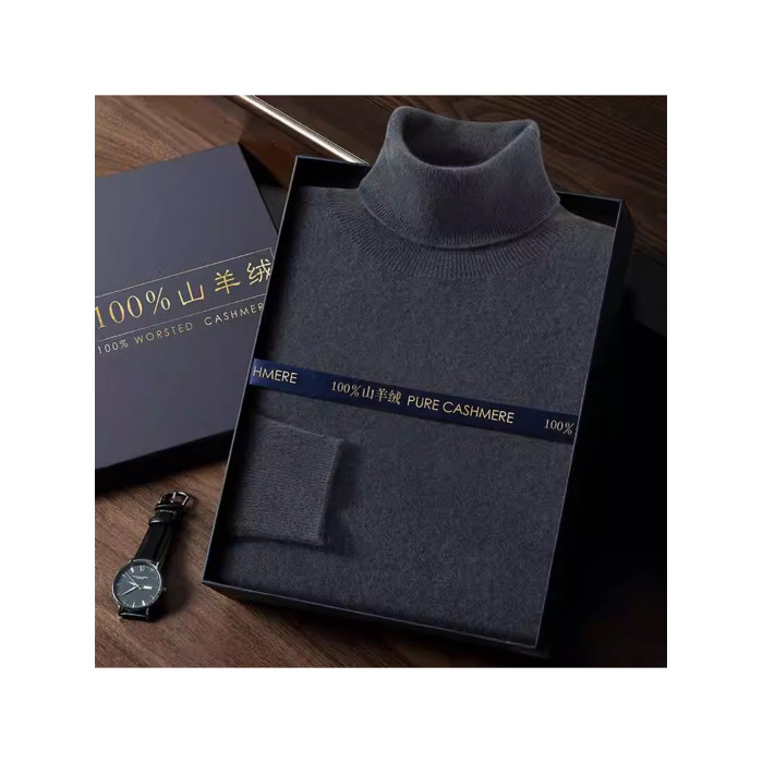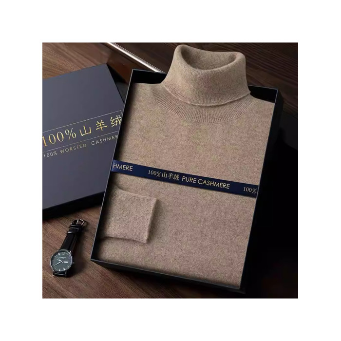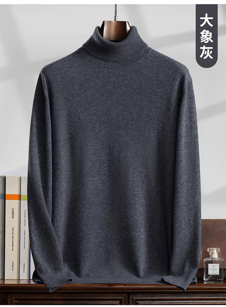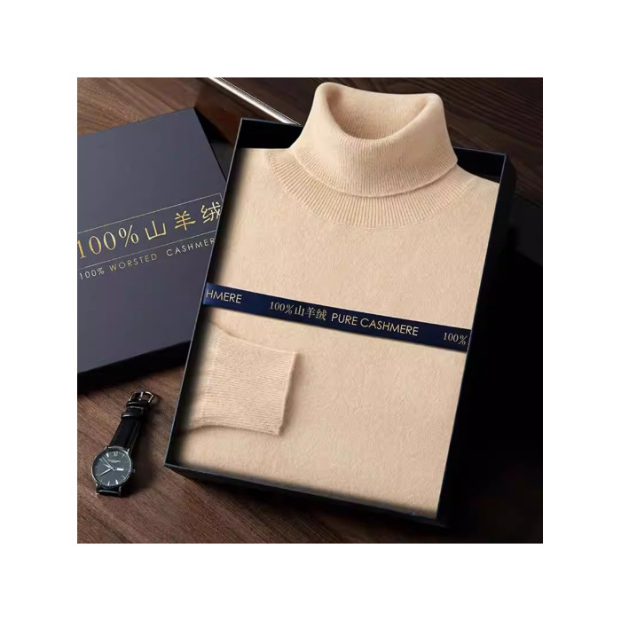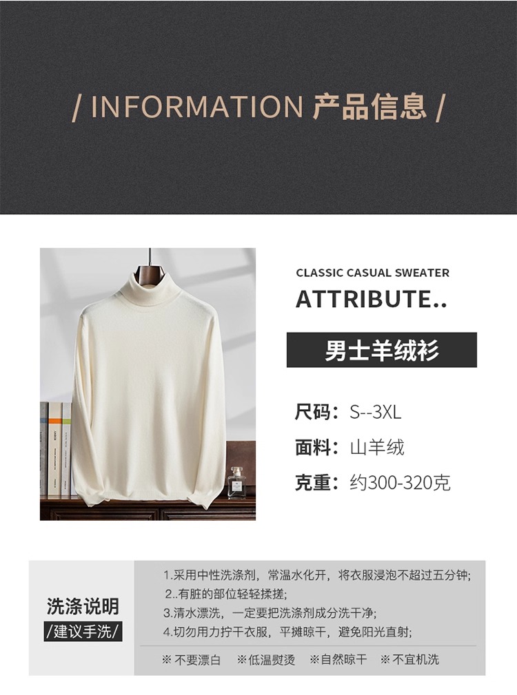新款純絨男士可翻高領毛衣時尚保暖純山羊絨衫商務休閒針織打底衫