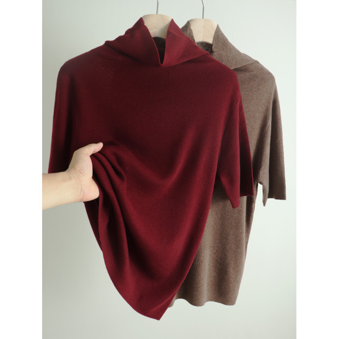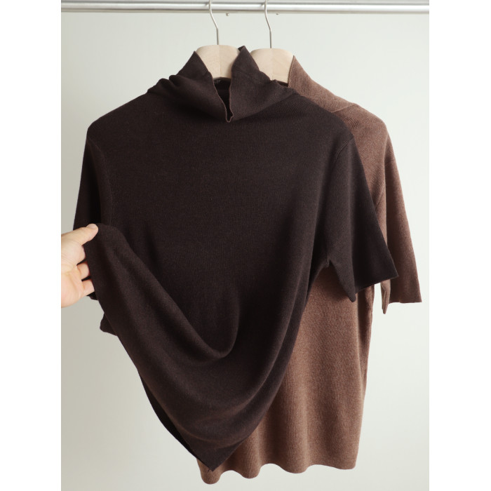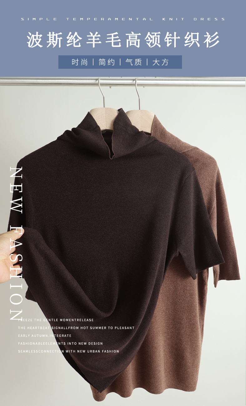 秋季新款純色高領短袖針織打底衫毛衣寬松修身套頭彈力百搭女上衣