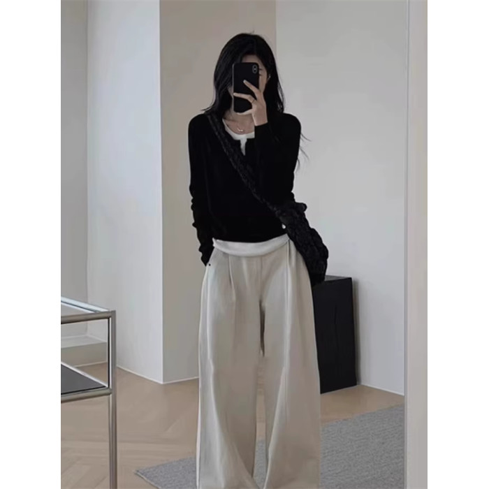 灰色【茶系穿搭/千金風/設計感小衆/紙片人穿搭/時髦書呆子/辣妹/慵嬾風/高彈打底衫/氛圍感穿搭/大衣內搭/歐貨小衫/桔梗/法式嬭系溫柔上衣】