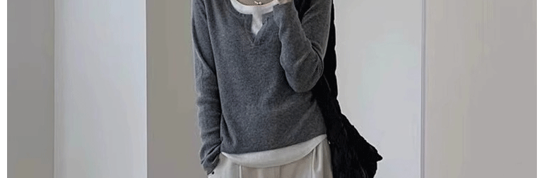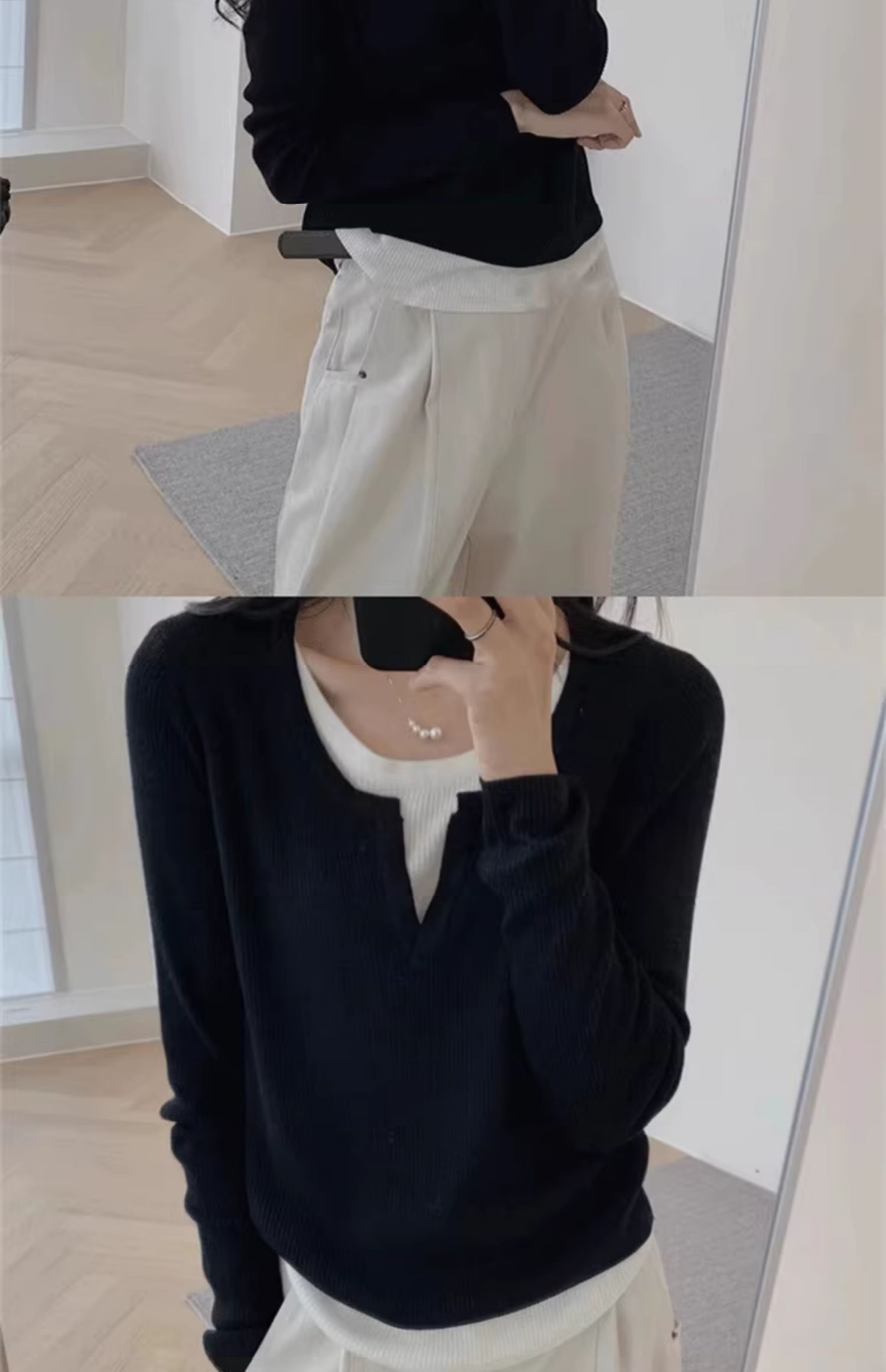 小個子拼接假兩件撞色針織衫女秋冬休閒慵懶風內搭打底衫歐貨上衣