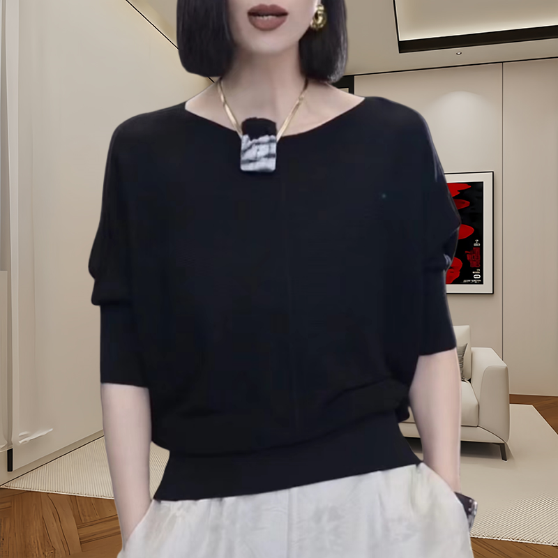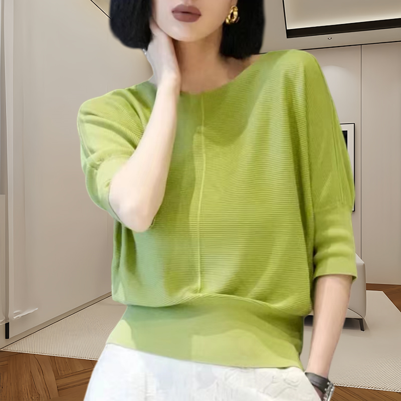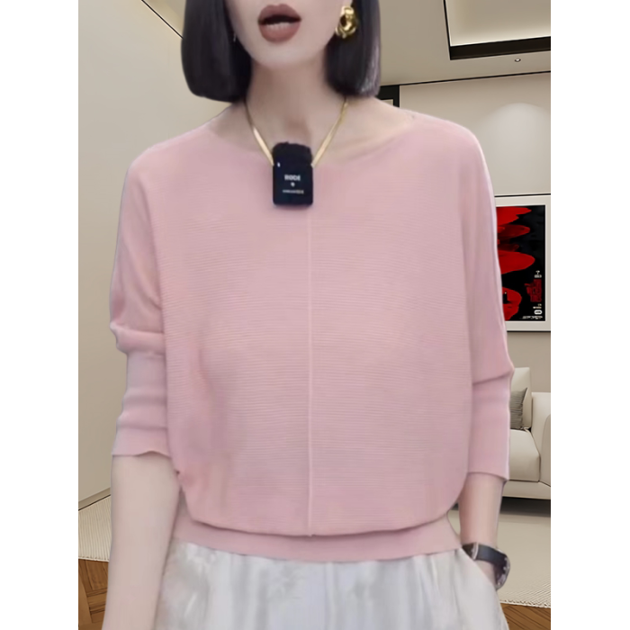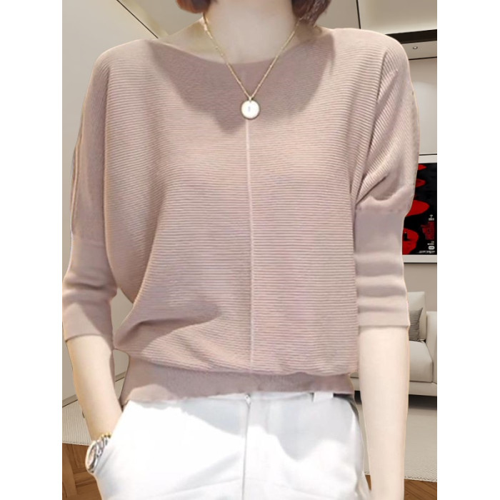 薄款針織衫女夏季新款圓領收腰純色七分袖打底衫大碼顯瘦遮肉上衣