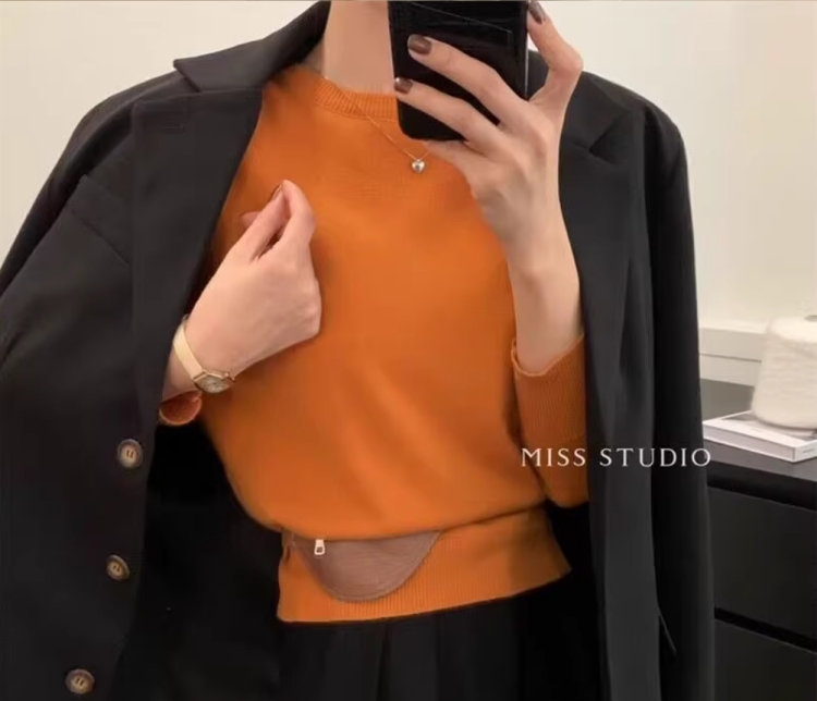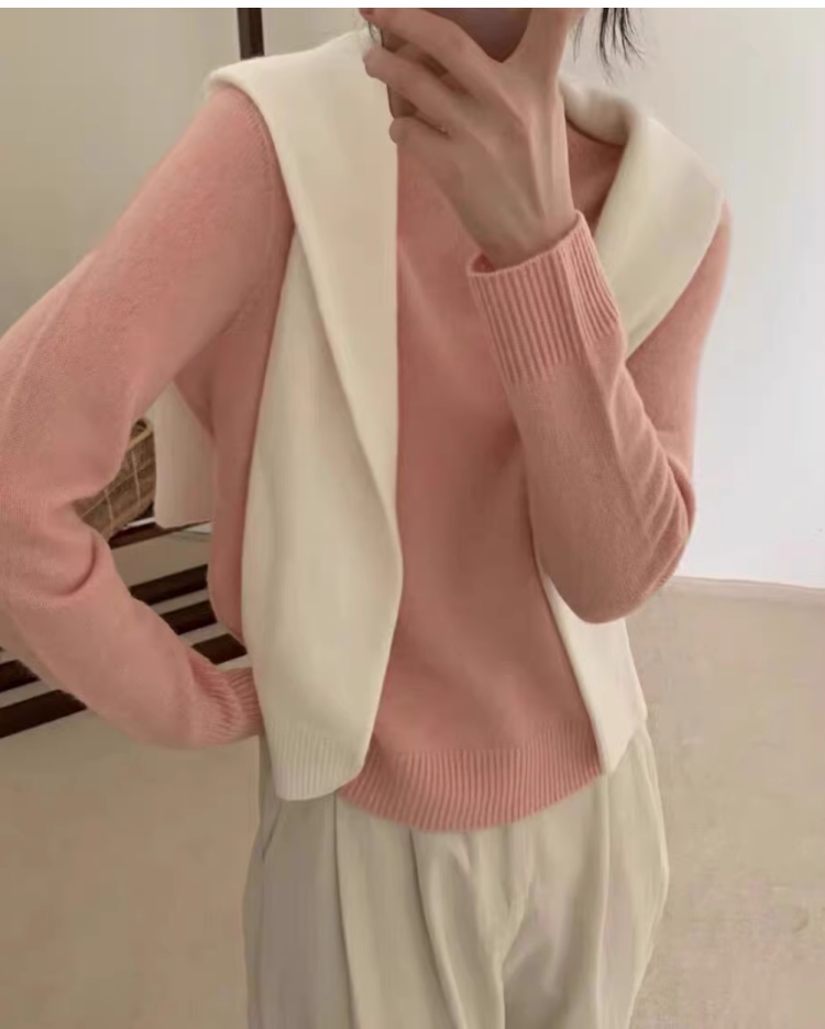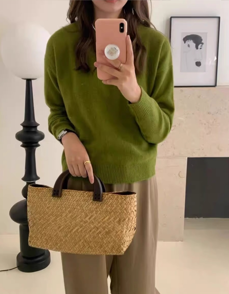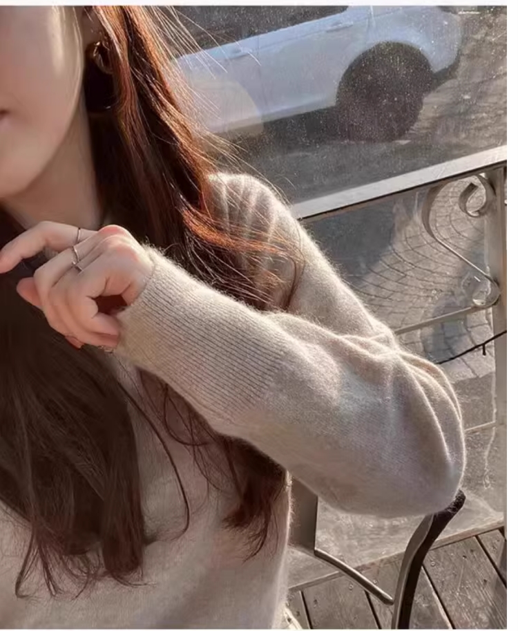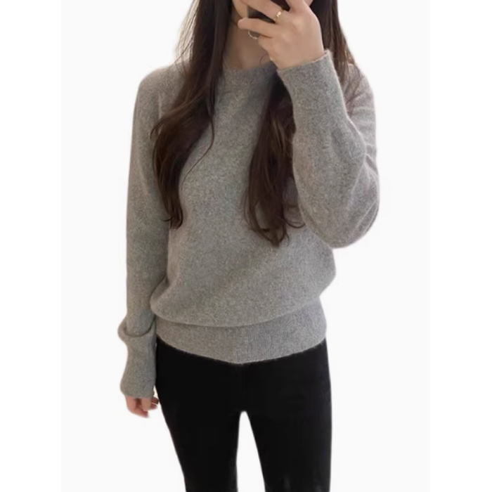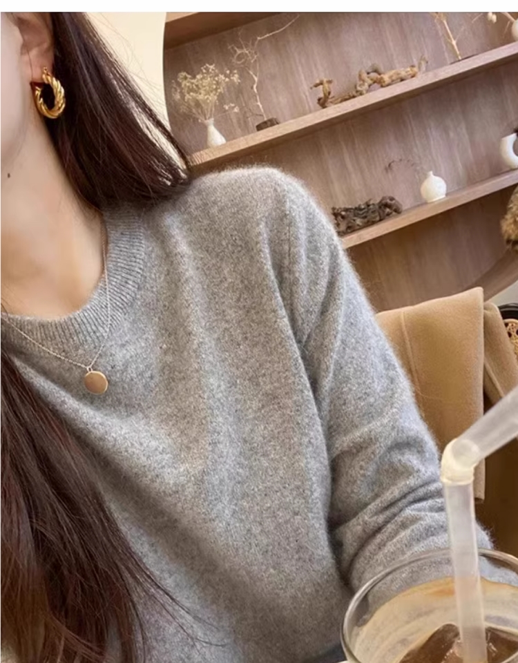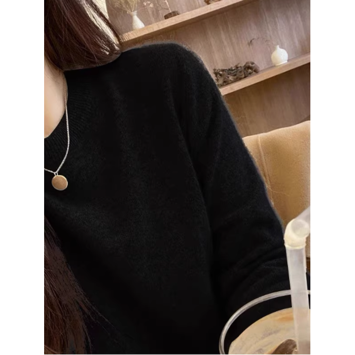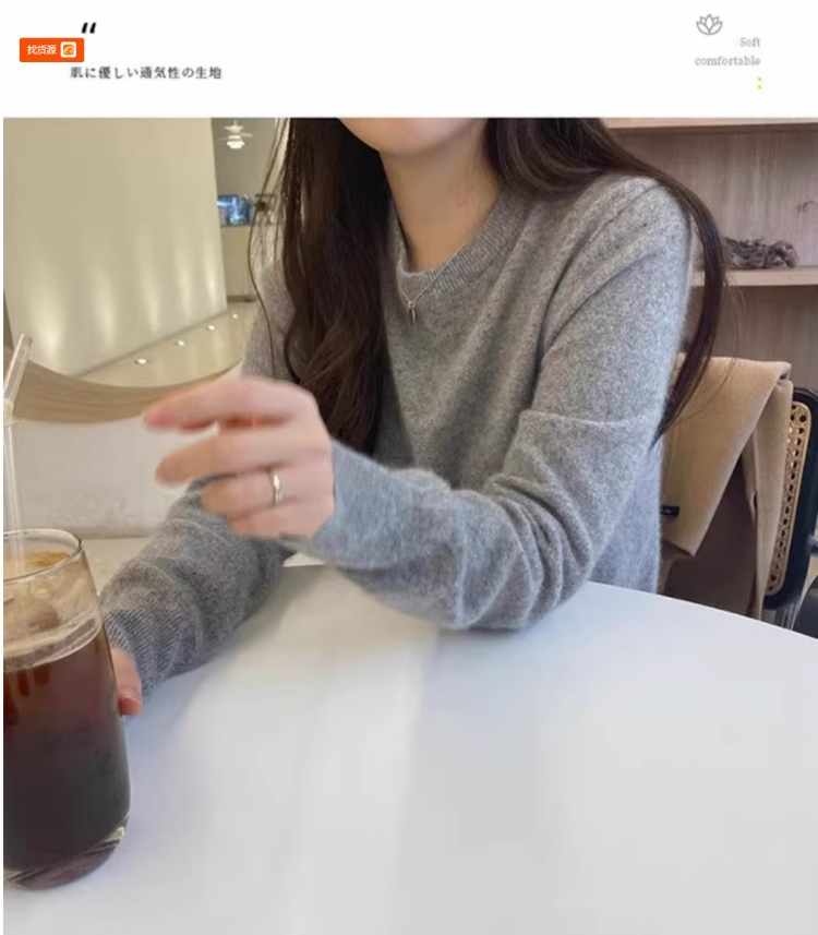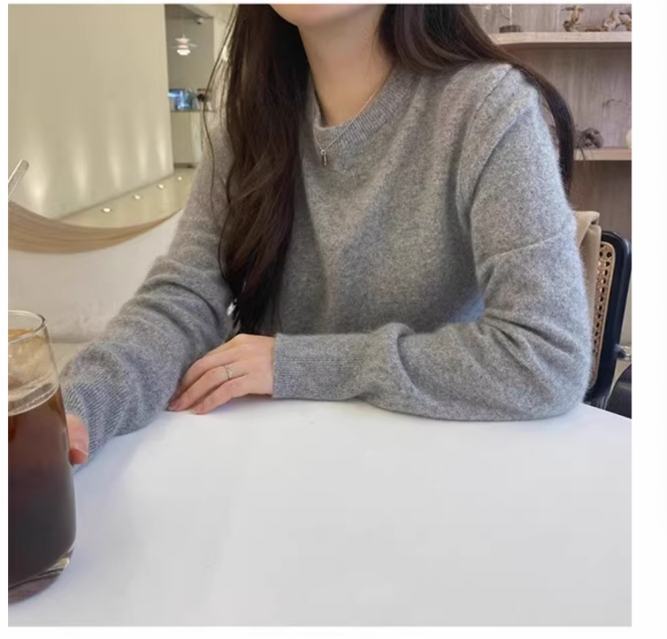 100%不起球羊毛衫女圓領套頭寬松羊毛衫短款百搭針織打底衫毛衣