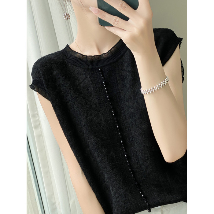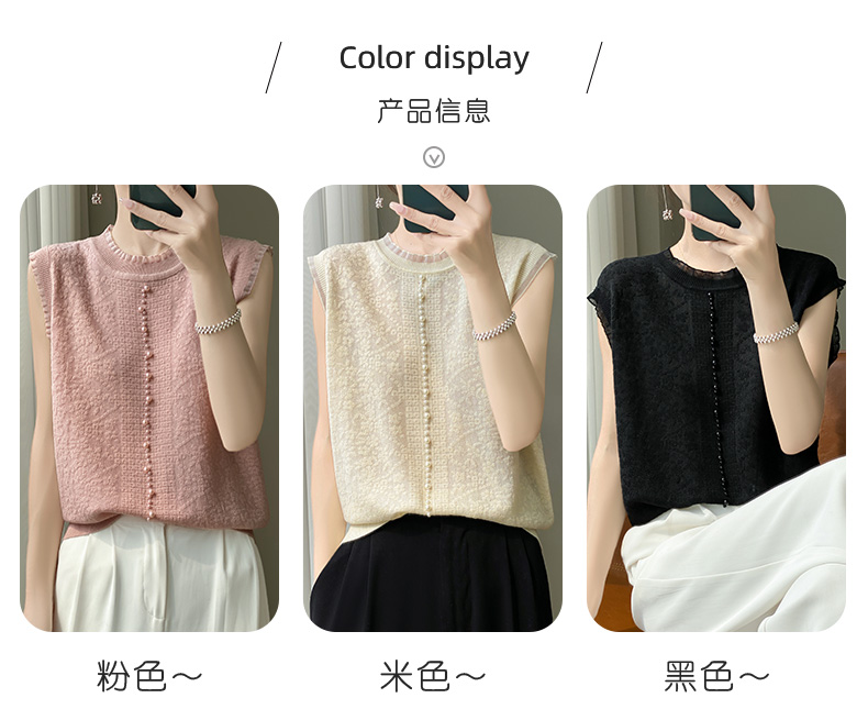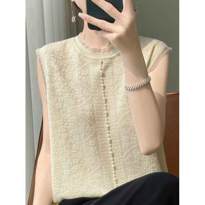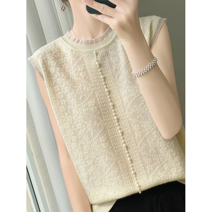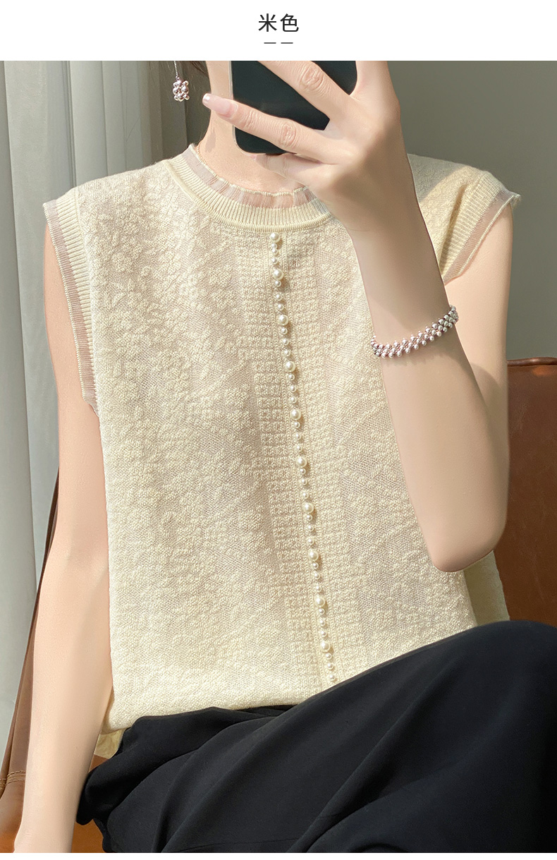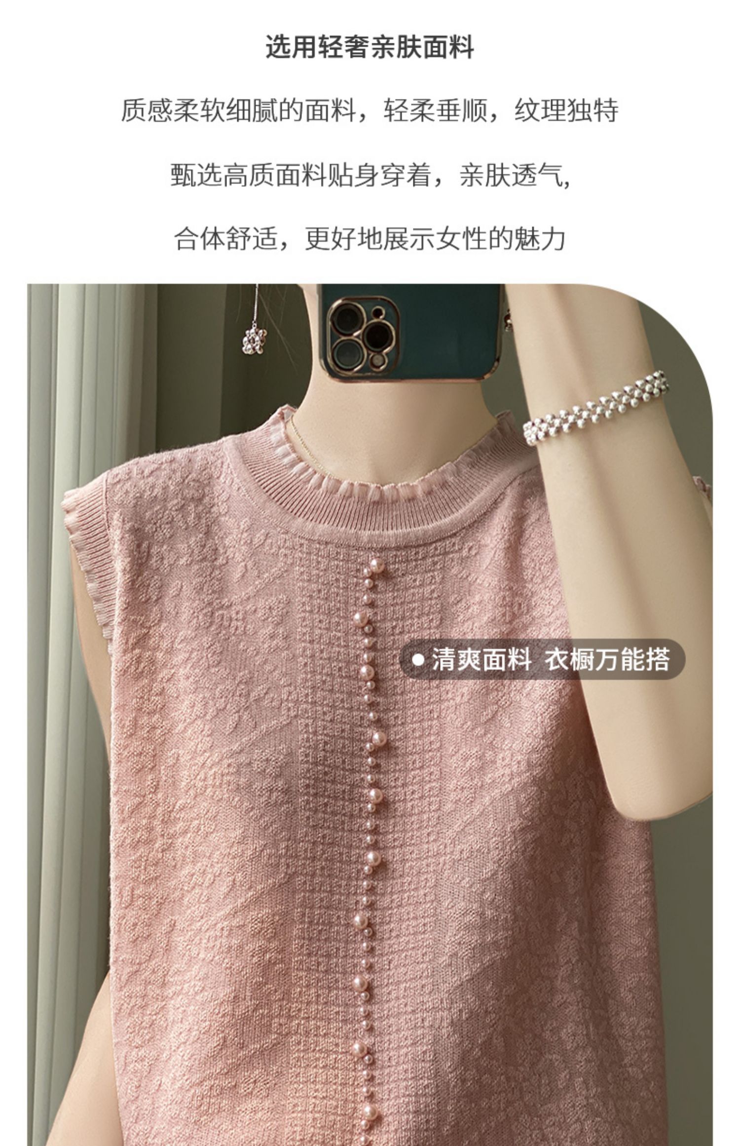 蕾絲釘珠提花無袖背心女夏季2025新款打底衫洋氣大碼冰絲針織上衣