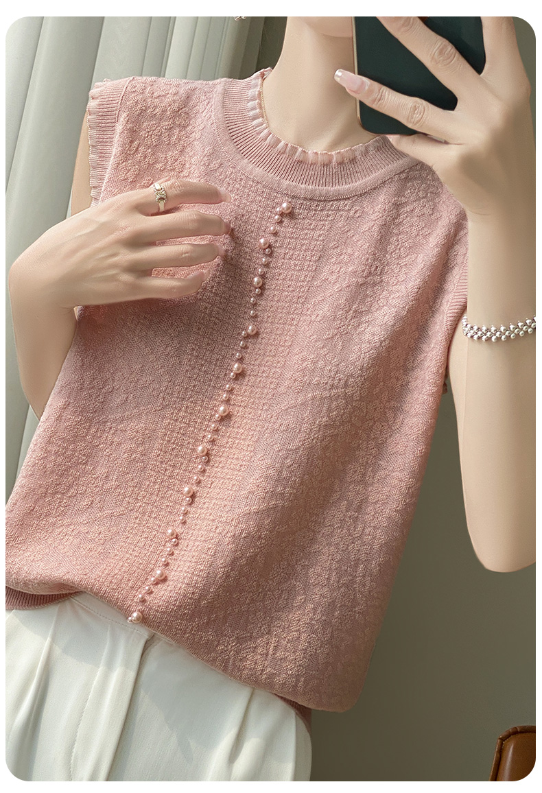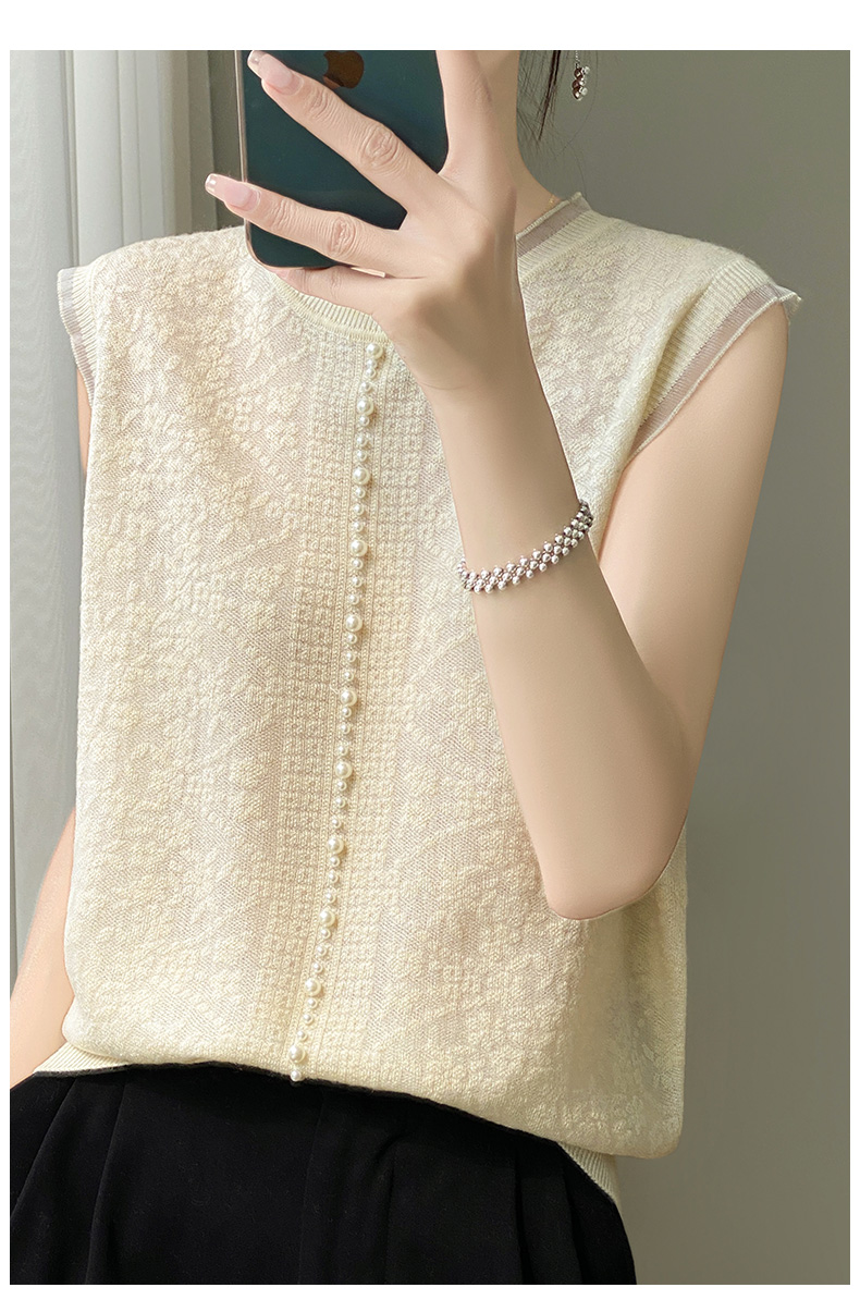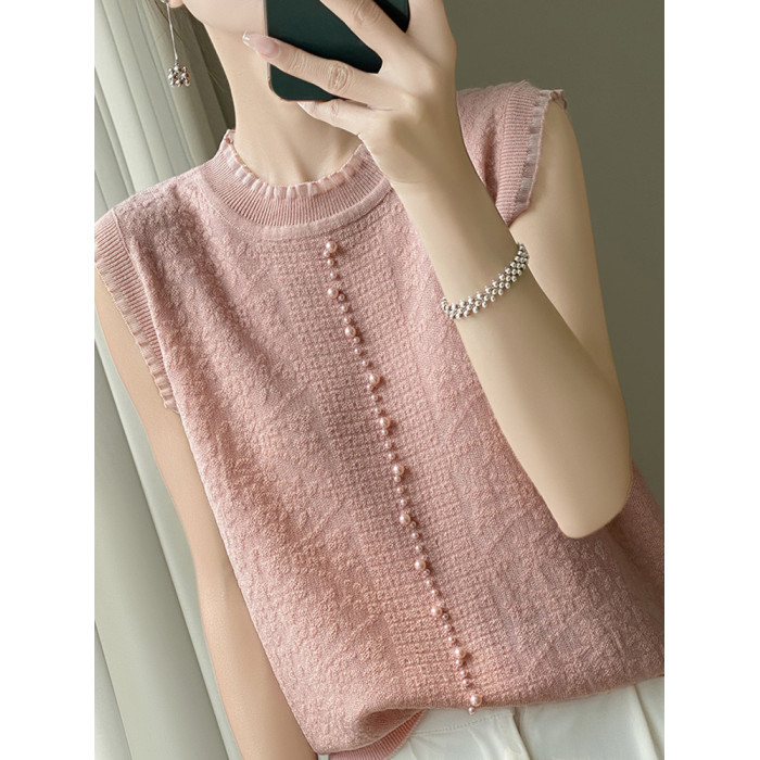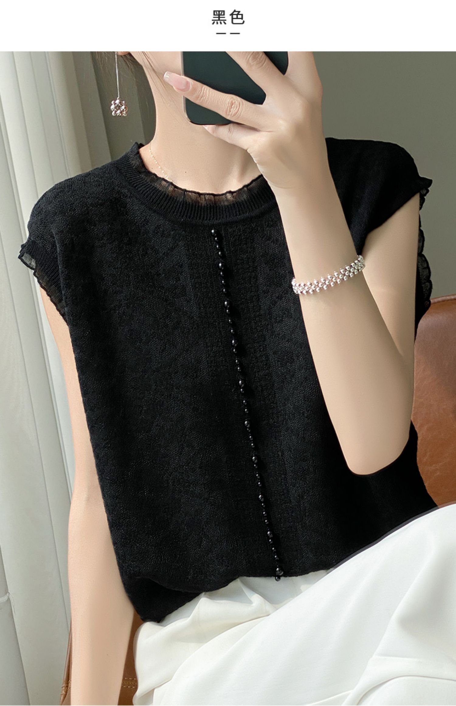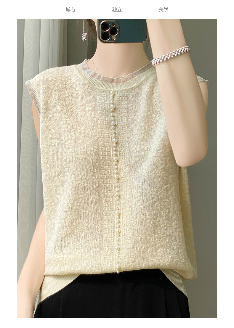 蕾絲釘珠提花無袖背心女夏季2025新款打底衫洋氣大碼冰絲針織上衣