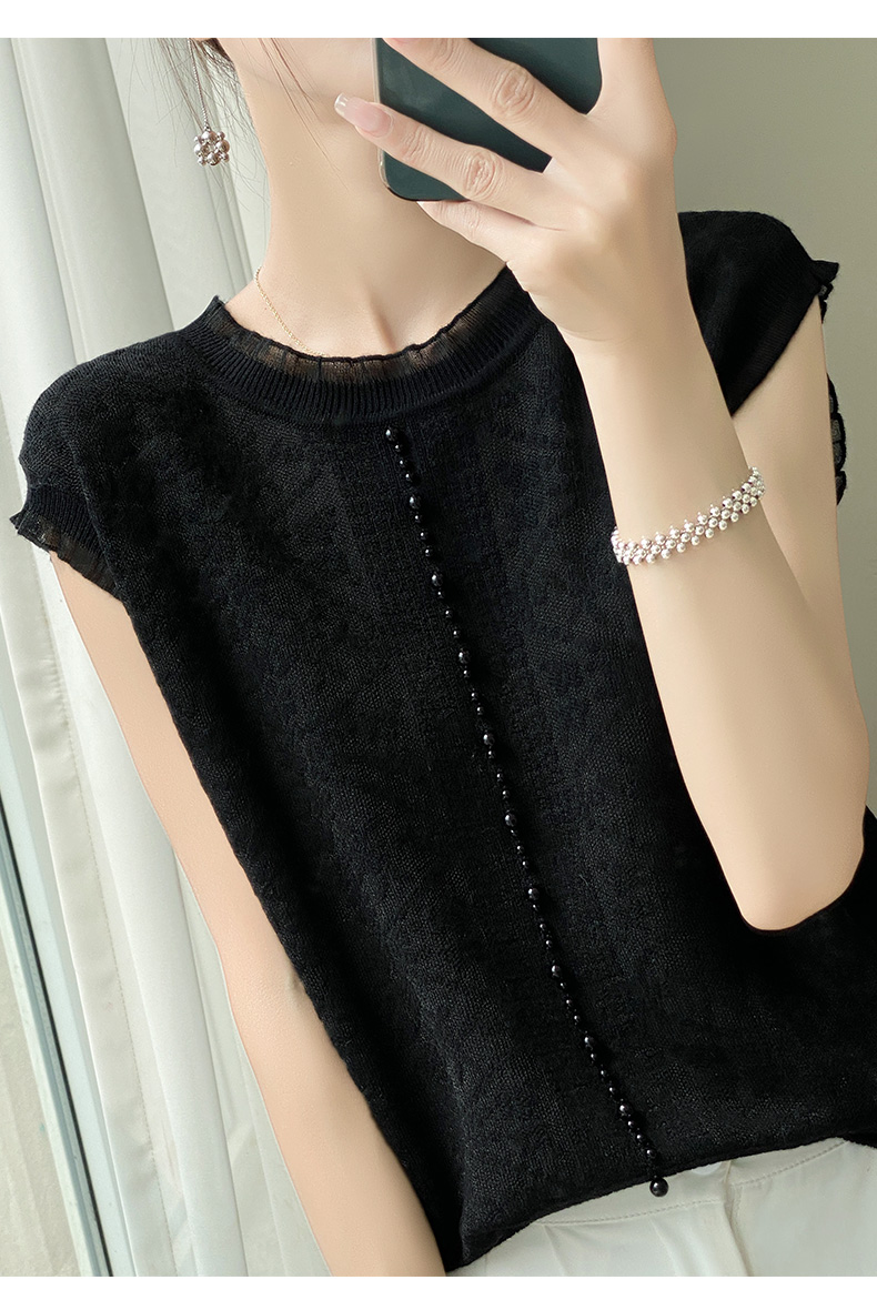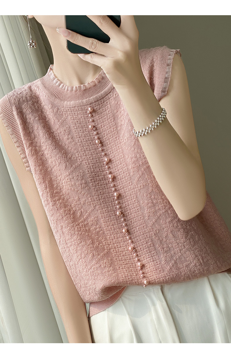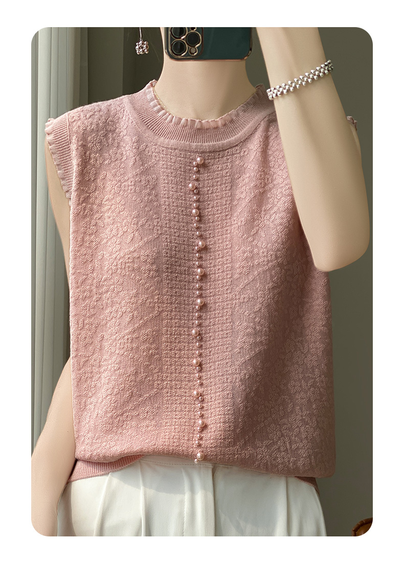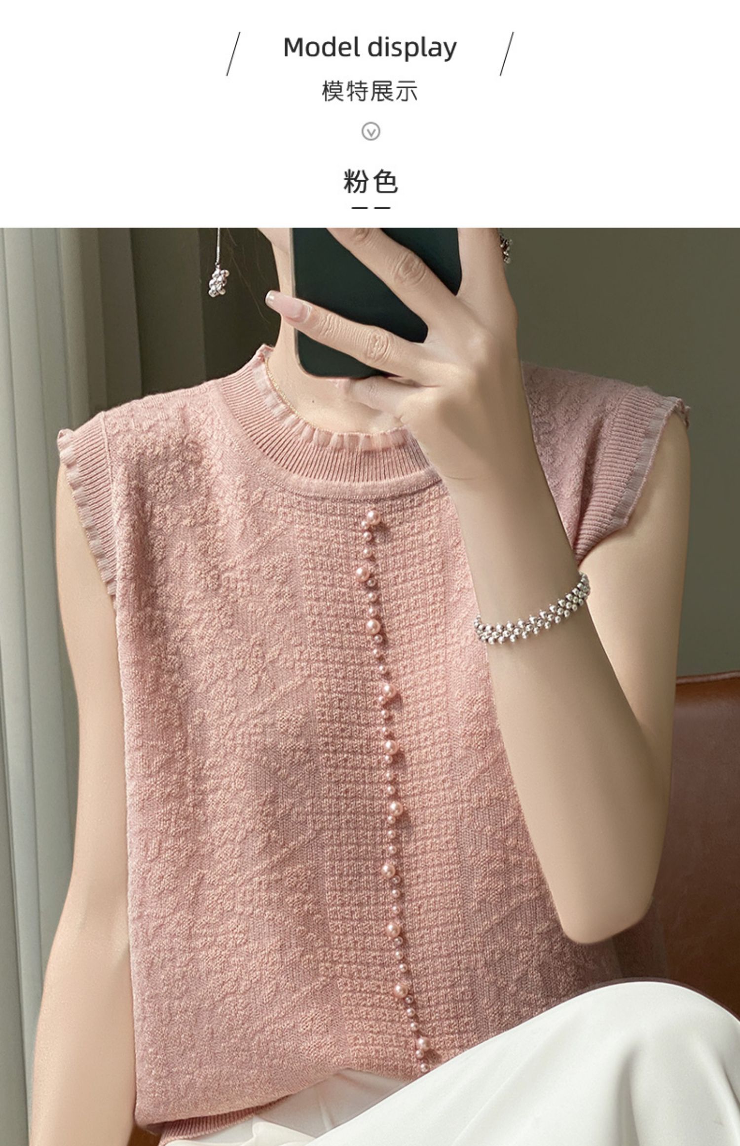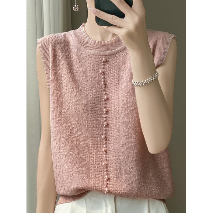 蕾絲釘珠提花無袖背心女夏季2025新款打底衫洋氣大碼冰絲針織上衣