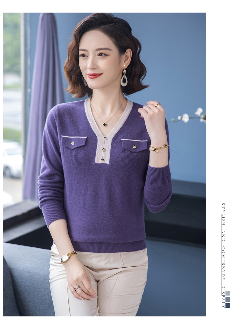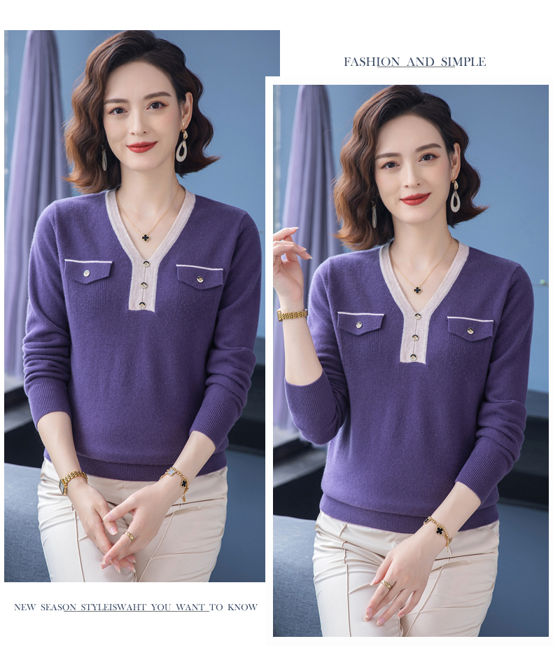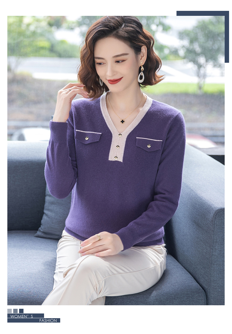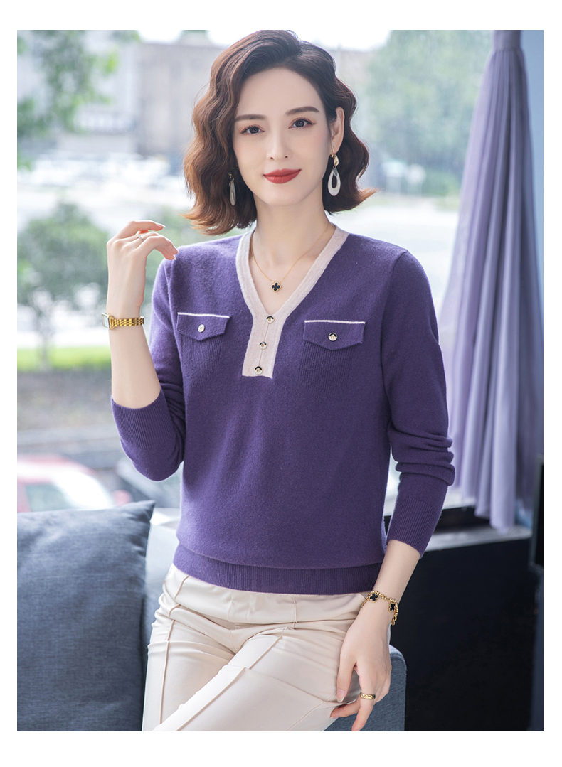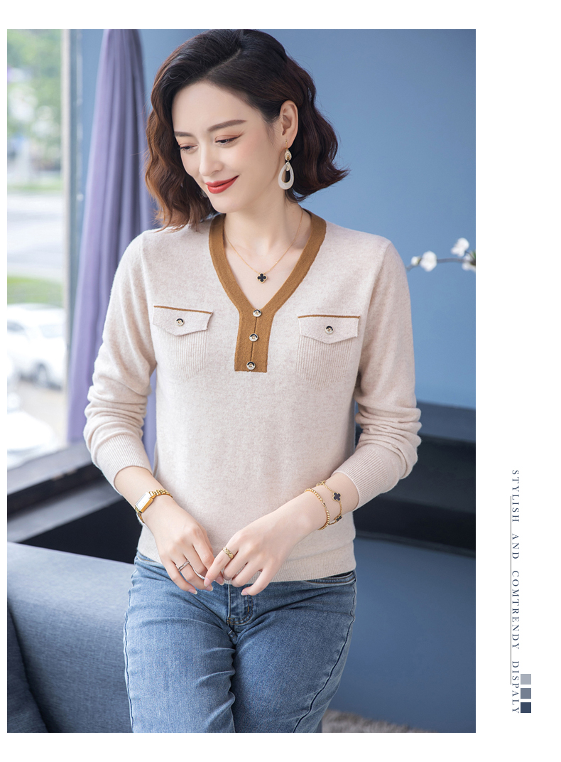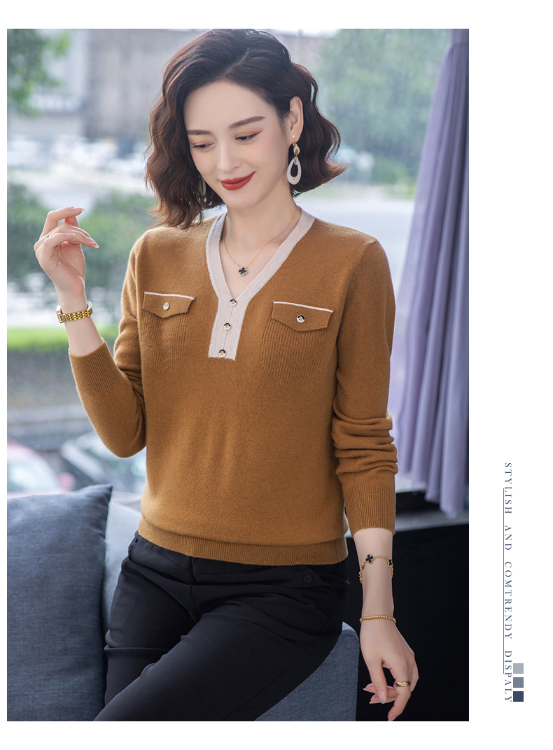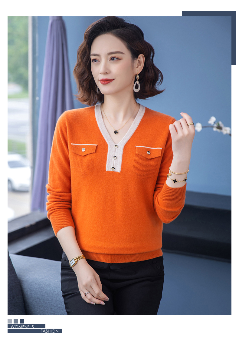 恒源祥羊毛衫女100純羊毛秋冬季新品V領短款媽媽裝毛衣內搭打底衫