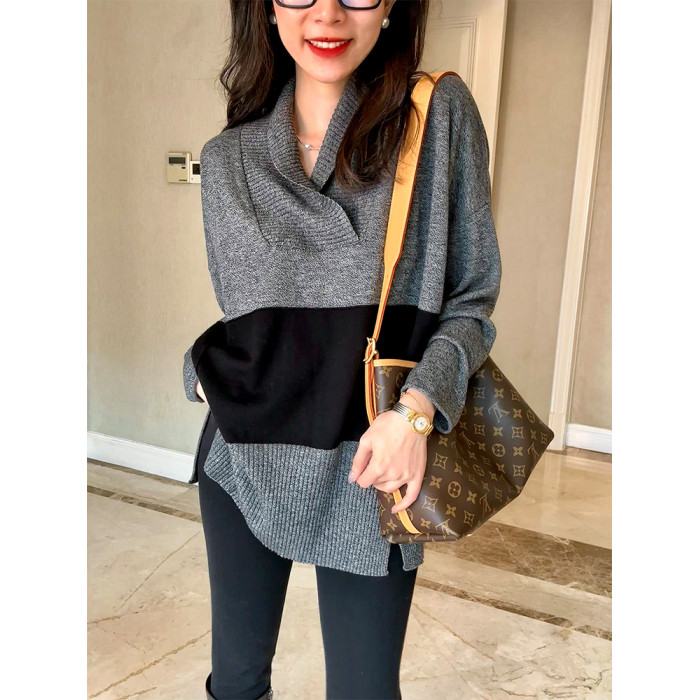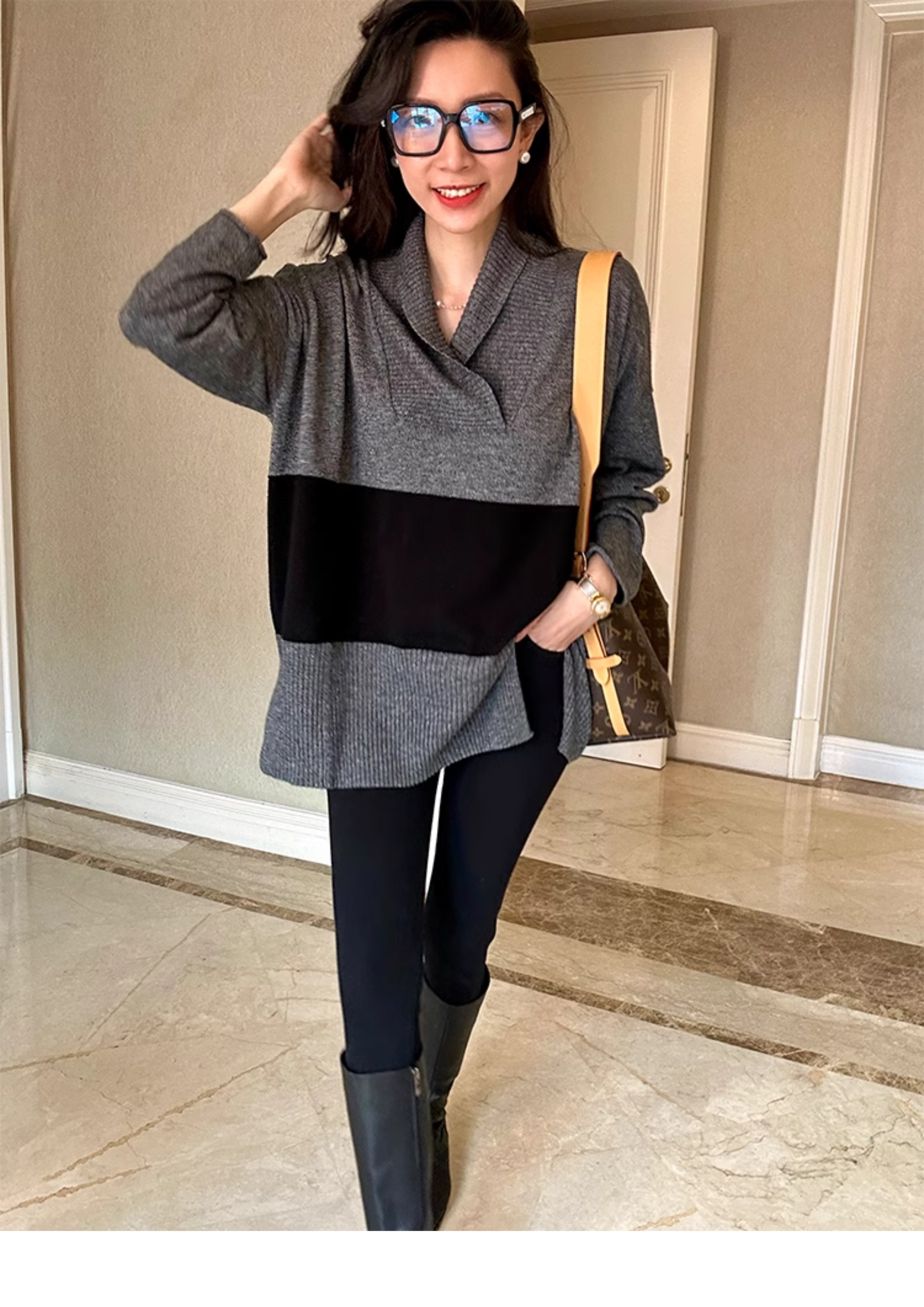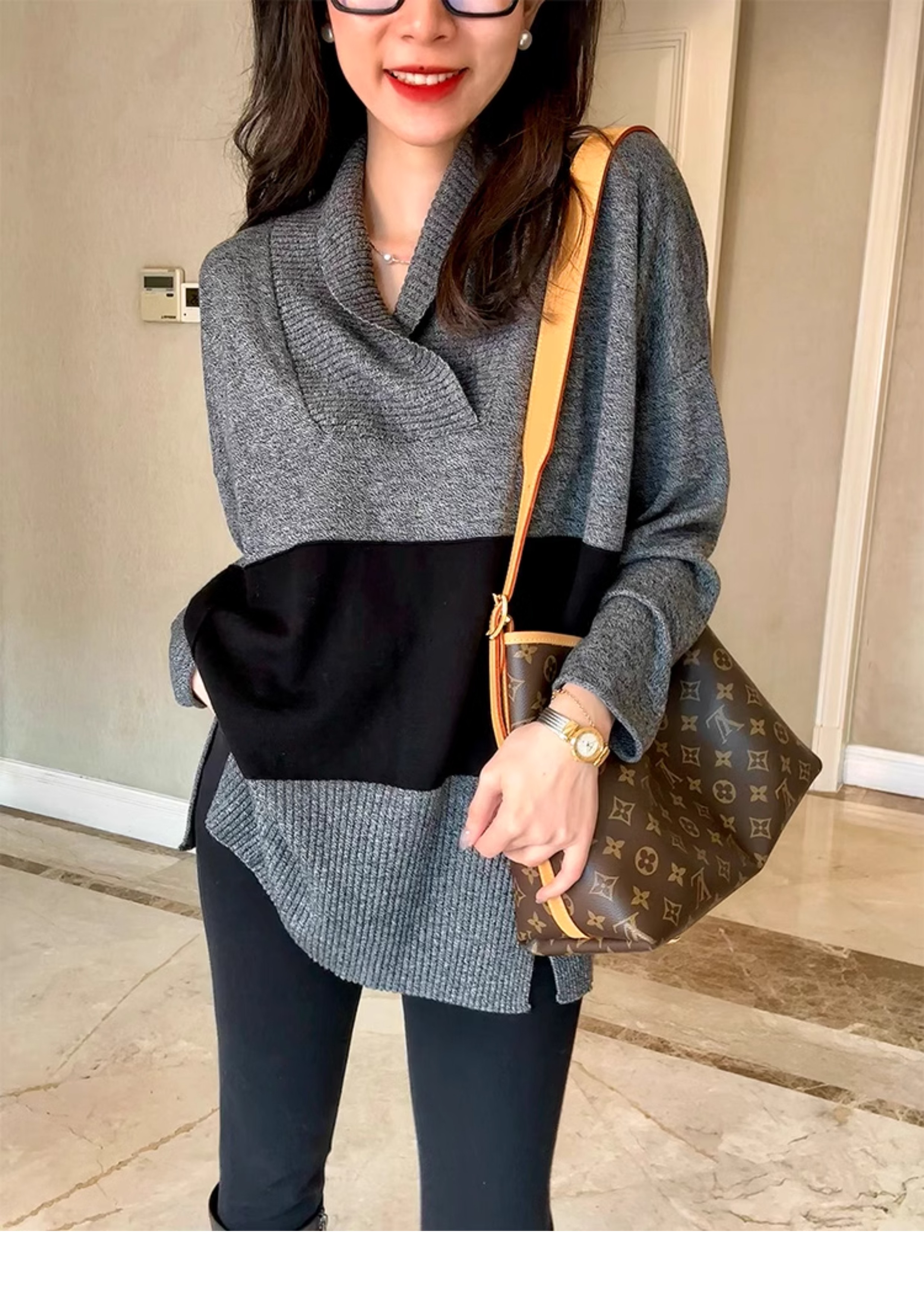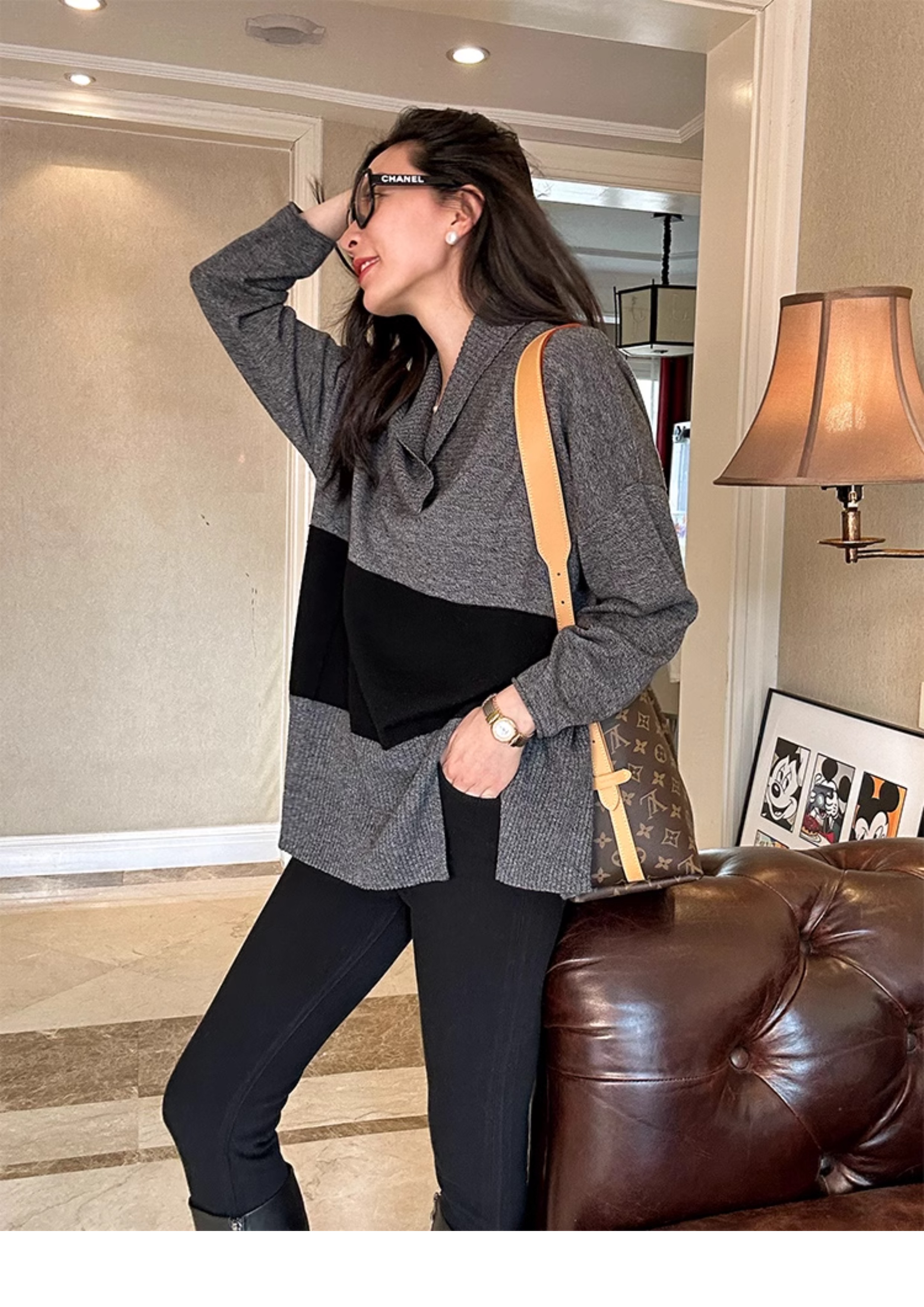 -ZINCCA- 訢卡自製米蘭拼接毛衣 慵懶風拼色上衣針織打底衫