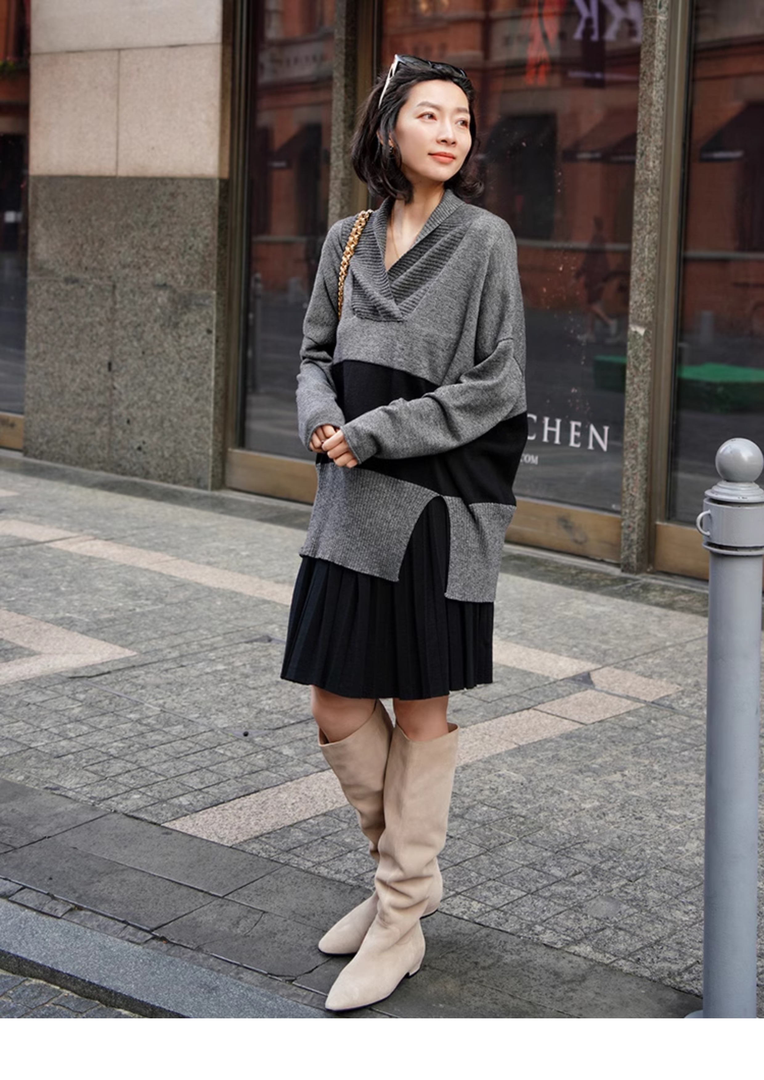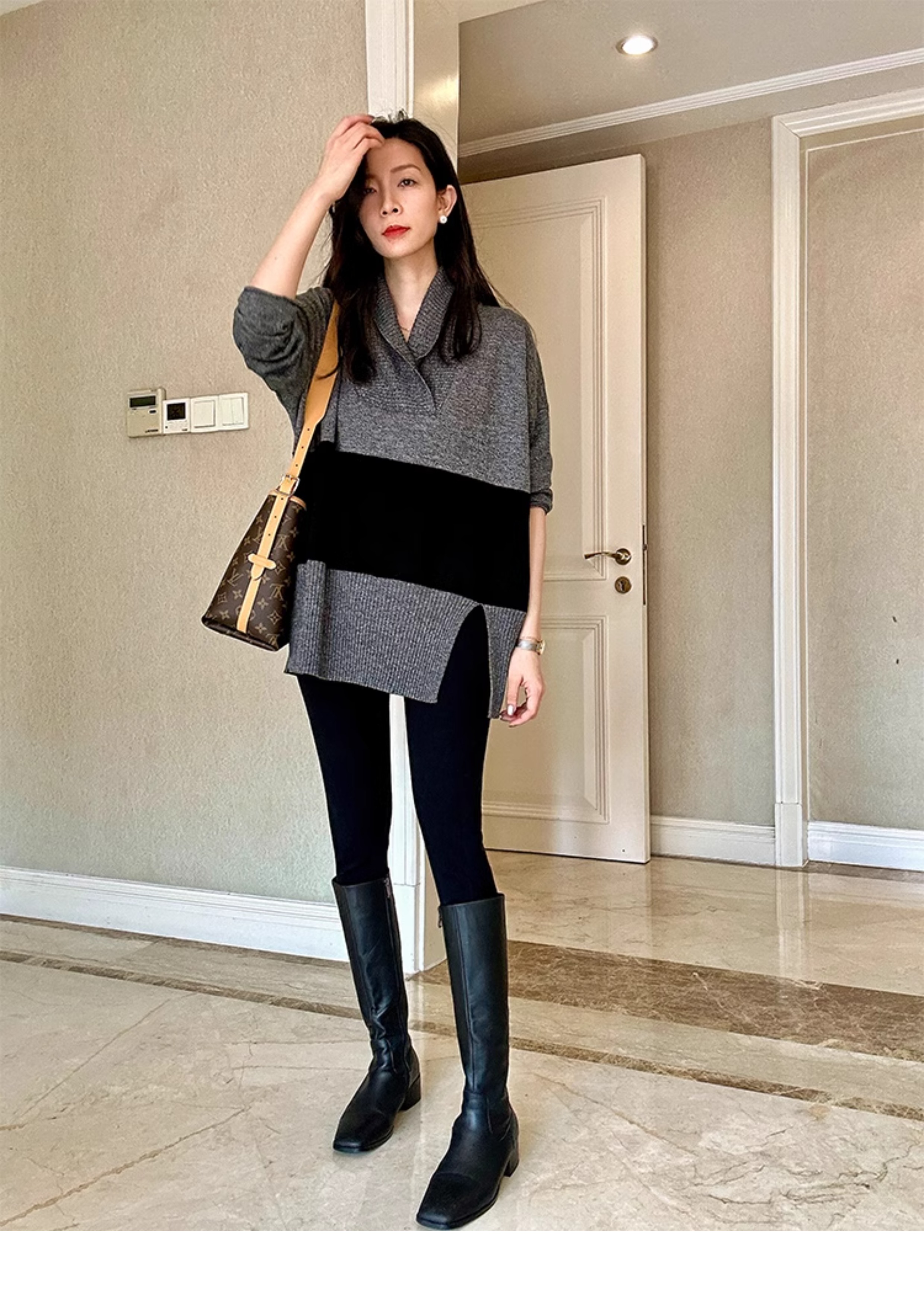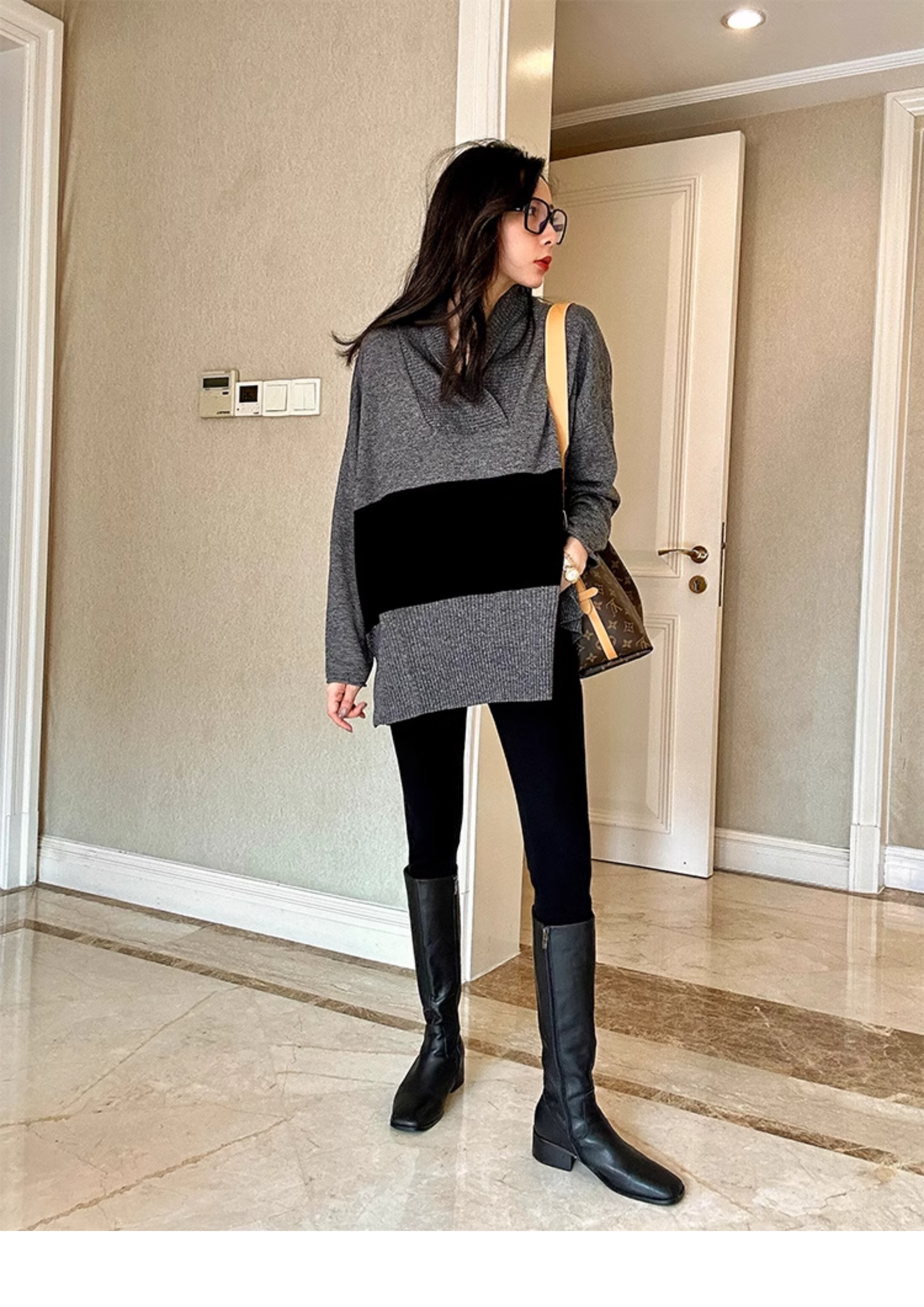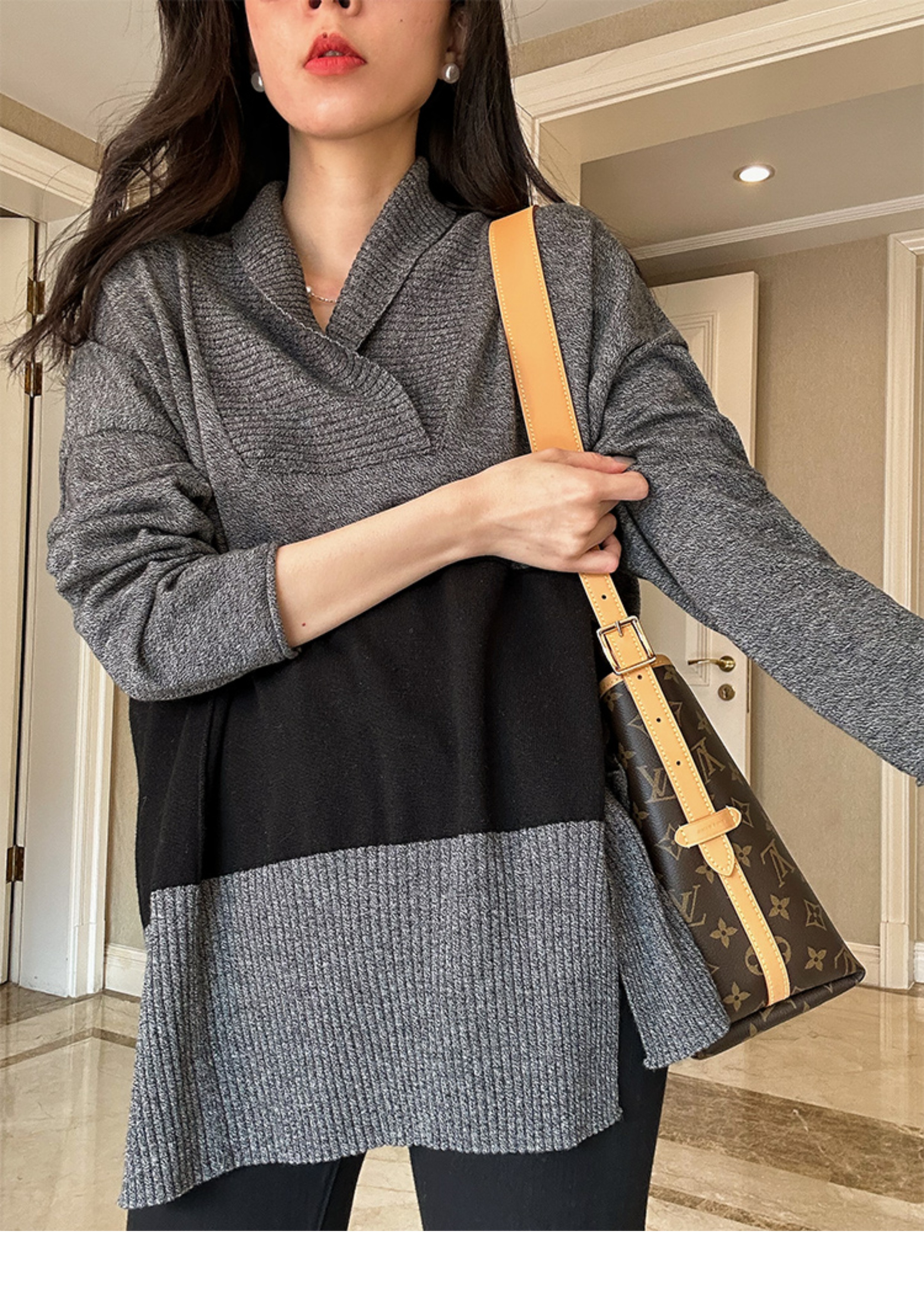 -ZINCCA- 訢卡自製米蘭拼接毛衣 慵懶風拼色上衣針織打底衫