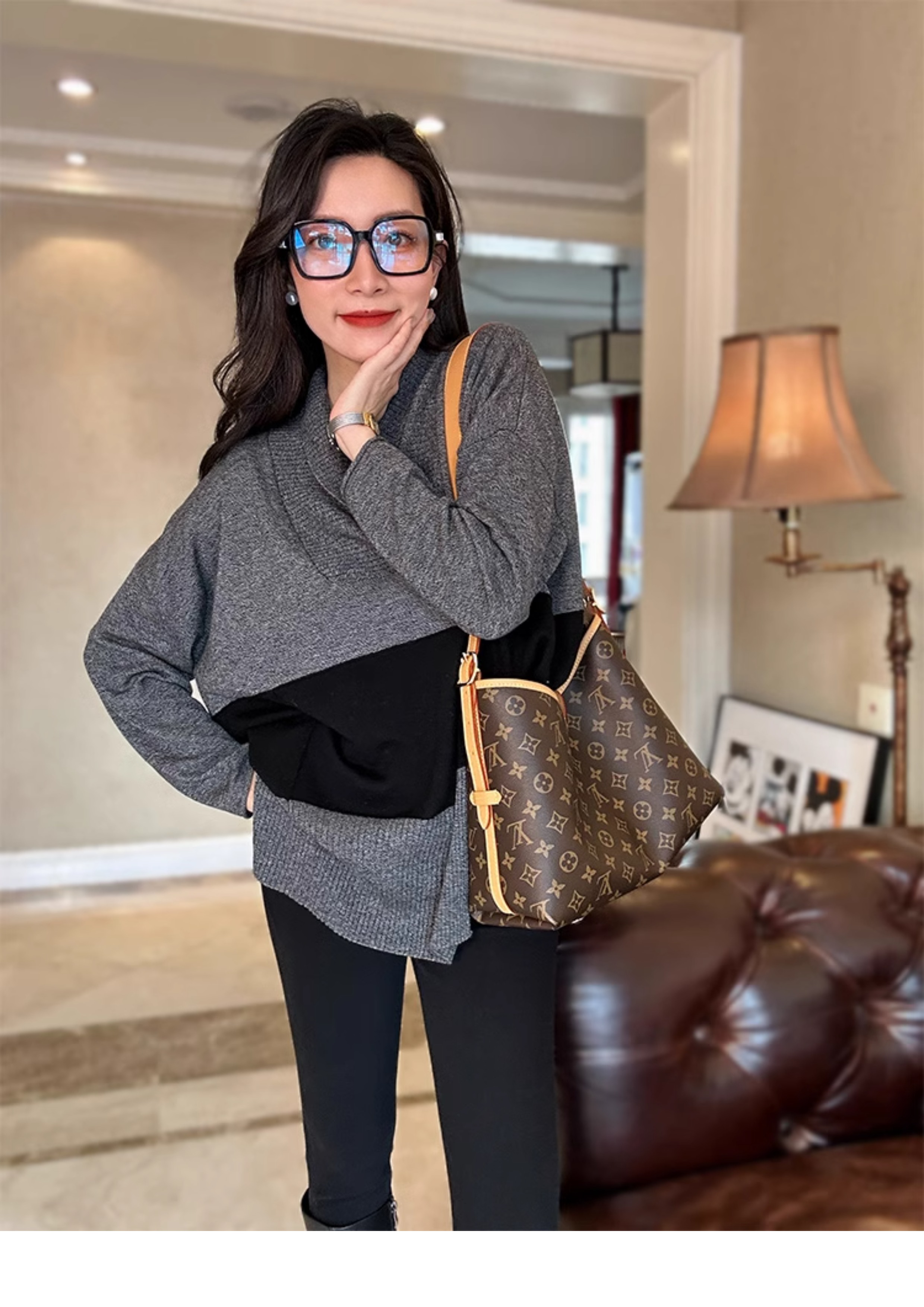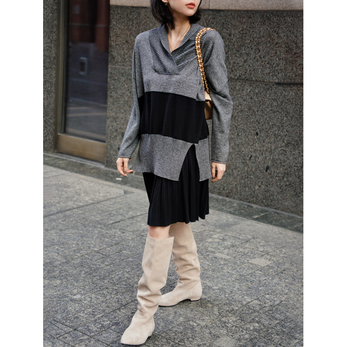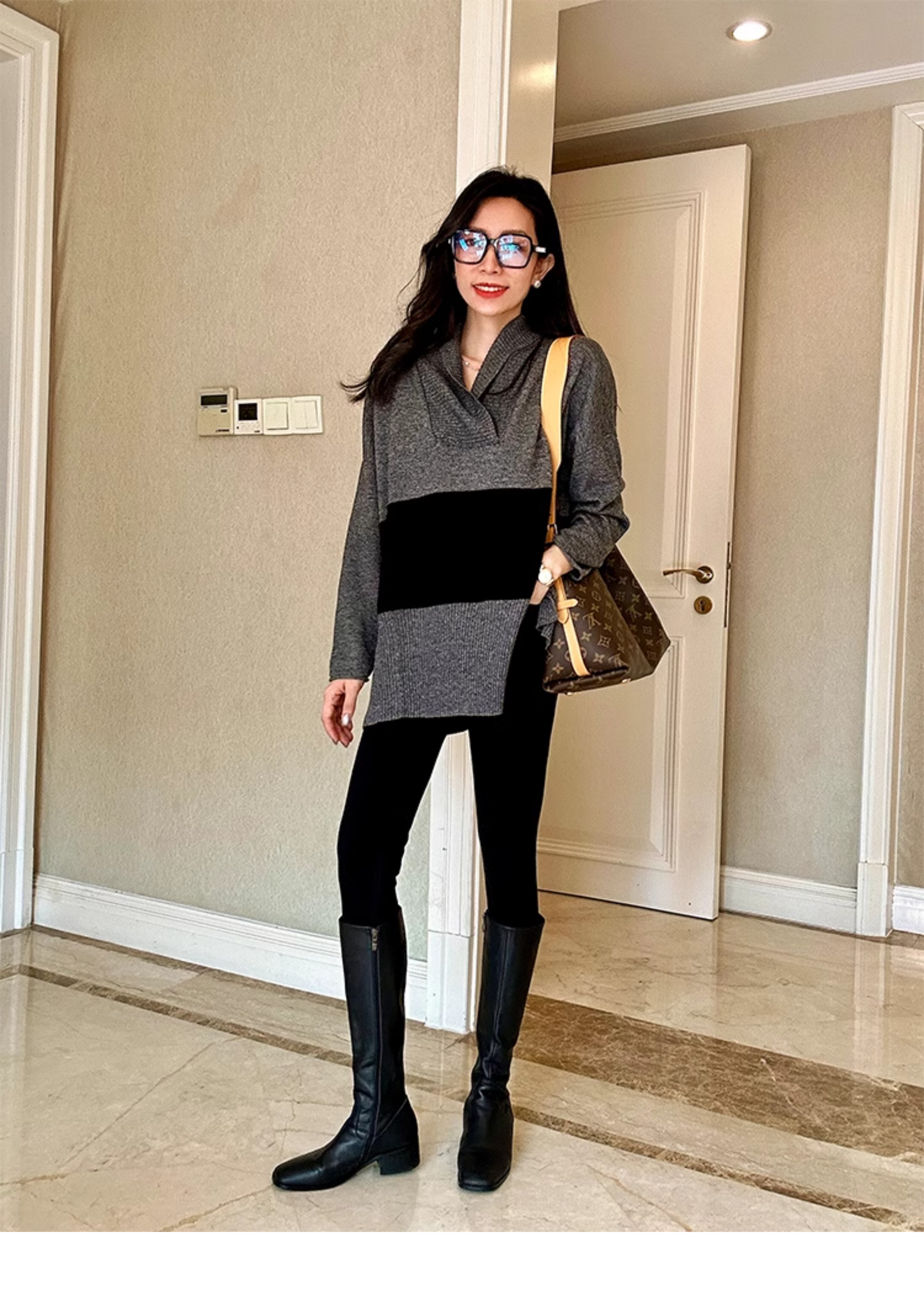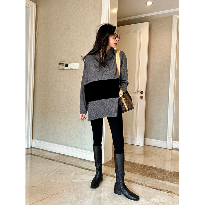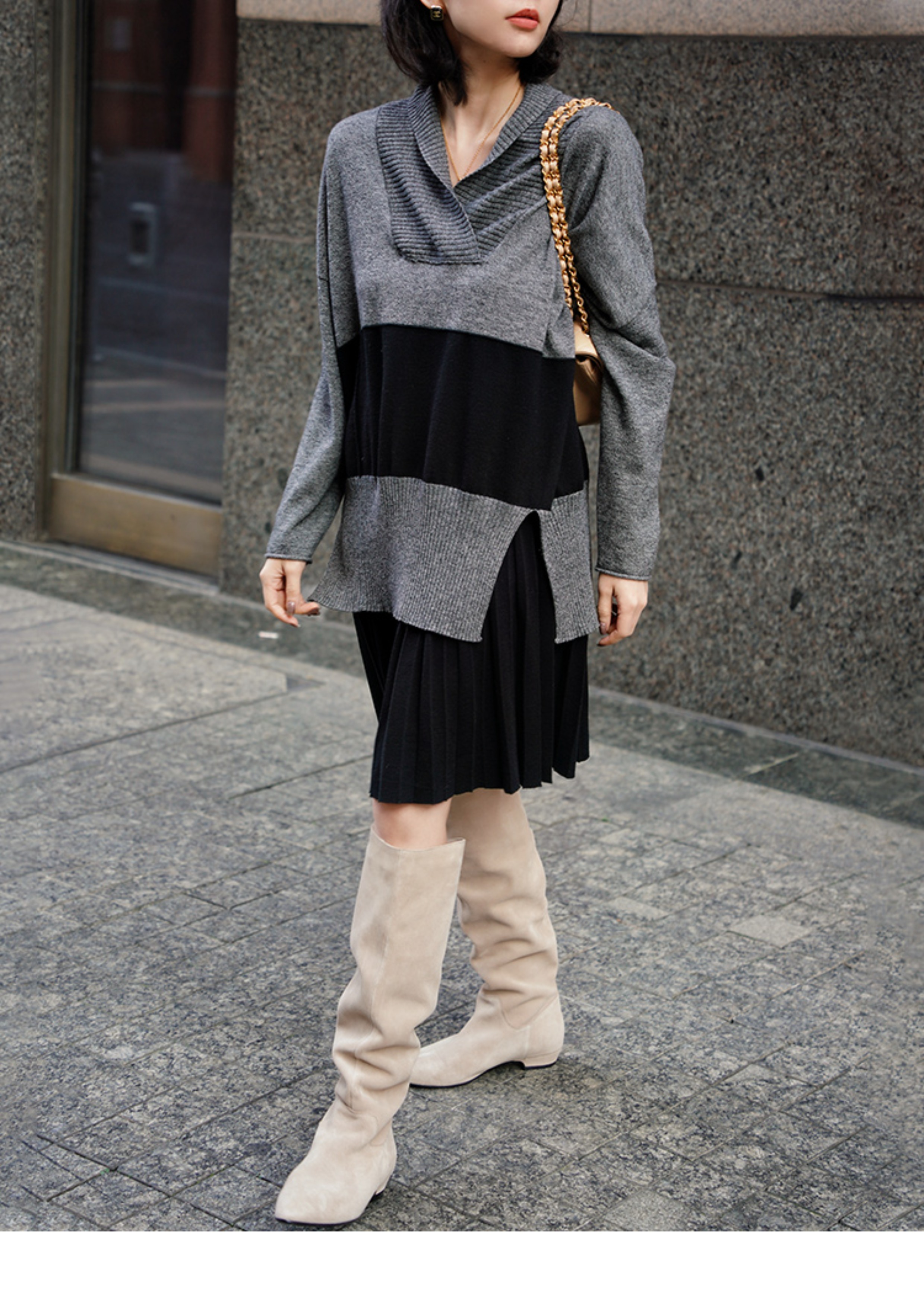 -ZINCCA- 訢卡自製米蘭拼接毛衣 慵懶風拼色上衣針織打底衫