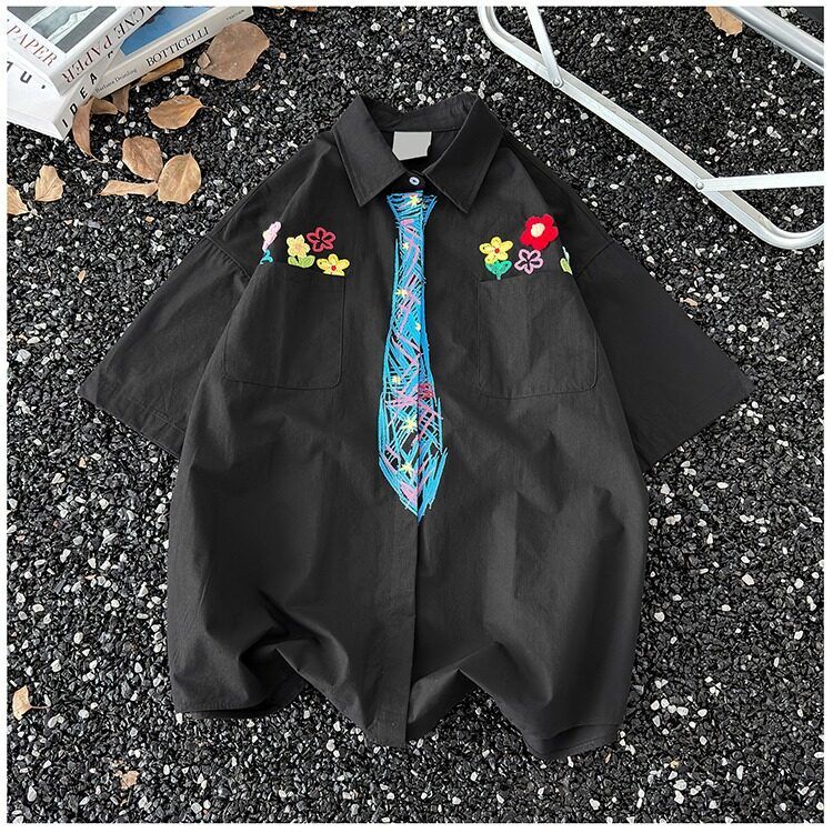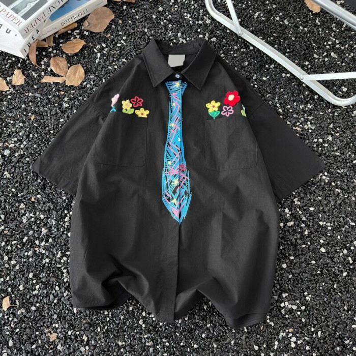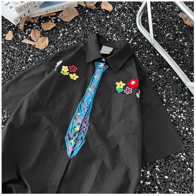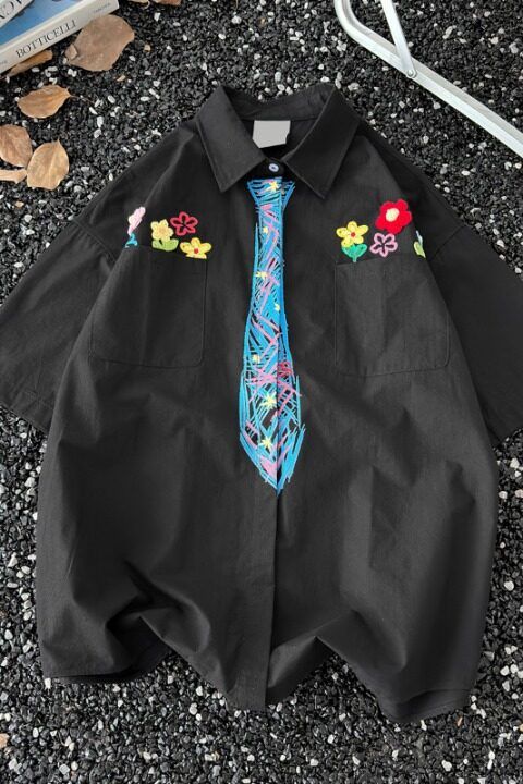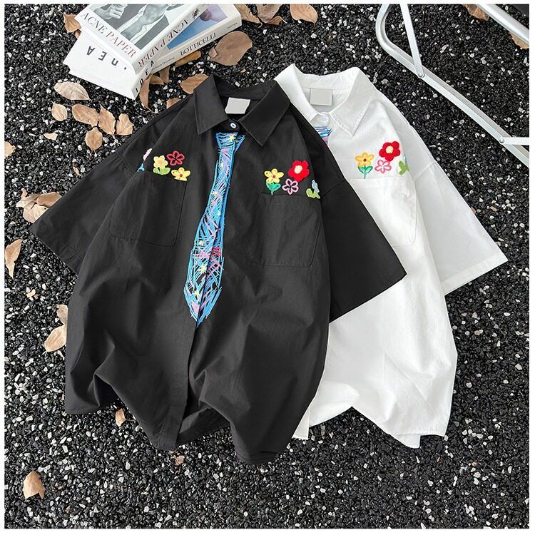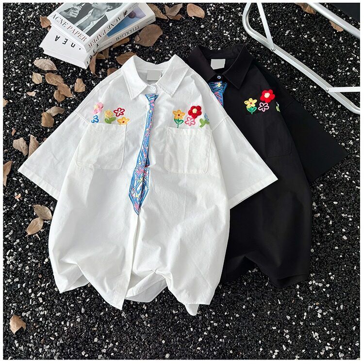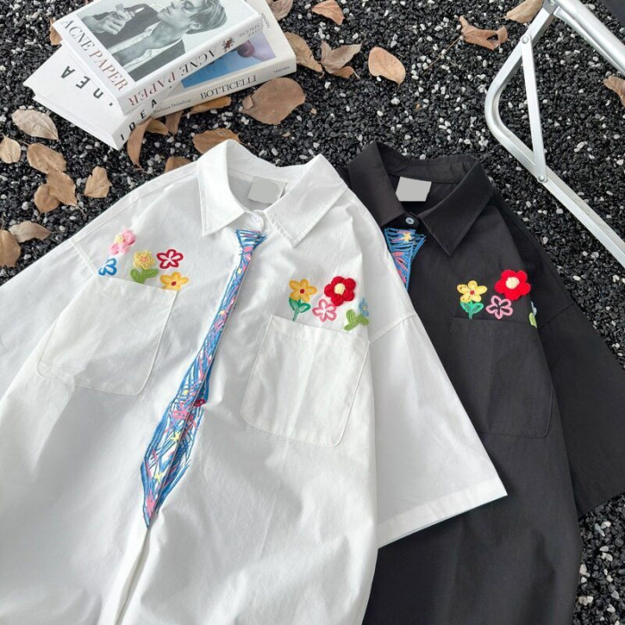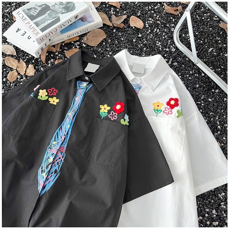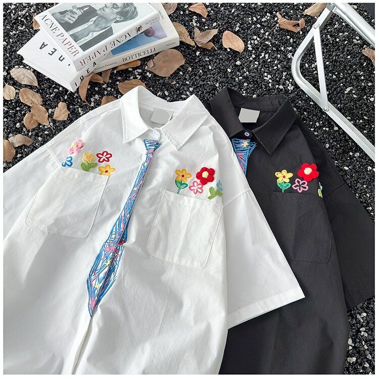 日系文藝小清新花朵刺綉全棉白襯衫女春秋韓範秋打底衫休閒上衣潮