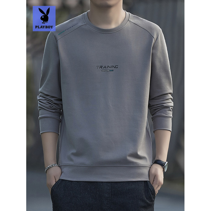 花花公子2025新款圓領衛衣男士寬松休閒長袖上衣服潮流純棉打底衫