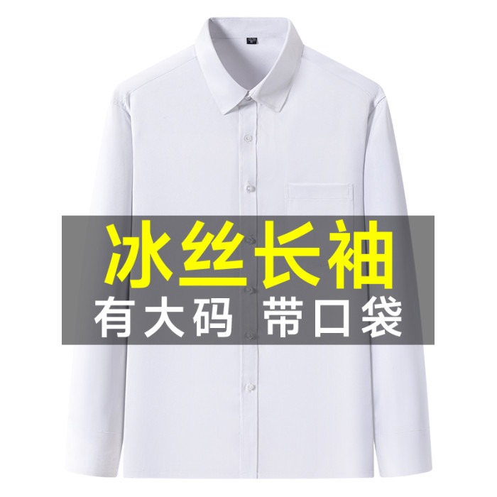 優鯊純色長袖襯衫男士夏季新款商務休閒中青年高級免燙襯衣打底衫