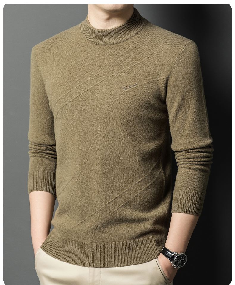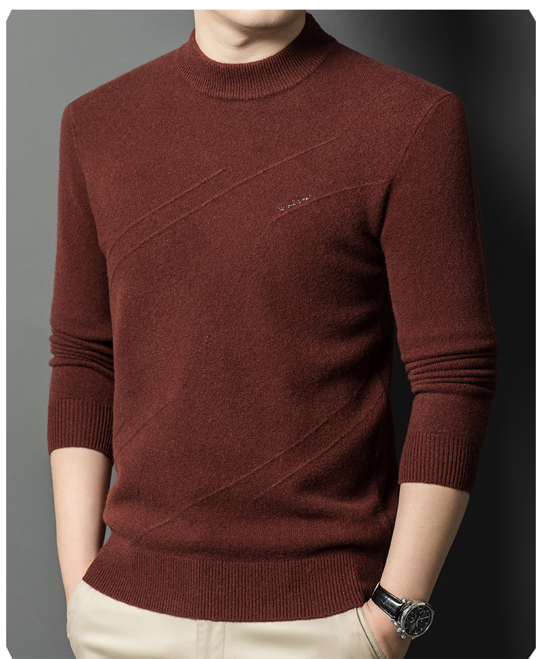 皮爾卡丹冬季男裝長袖純羊毛針織衫半高領線衣套頭加厚中年打底衫