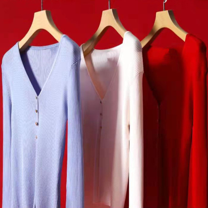 卓ya家秋冬上衣氣質針織衫新款女裝V領毛衣打底衫女套頭減齡