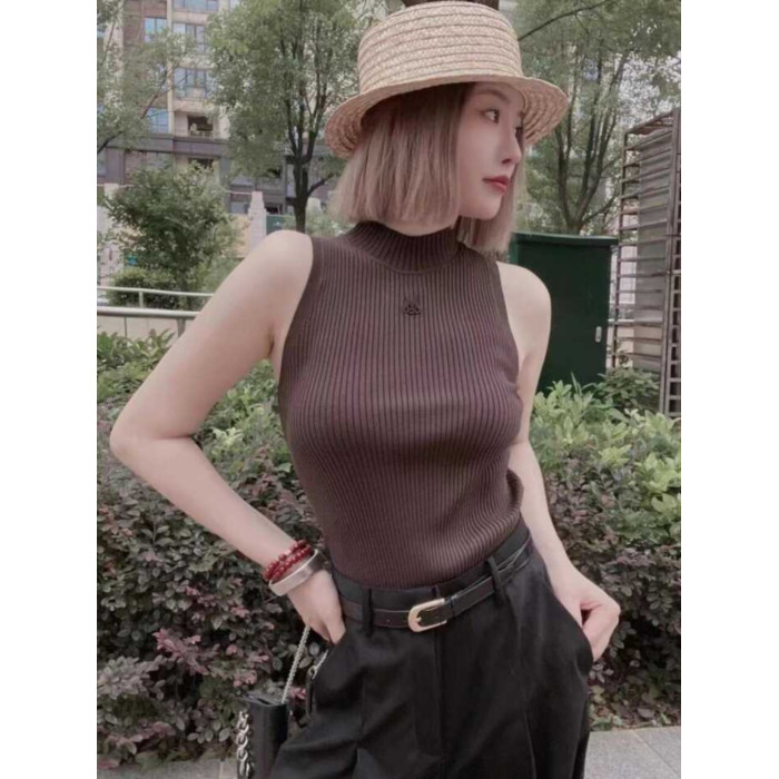 高級2024女秋季新款彈性高領無袖背心女針織打底衫X-MBD3SWT050-Y
