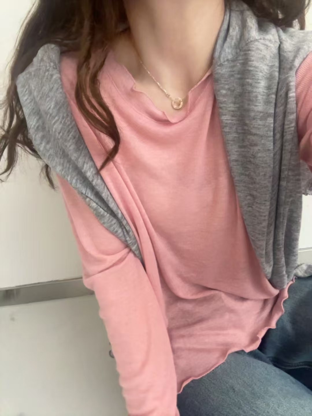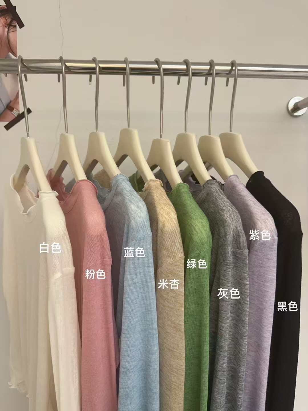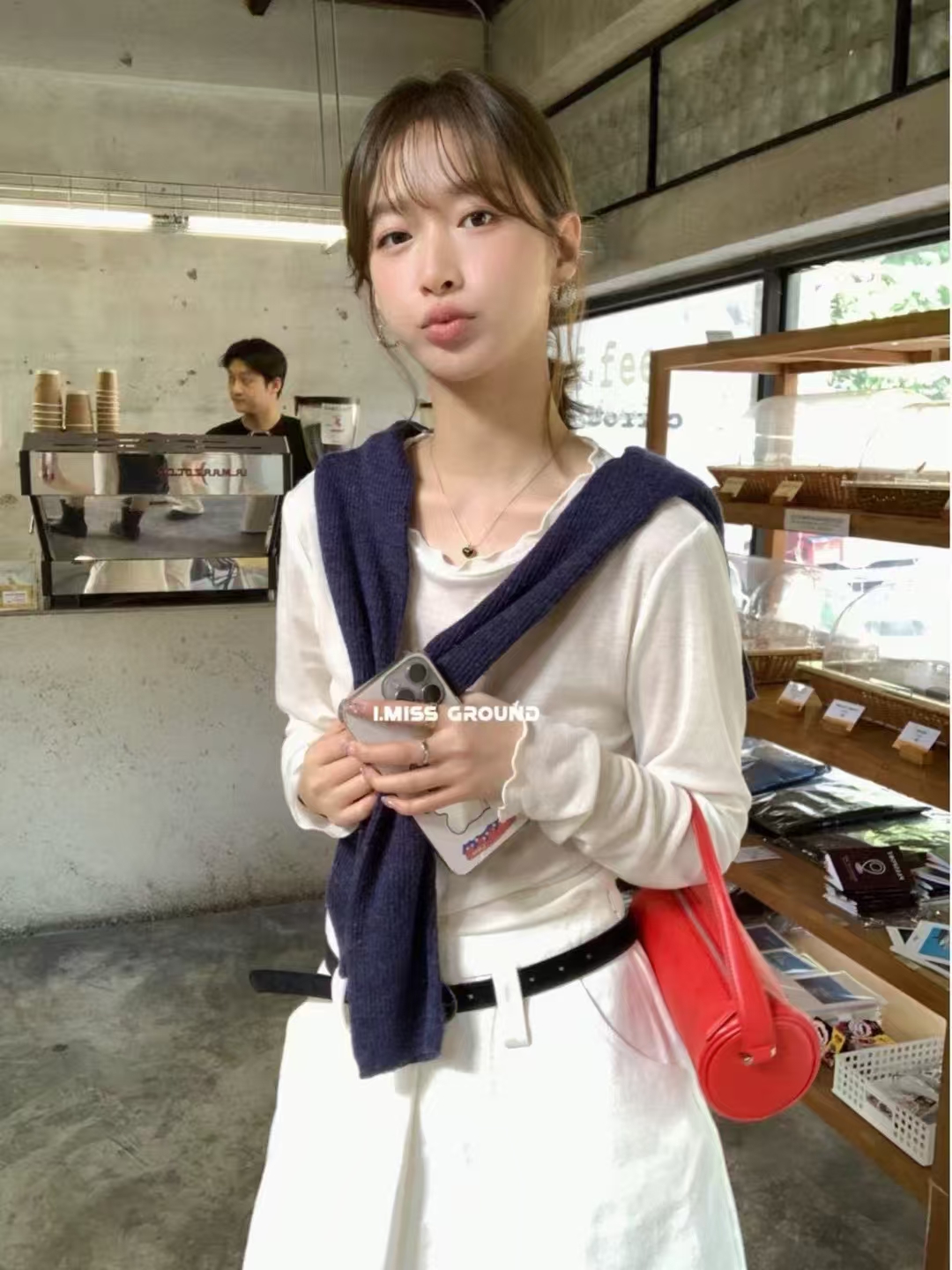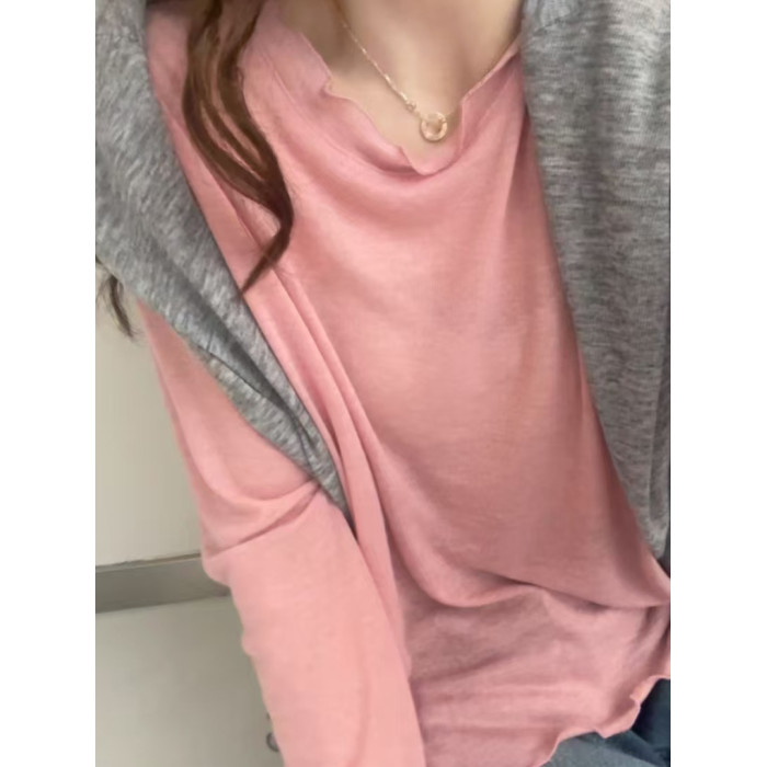 2025秋季韓版百搭木耳邊圓領長袖水溶羊毛打底衫女顯瘦內搭上衣