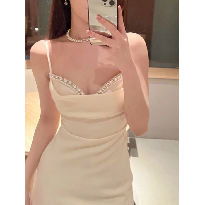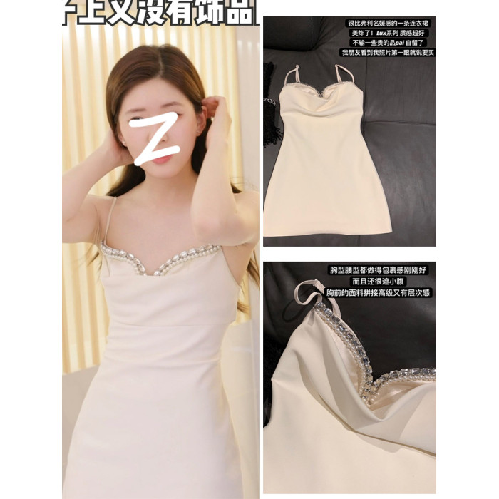 趙露思同款高級感白色吊帶連衣裙女party小禮服法式氣質性感裙子