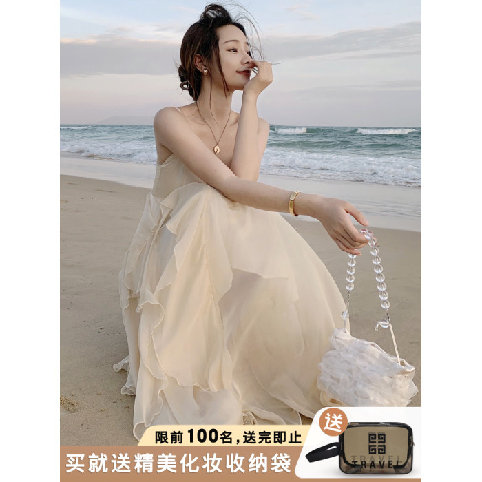沙灘裙女三亞絕美小裙大理洱海裙子海邊拍照衣服超仙度假風連衣裙