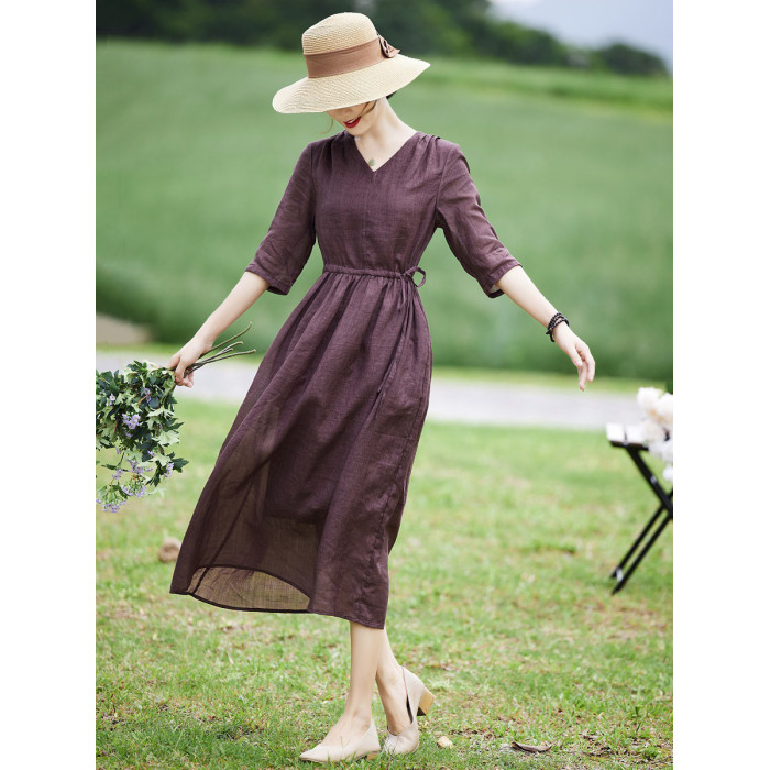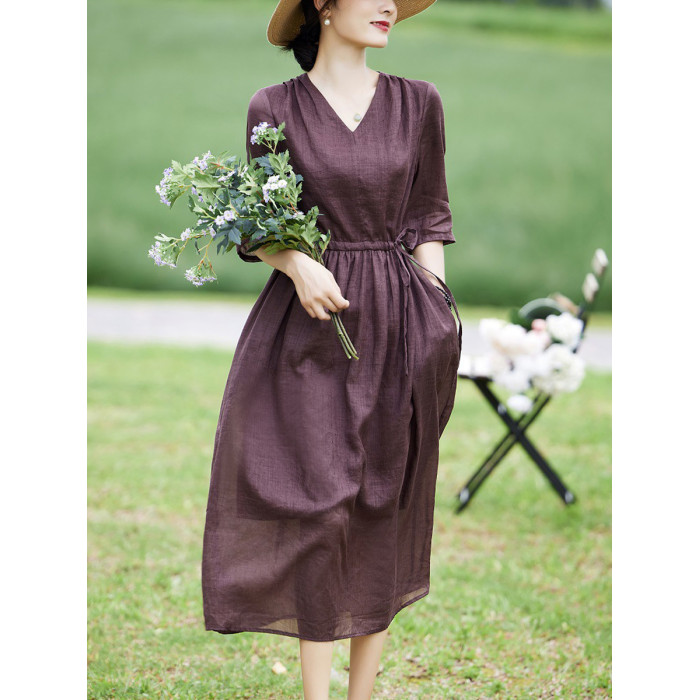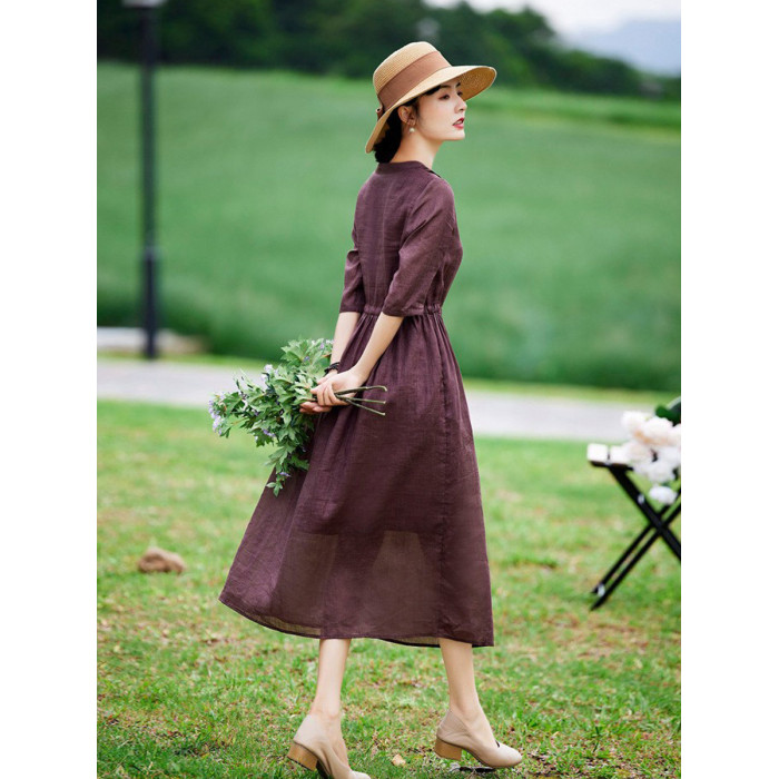 高級精緻苧麻連衣裙2025新款春夏中年媽媽氣質高貴洋氣遮肚子裙子