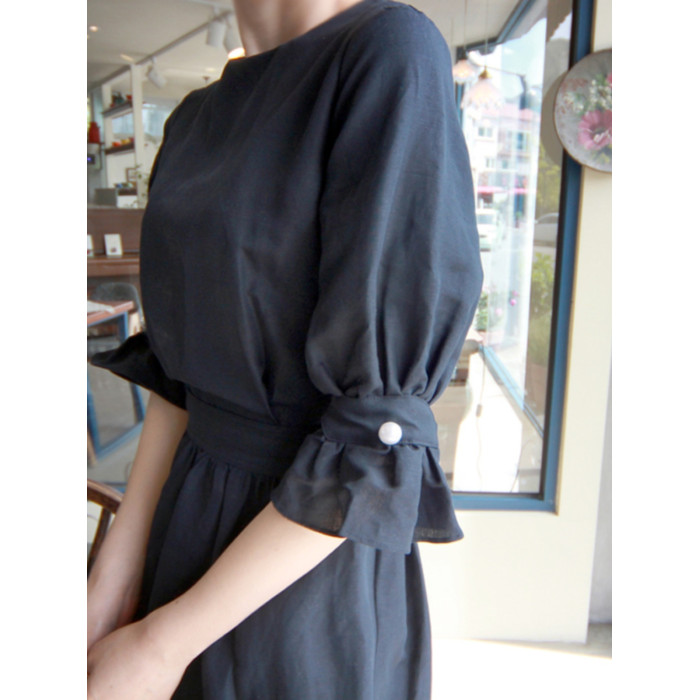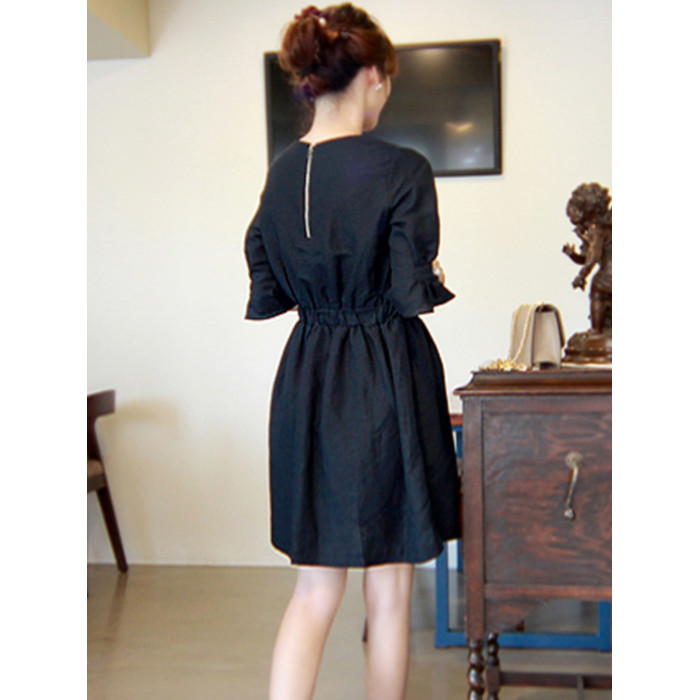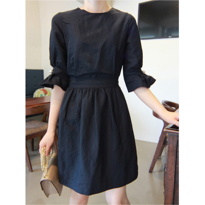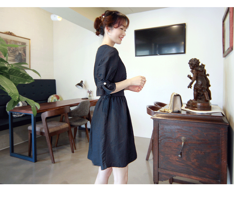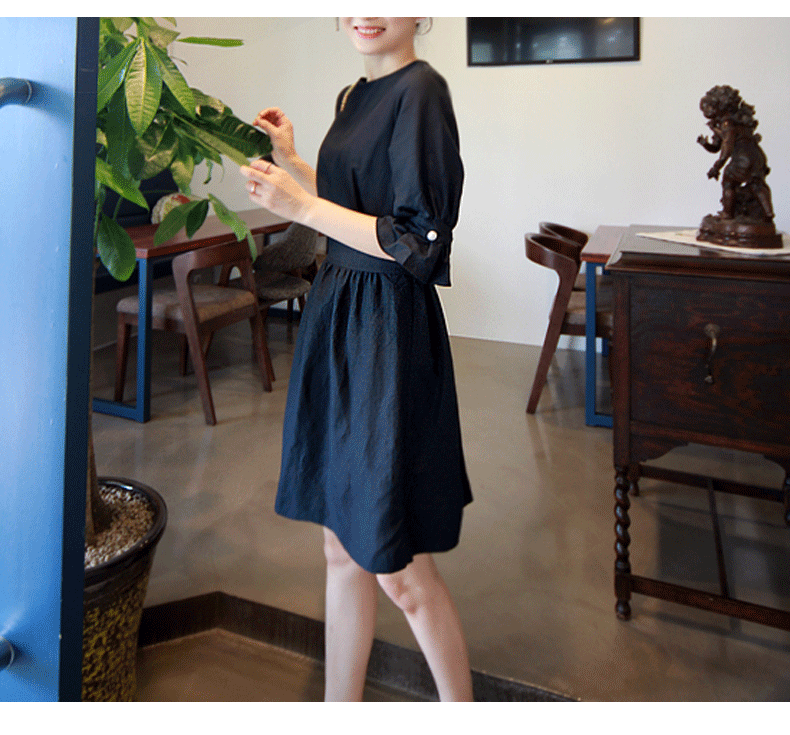 亞麻連衣裙女收腰顯瘦2025年夏季新款韓版氣質寬松純色中長款裙子