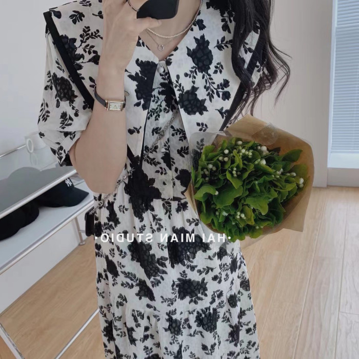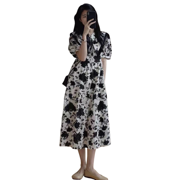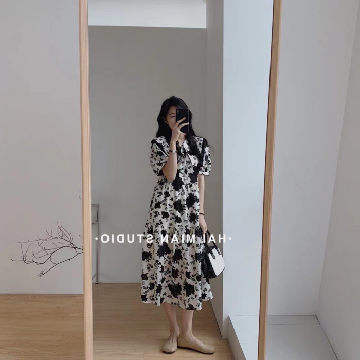 歐洲站2025新款桔梗法式裙子長裙子高級感收腰顯瘦碎花連衣裙女夏