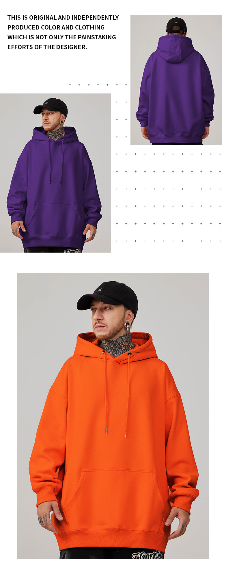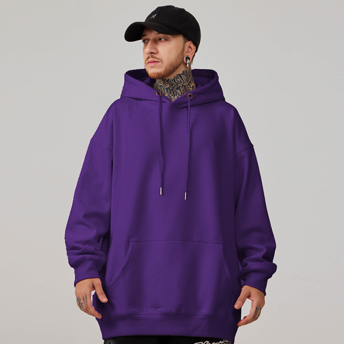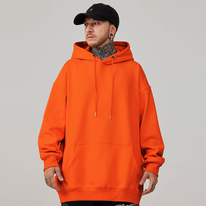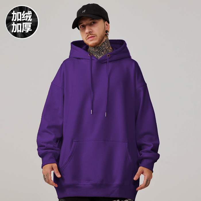2025帽衫簡約純色寬松加絨加肥加大連帽衛衣男大碼男裝打底衫春秋