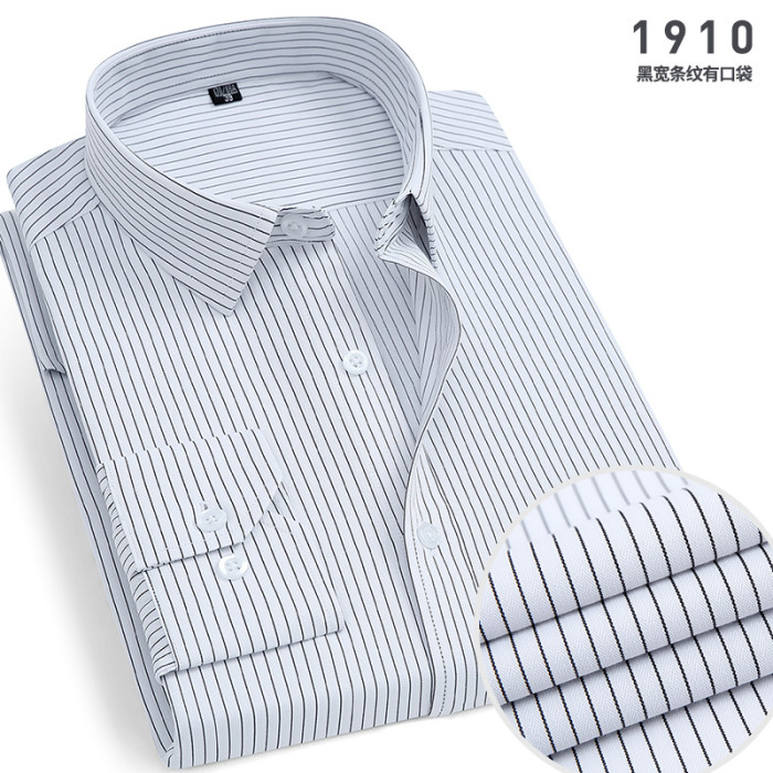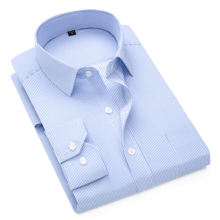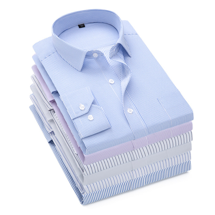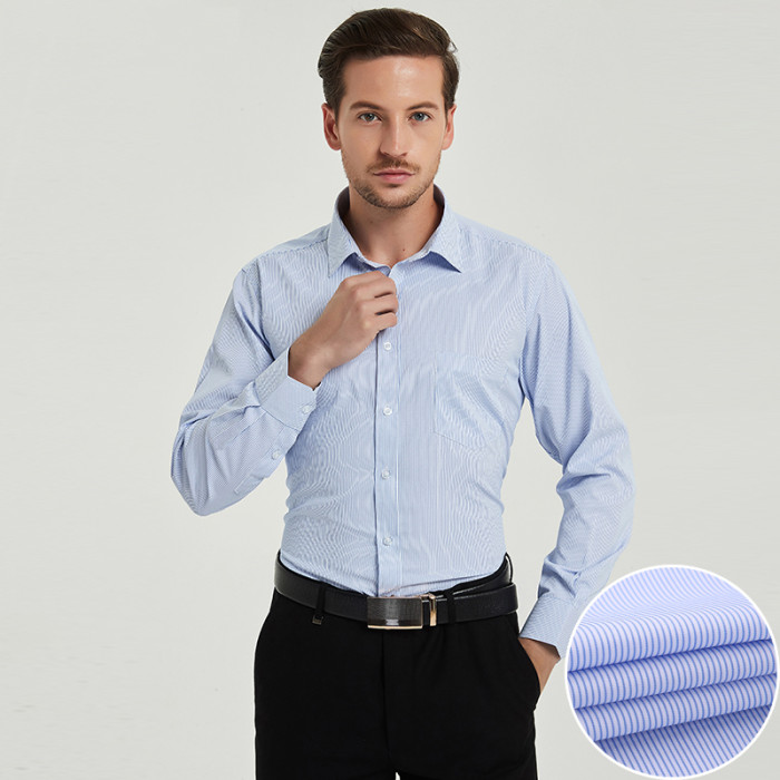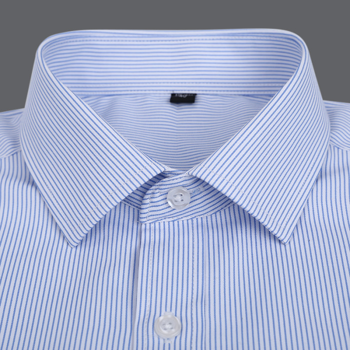 春季長袖襯衫男商務職業工裝藍色條紋男襯衣大碼寸衫工作服打底衫