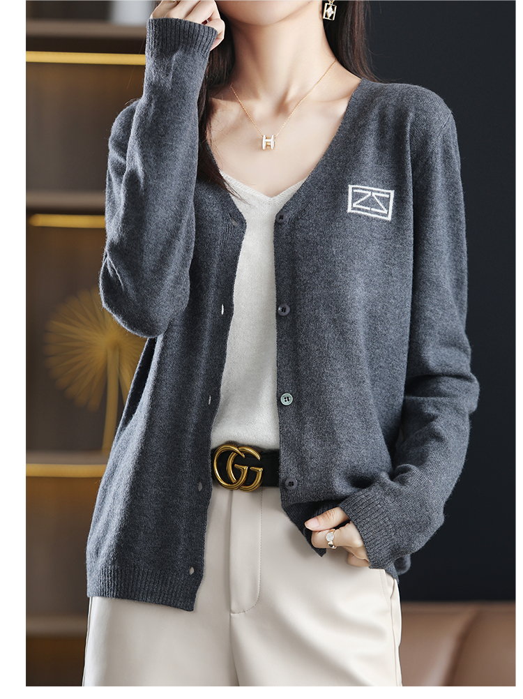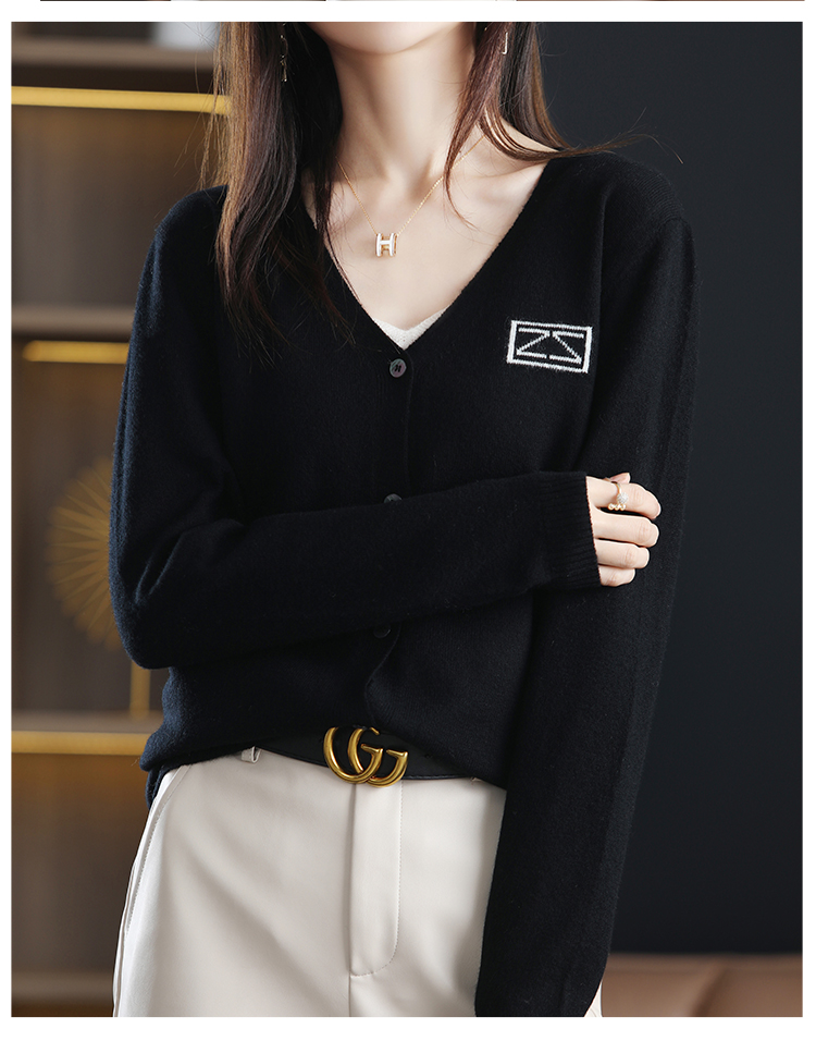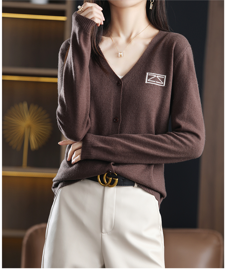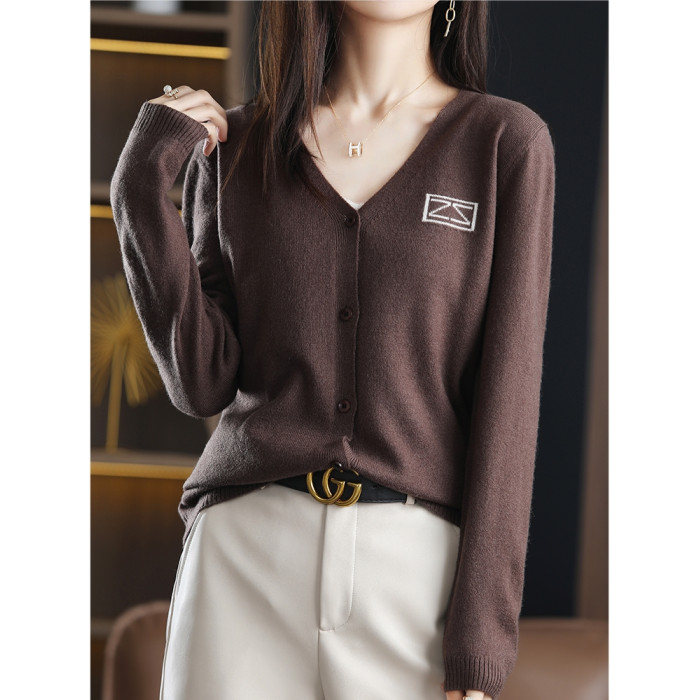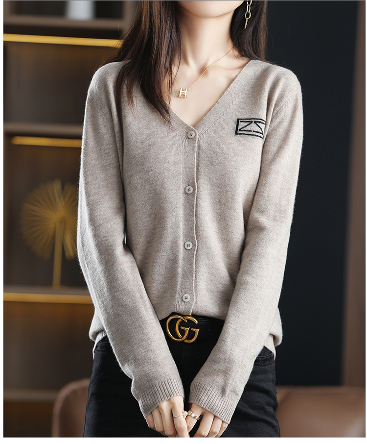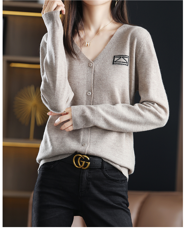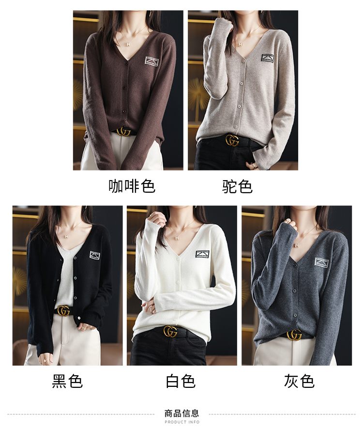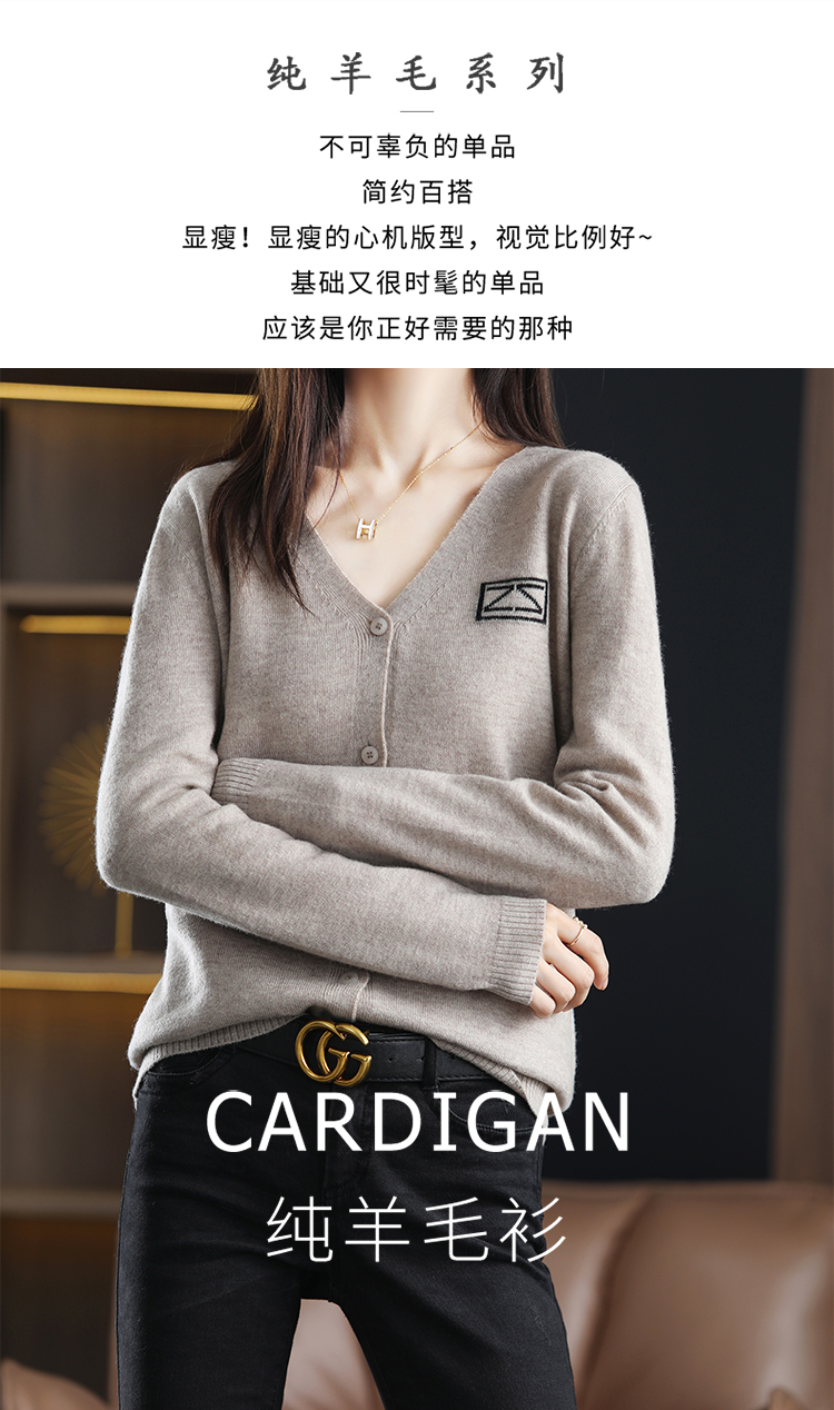 2025春秋新款開衫女寬松薄款v領羊毛針織打底衫羊絨外套短款外搭