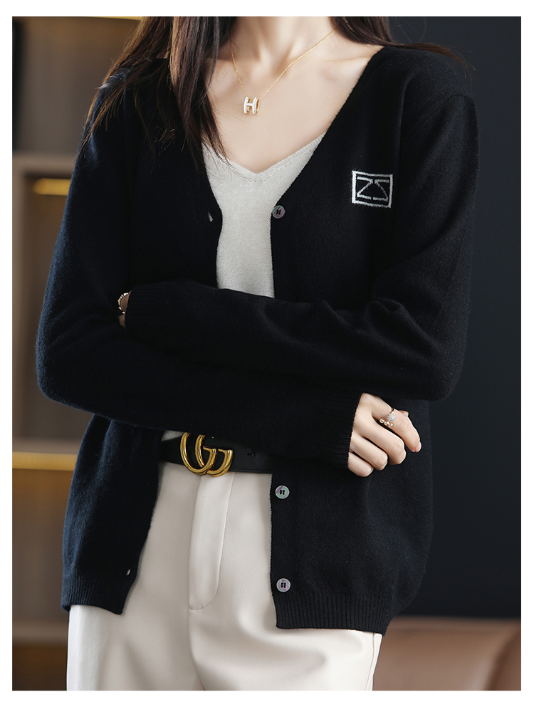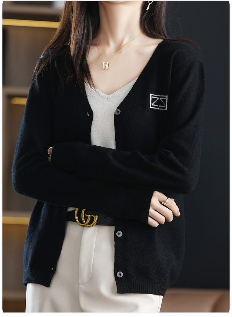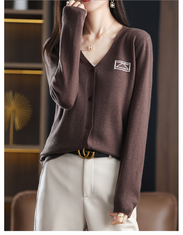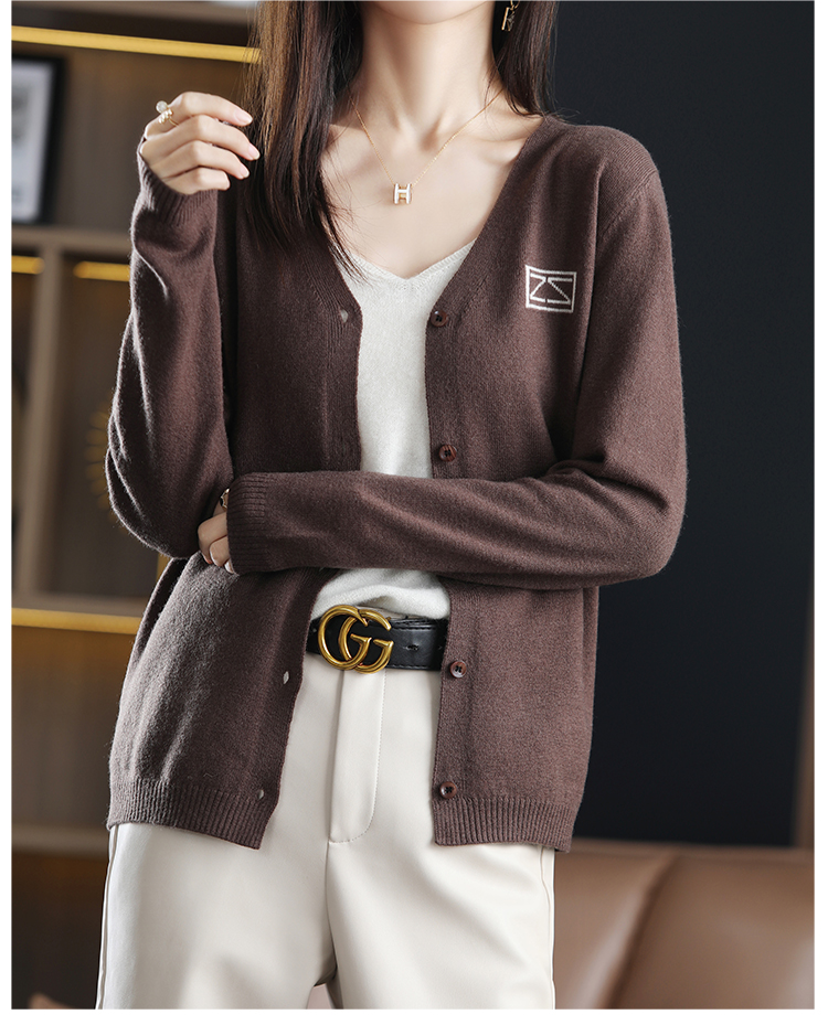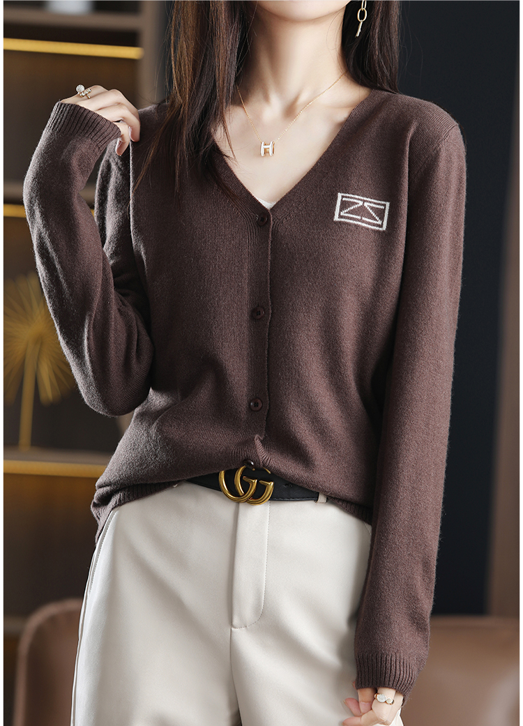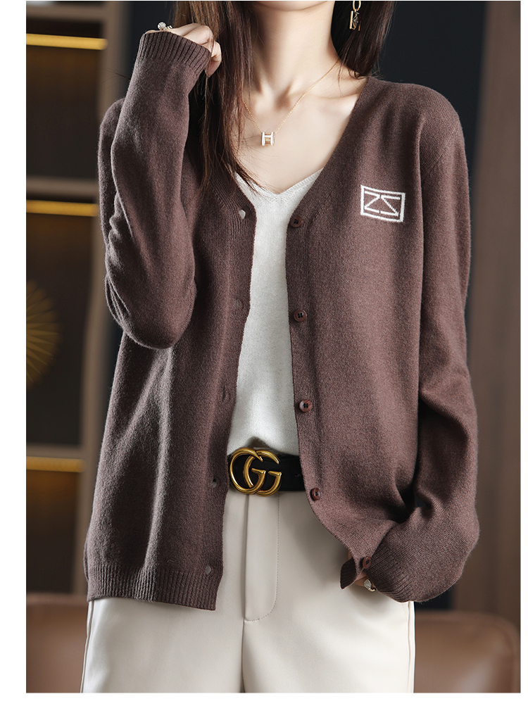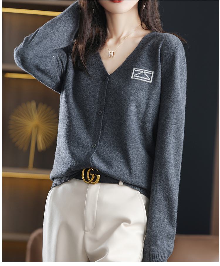 2025春秋新款開衫女寬松薄款v領羊毛針織打底衫羊絨外套短款外搭