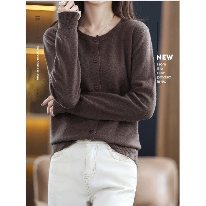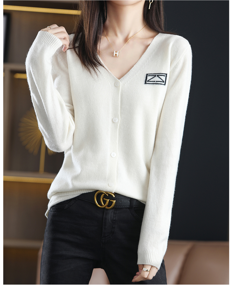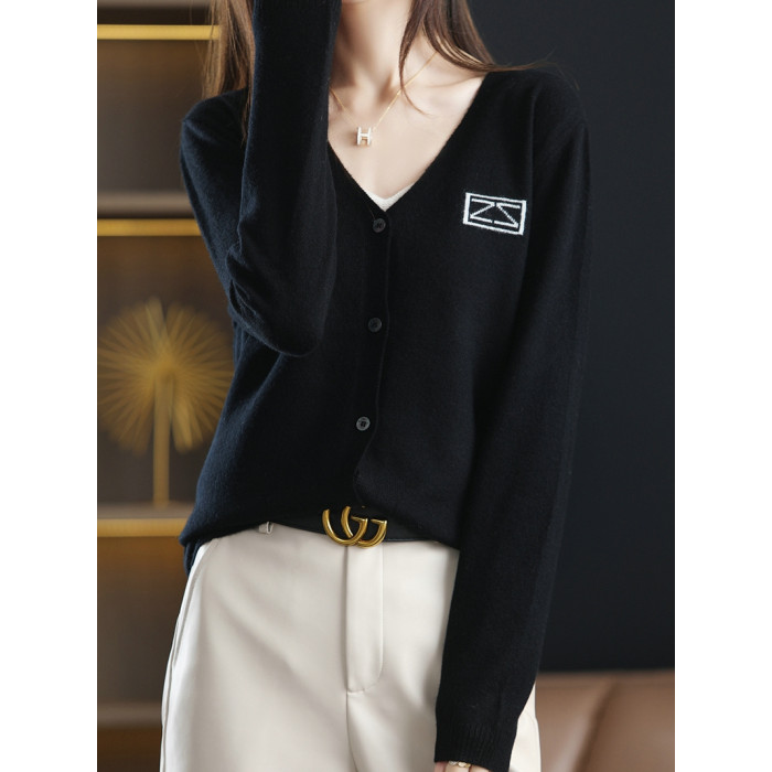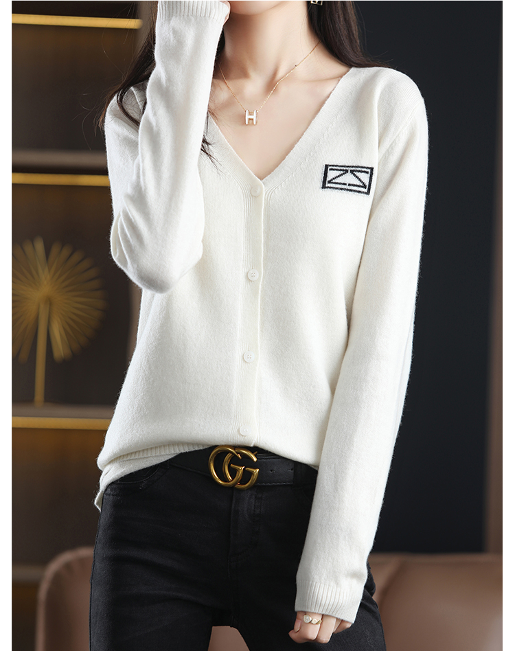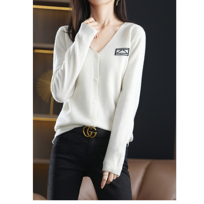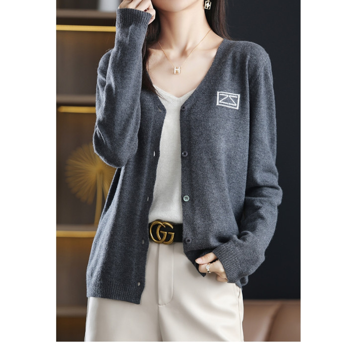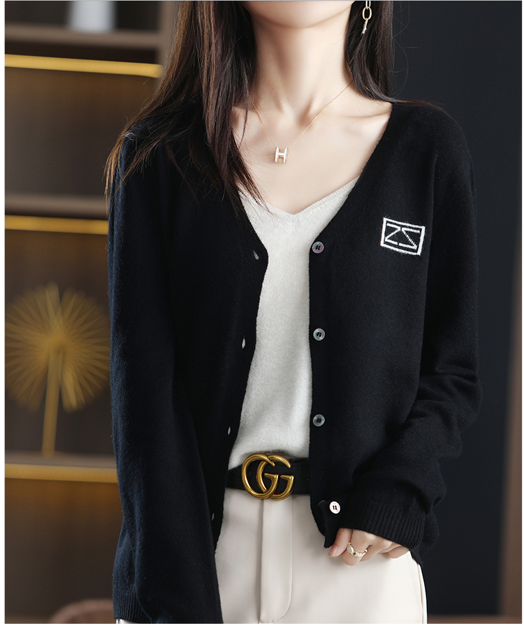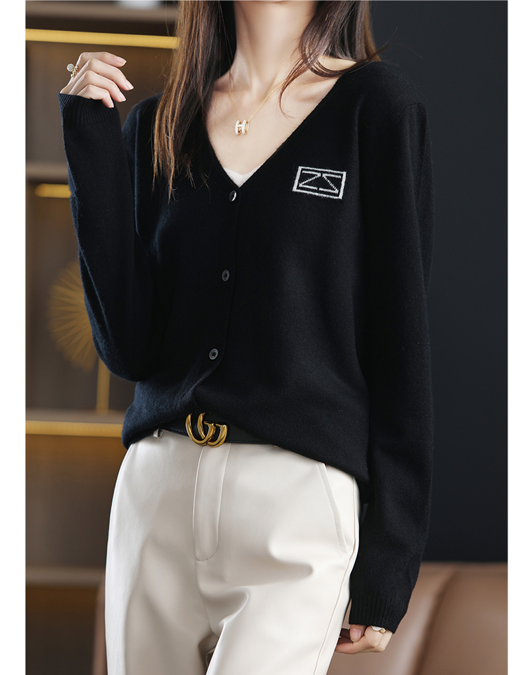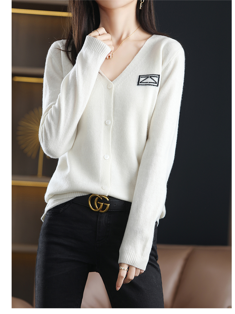 2025春秋新款開衫女寬松薄款v領羊毛針織打底衫羊絨外套短款外搭