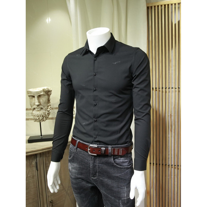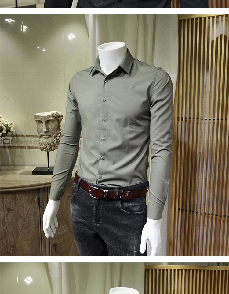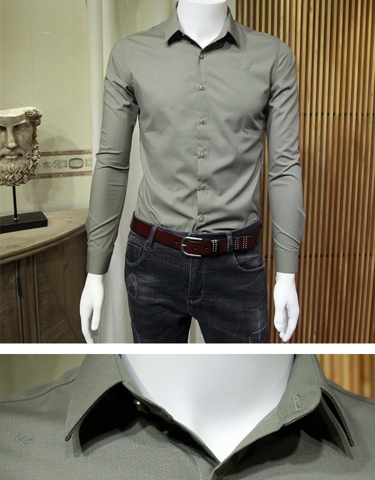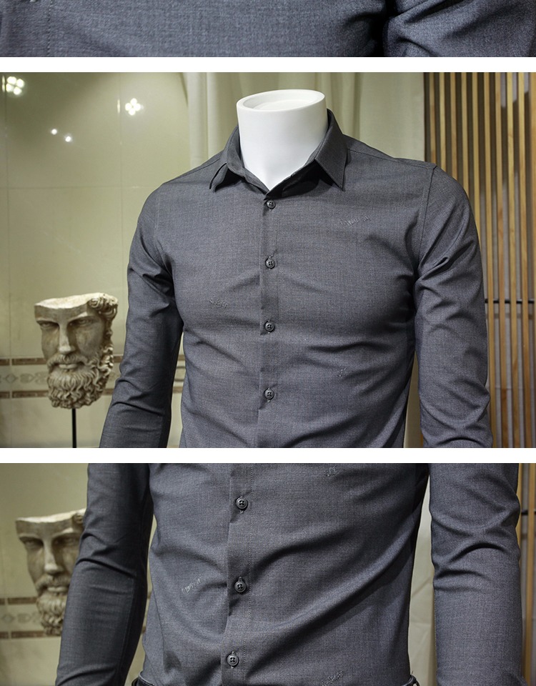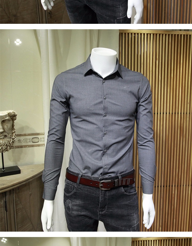 灰色韓版修身男襯衫長袖職業正裝襯衣寸衫商務休閒潮流帥氣打底衫