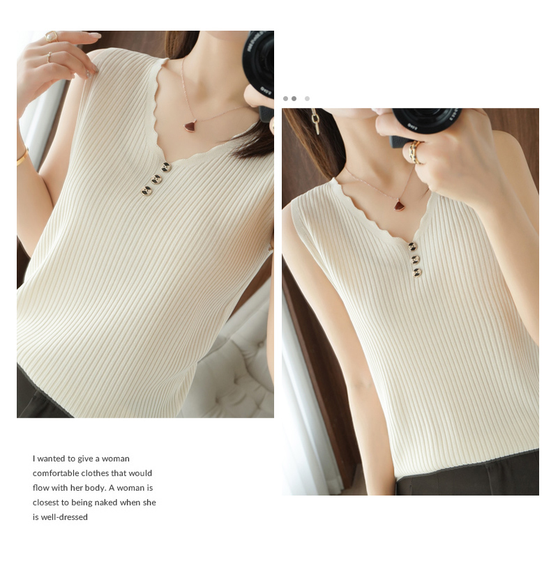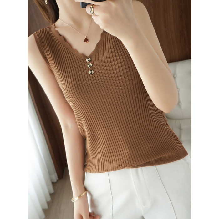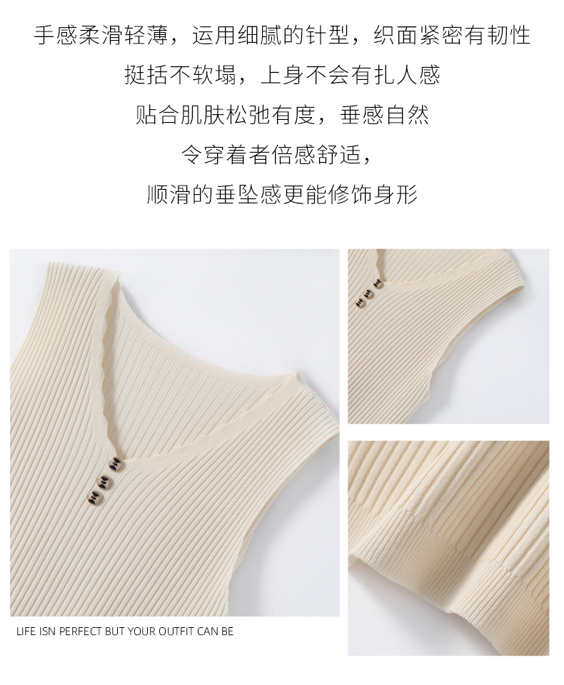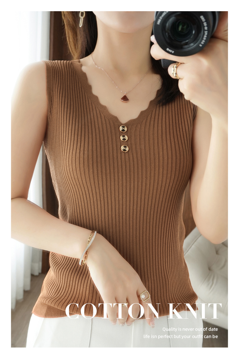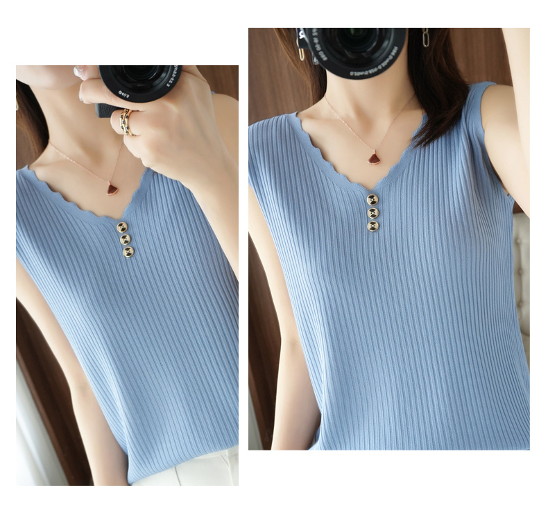 冰絲針織吊帶背心女外穿夏季薄款洋氣內搭V領無袖套頭打底衫上衣