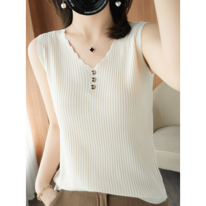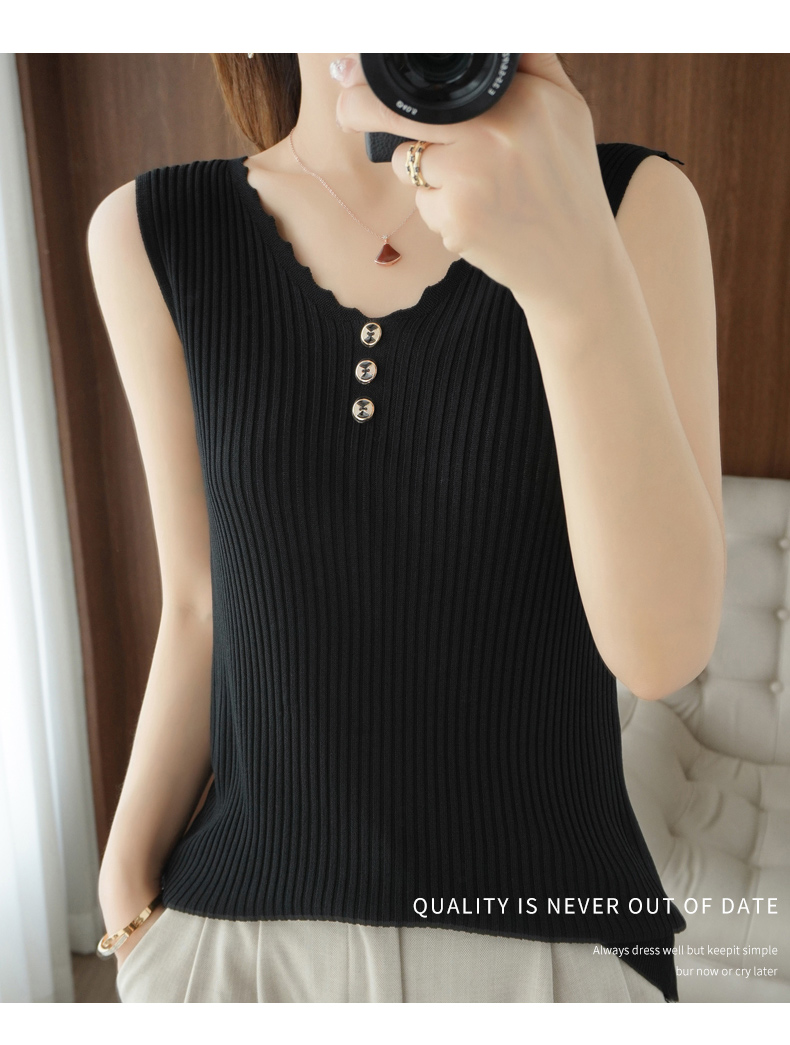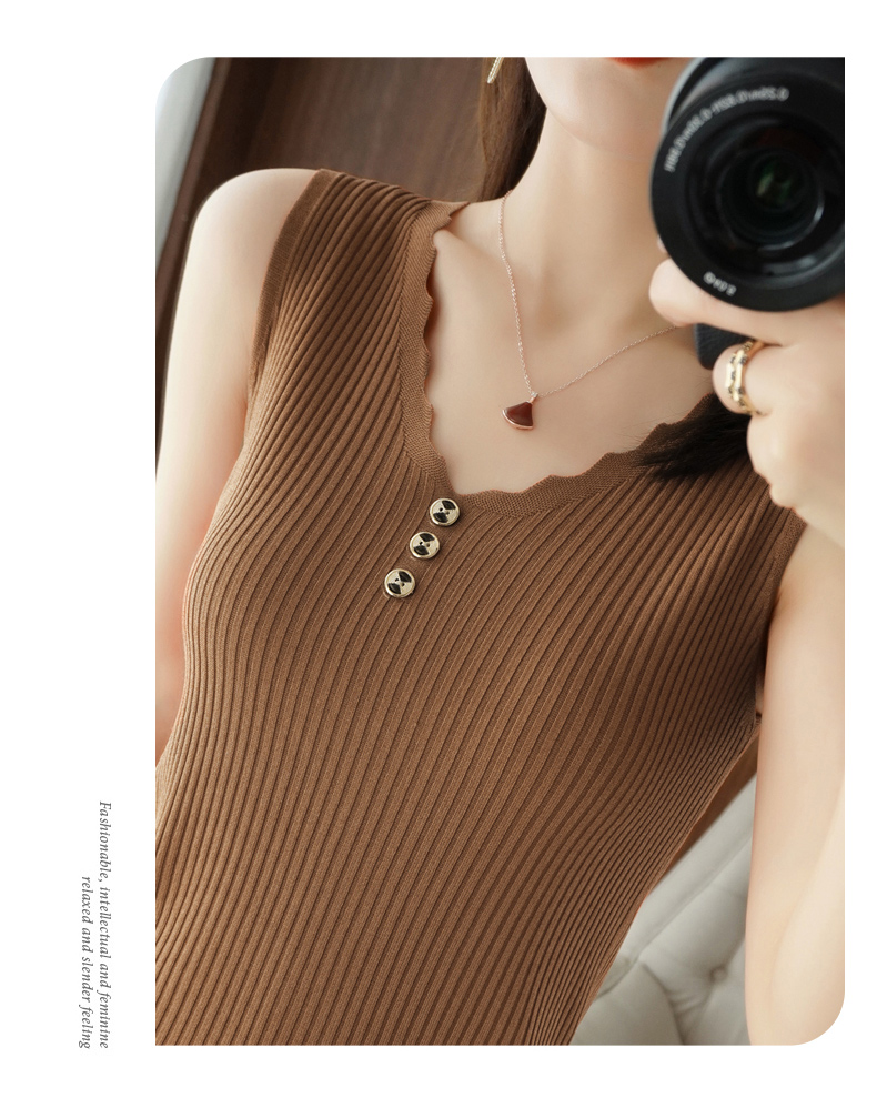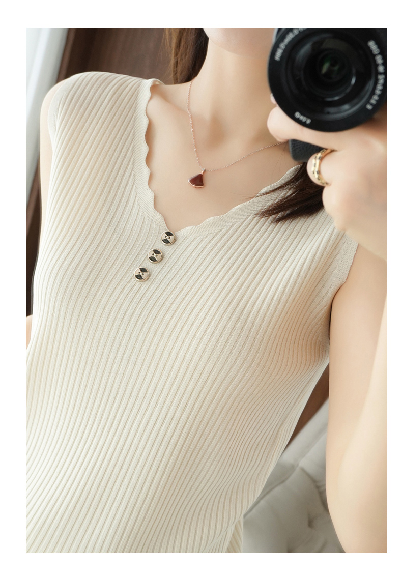 冰絲針織吊帶背心女外穿夏季薄款洋氣內搭V領無袖套頭打底衫上衣