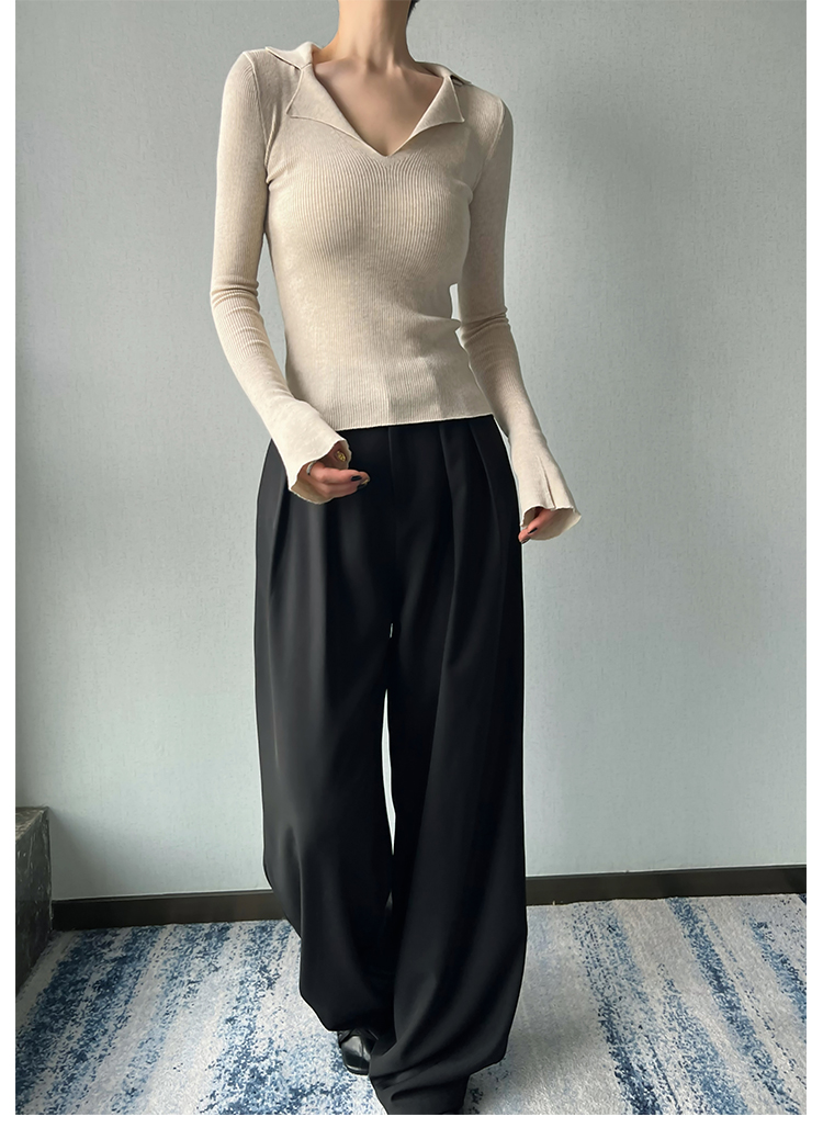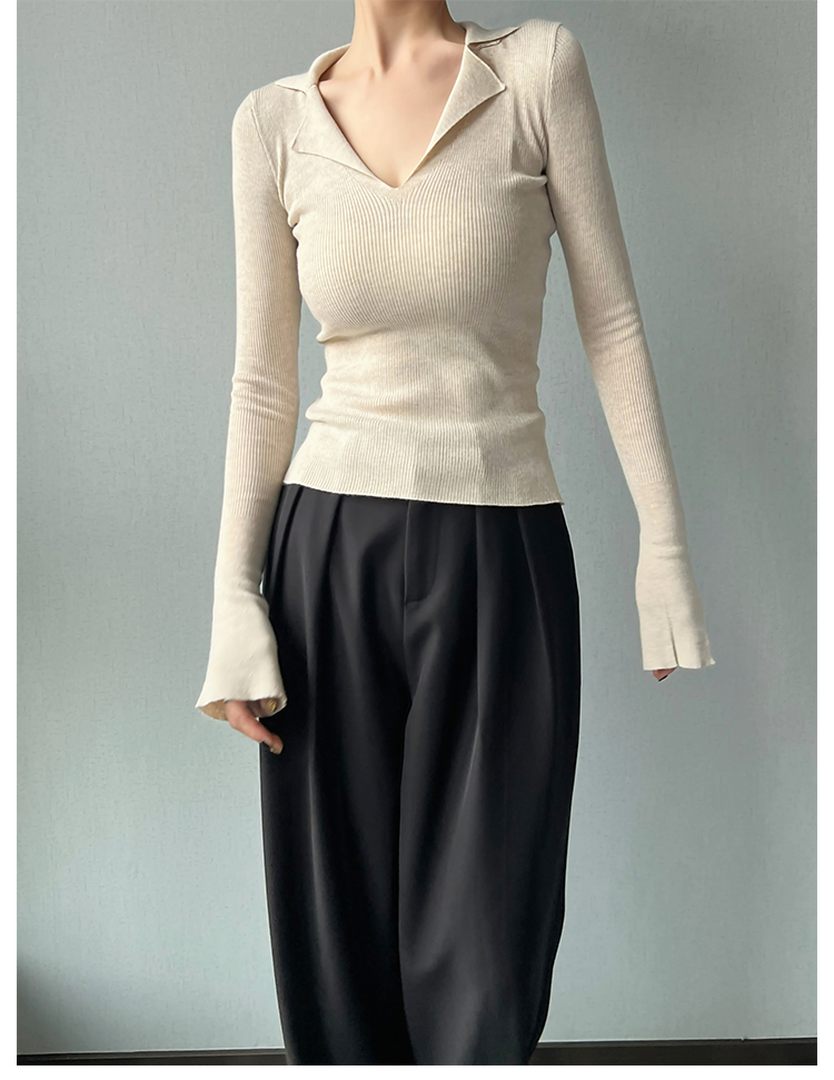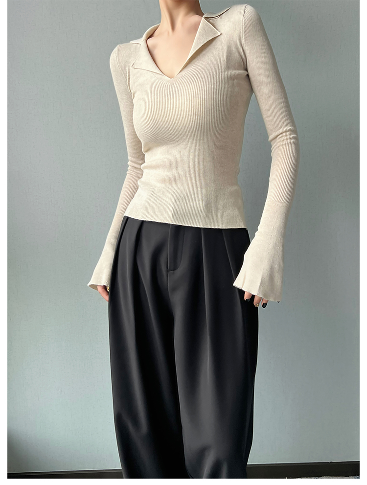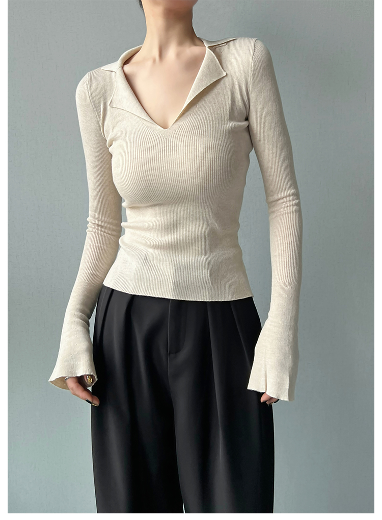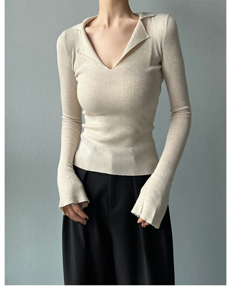AYINGJIA 法式大V領針織衫女春內搭打底衫設計感小衆修身顯瘦上衣