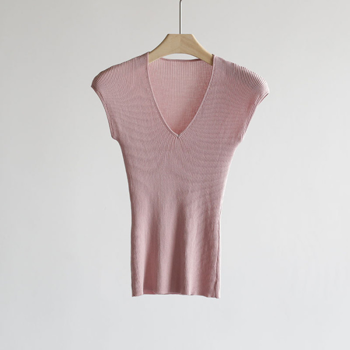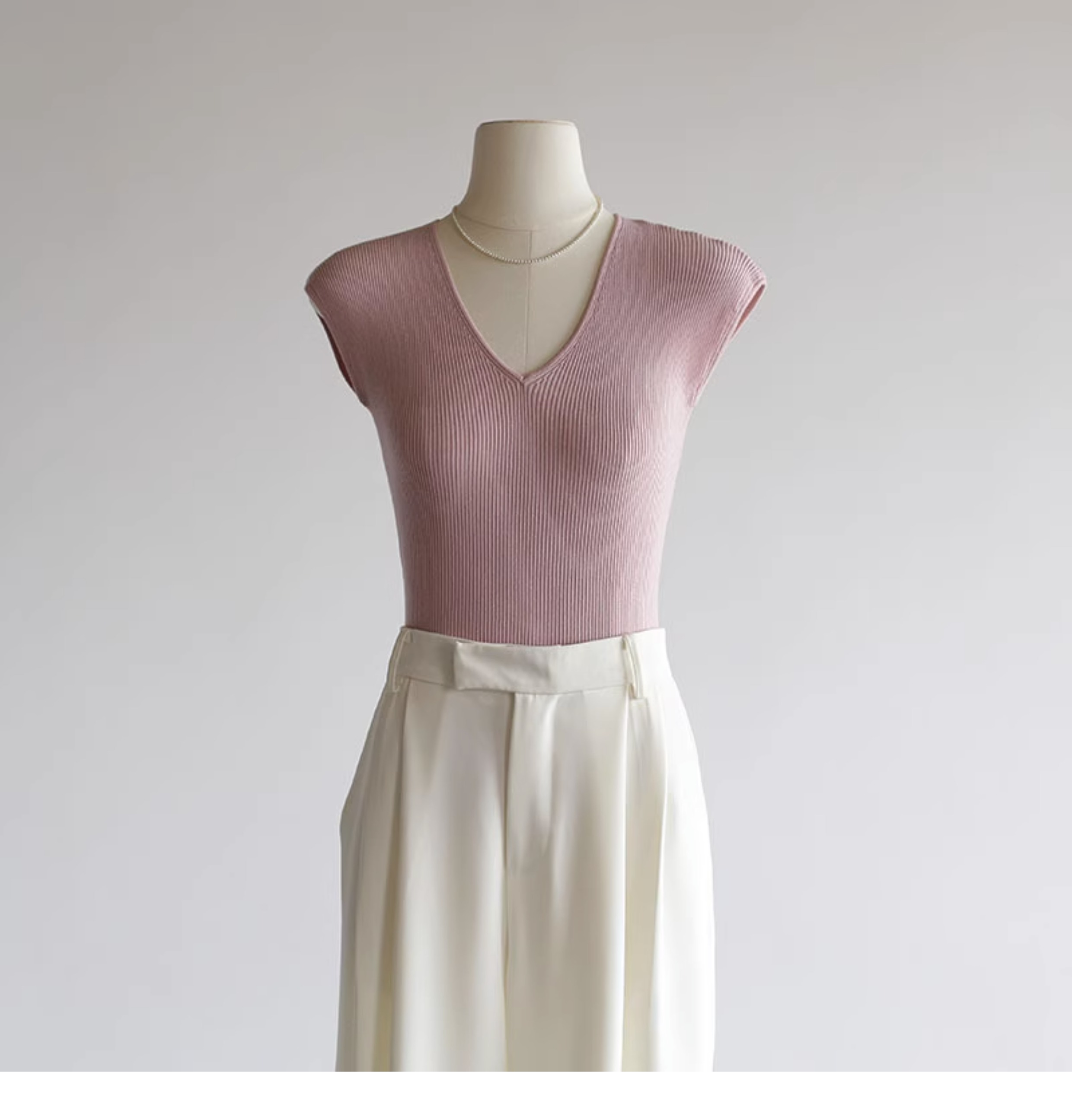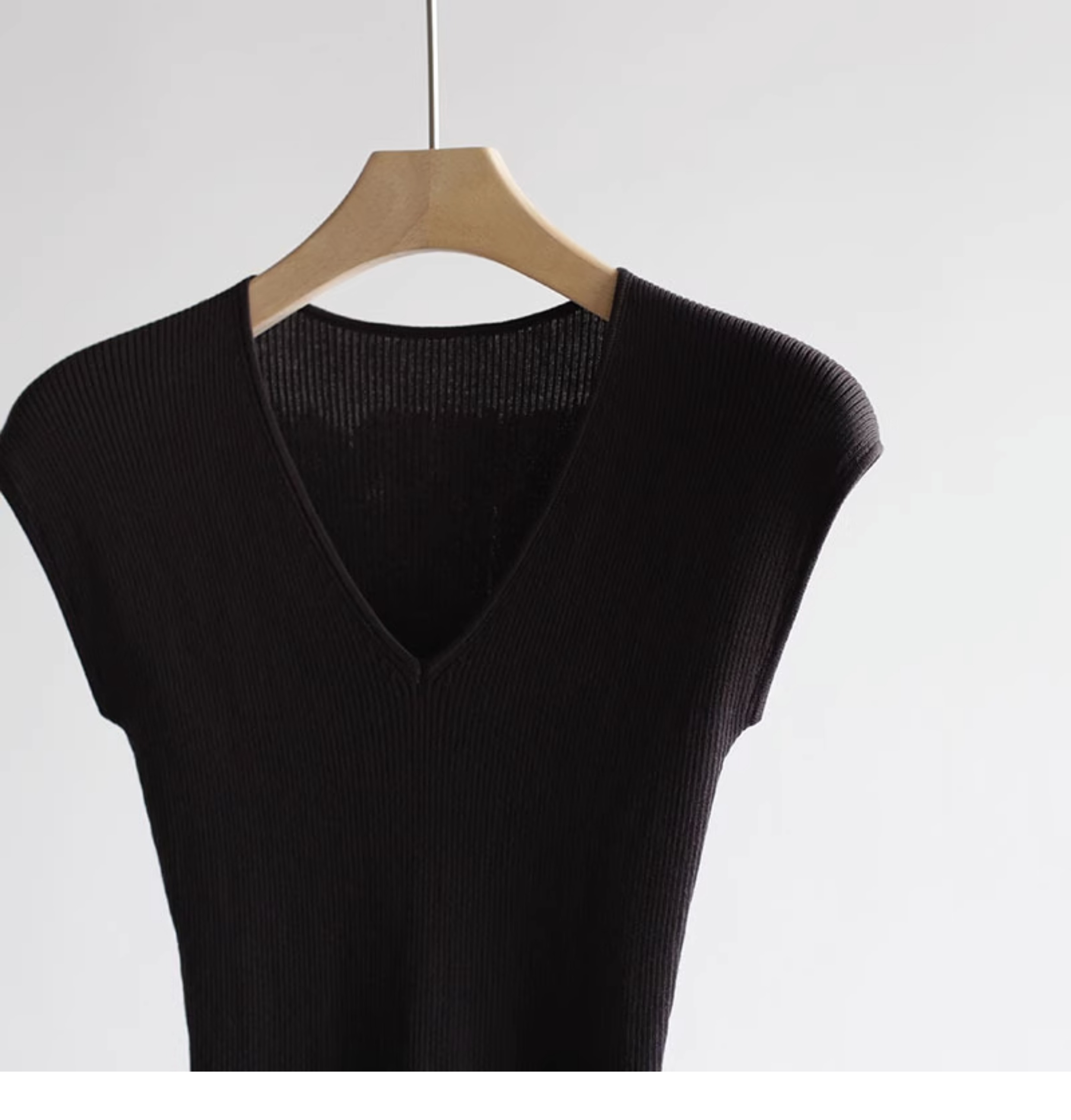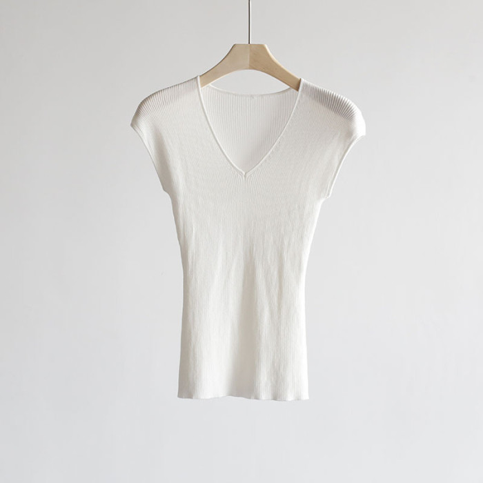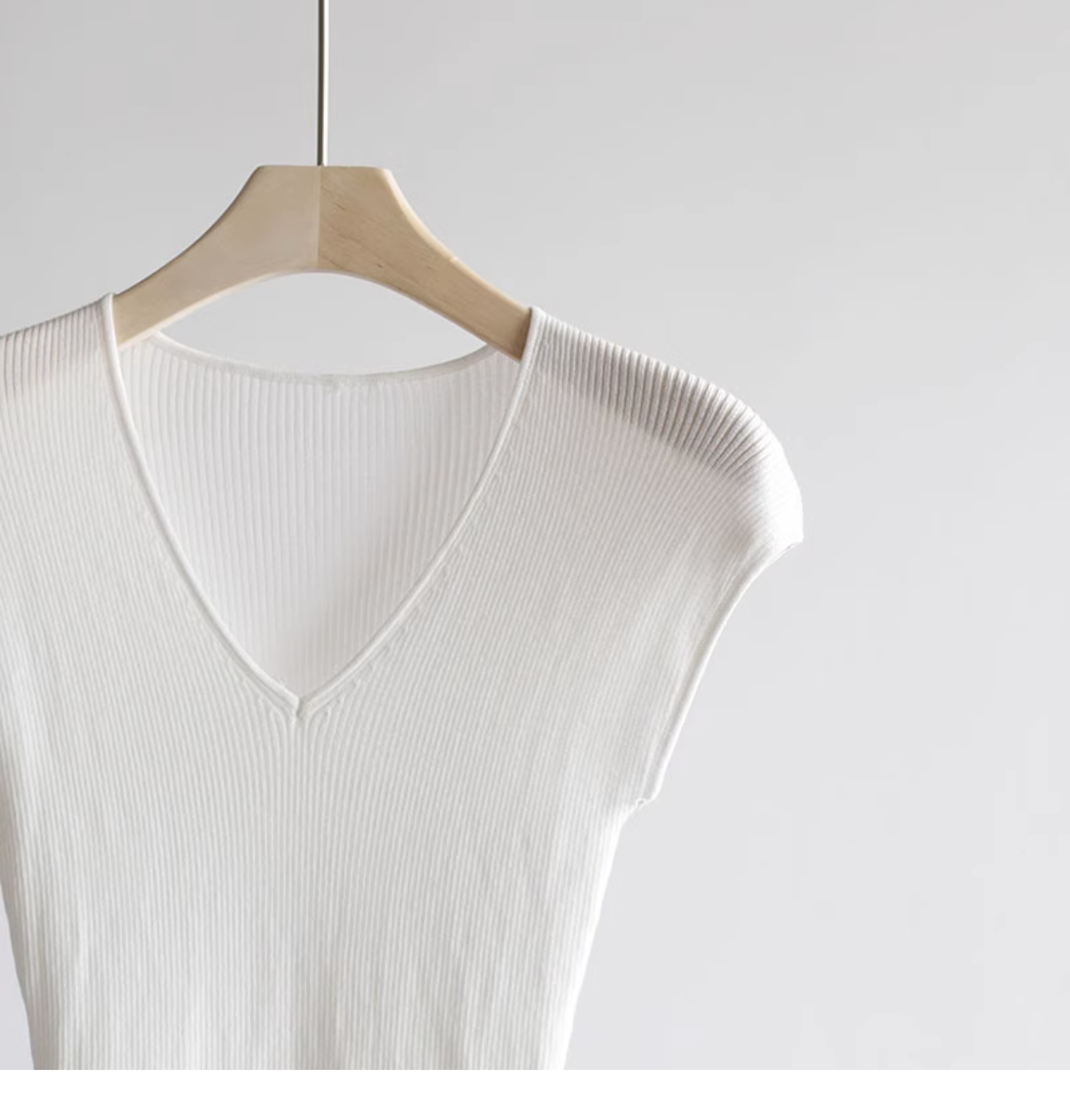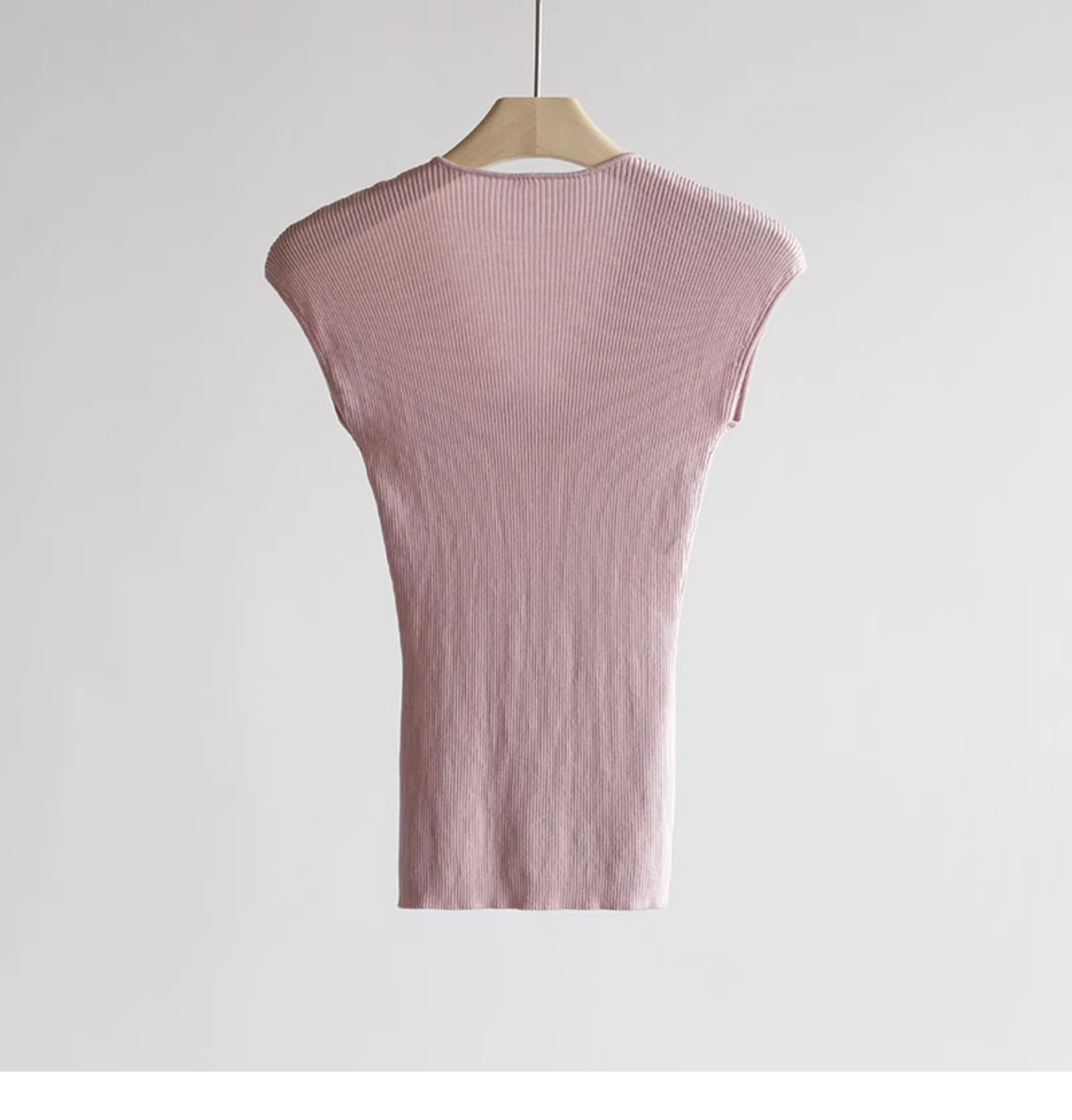 天絲萊賽爾V領針織衫女夏季新款修身顯瘦彈力打底衫薄款別致上衣